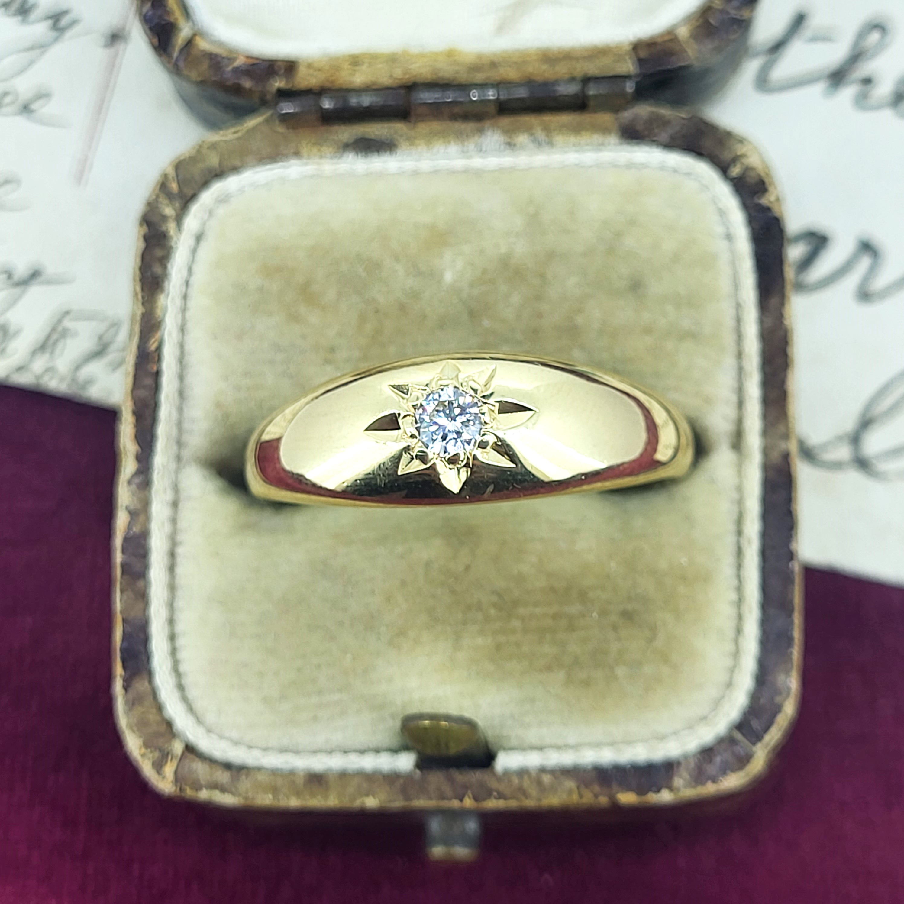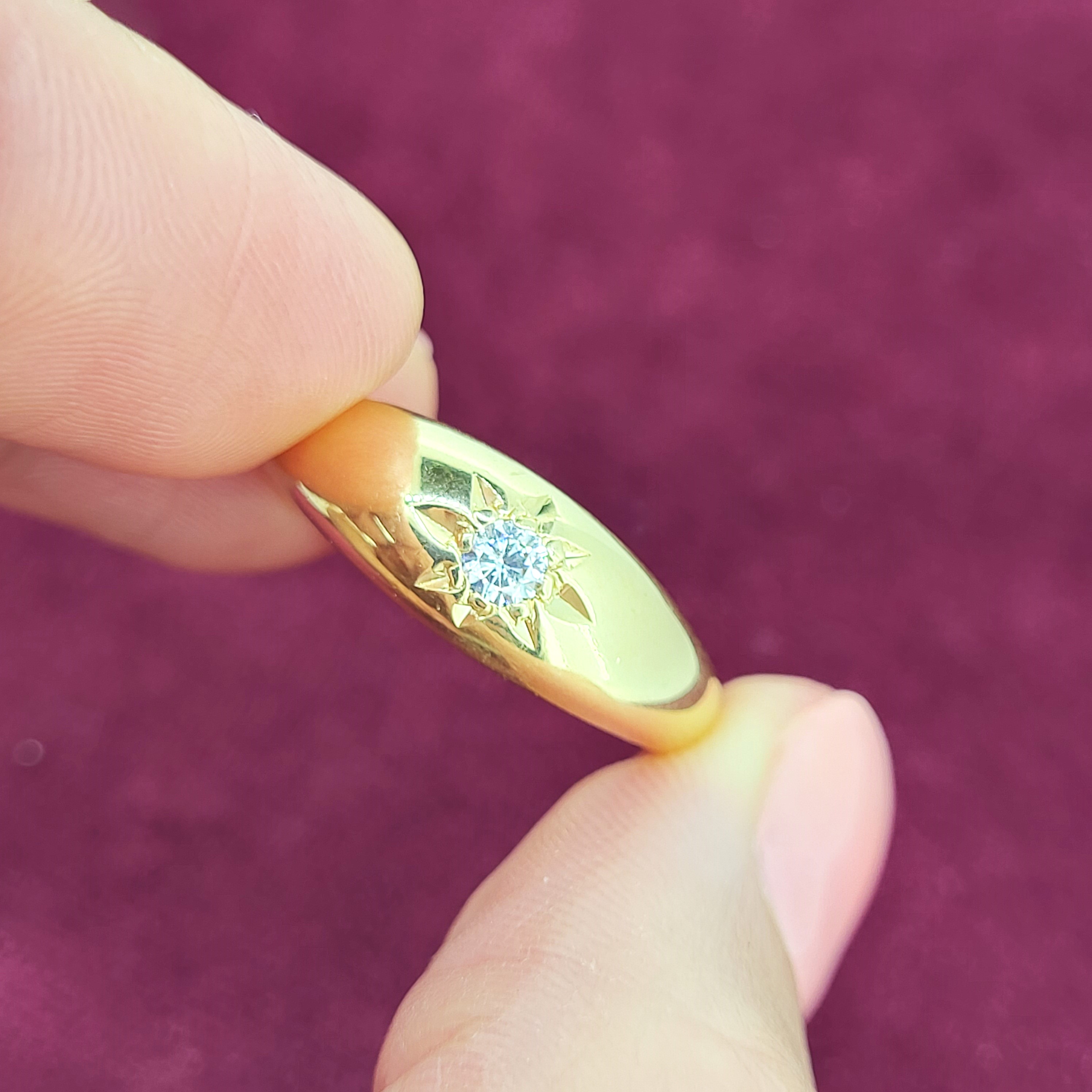 The ring is fully hallmarked and is star set with a round brilliant diamond weighing 0.20cts. The diamond is G/H Colour and SI Clarity.