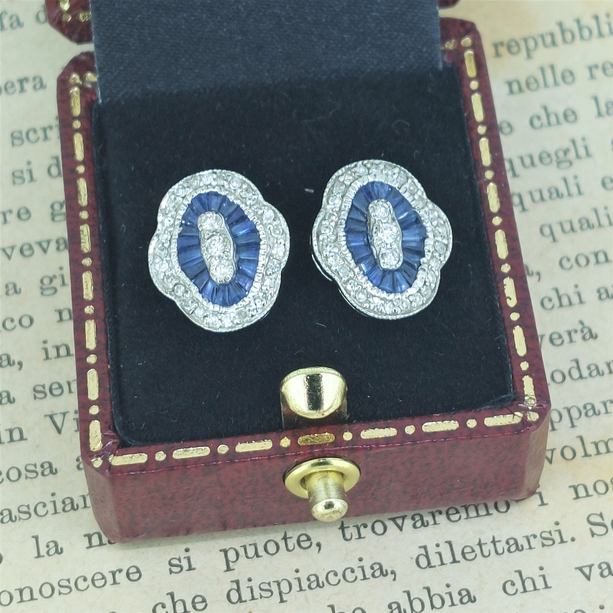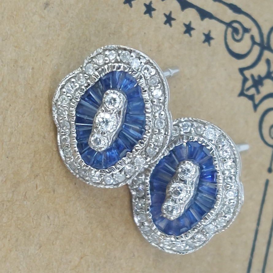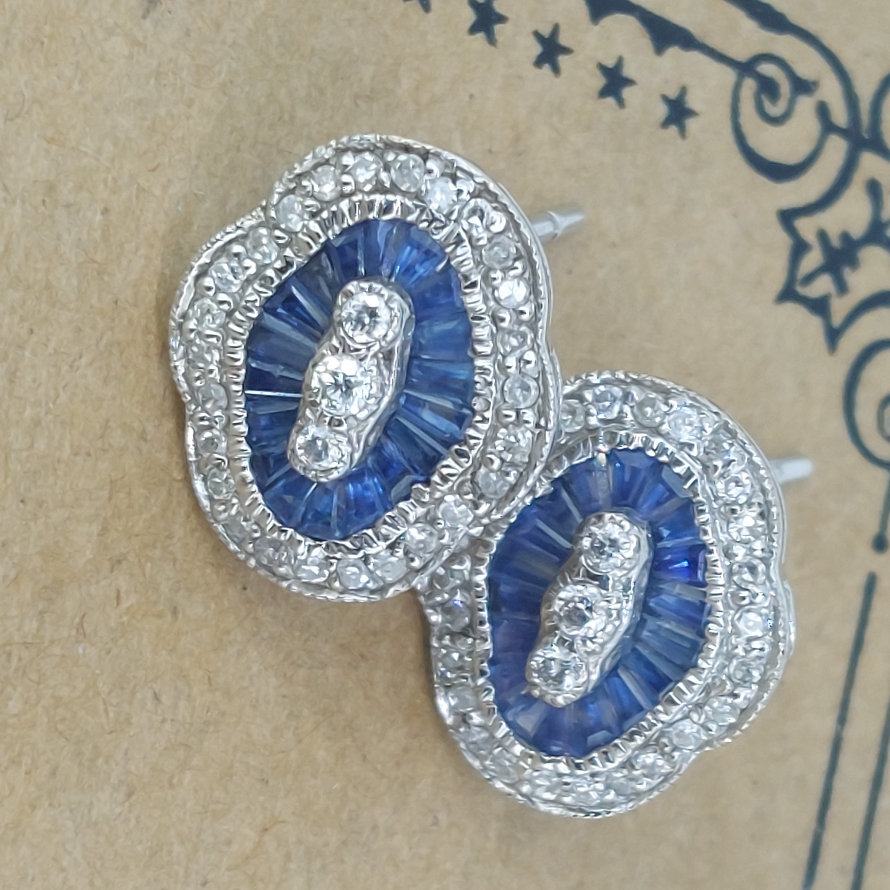 One of our favourite designs we simply j'adore these reproduction earrings. With 0.30ct of round brilliant cut diamonds and over 1ct of sapphires these 18ct white gold earrings are just lovely!