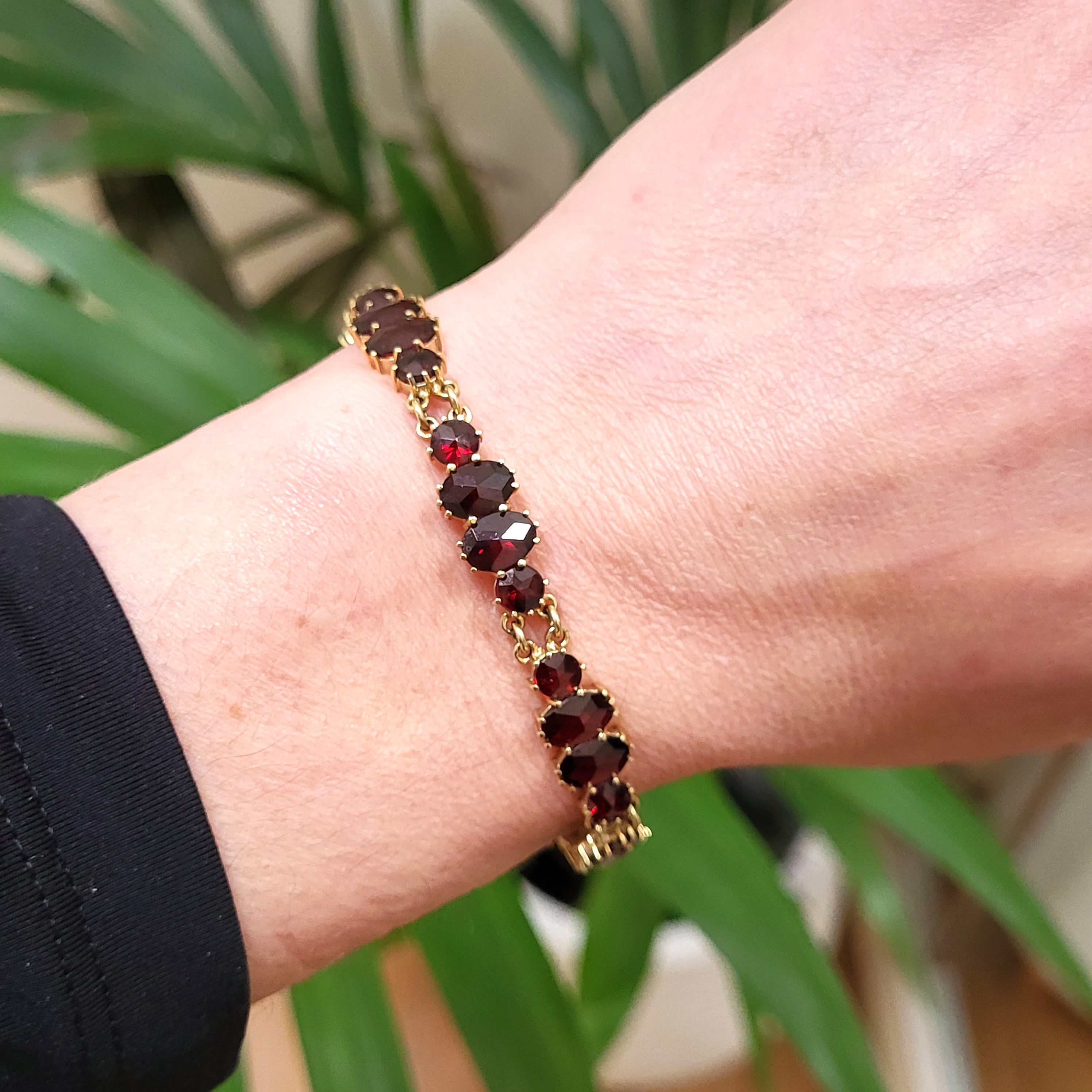 A gorgeous Garnet Bracelet crafted from 9ct Yellow Gold.