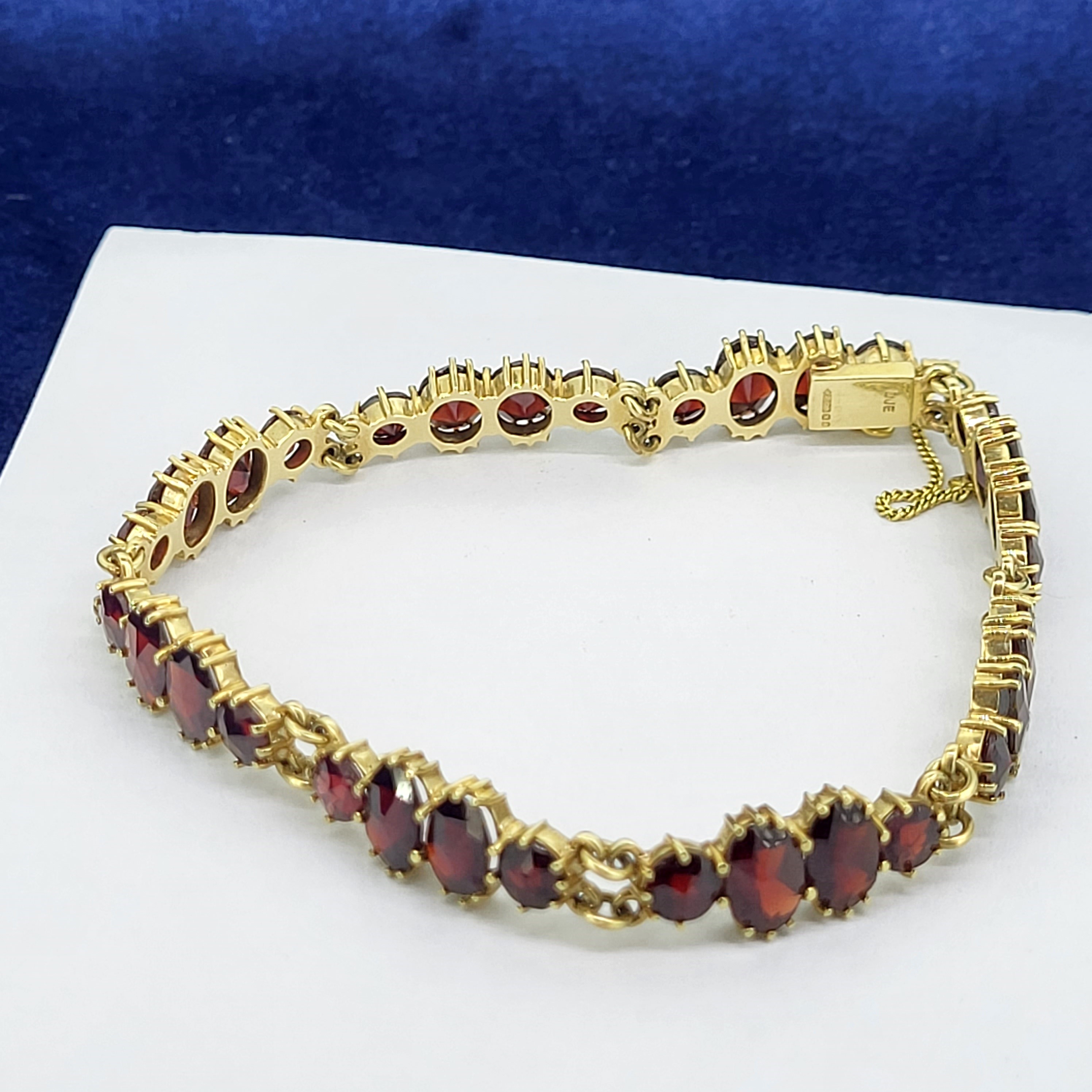 This bracelet is set with Oval Garnets measuring 7mm by 5mm with Round Garnets set in-between. The Garnets are rich in colour and the bracelet looks really lovely on the wrist.