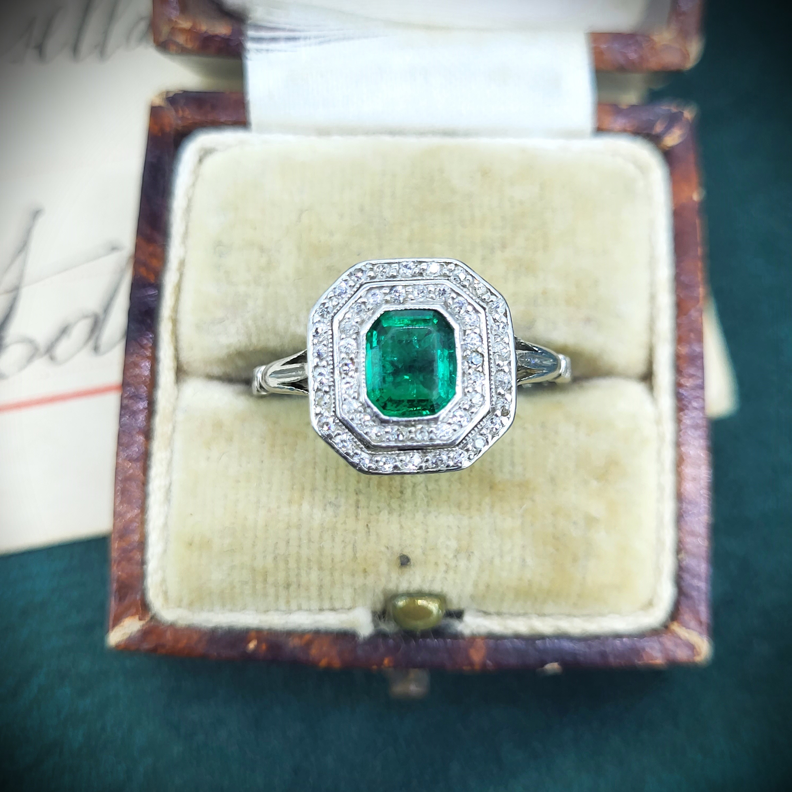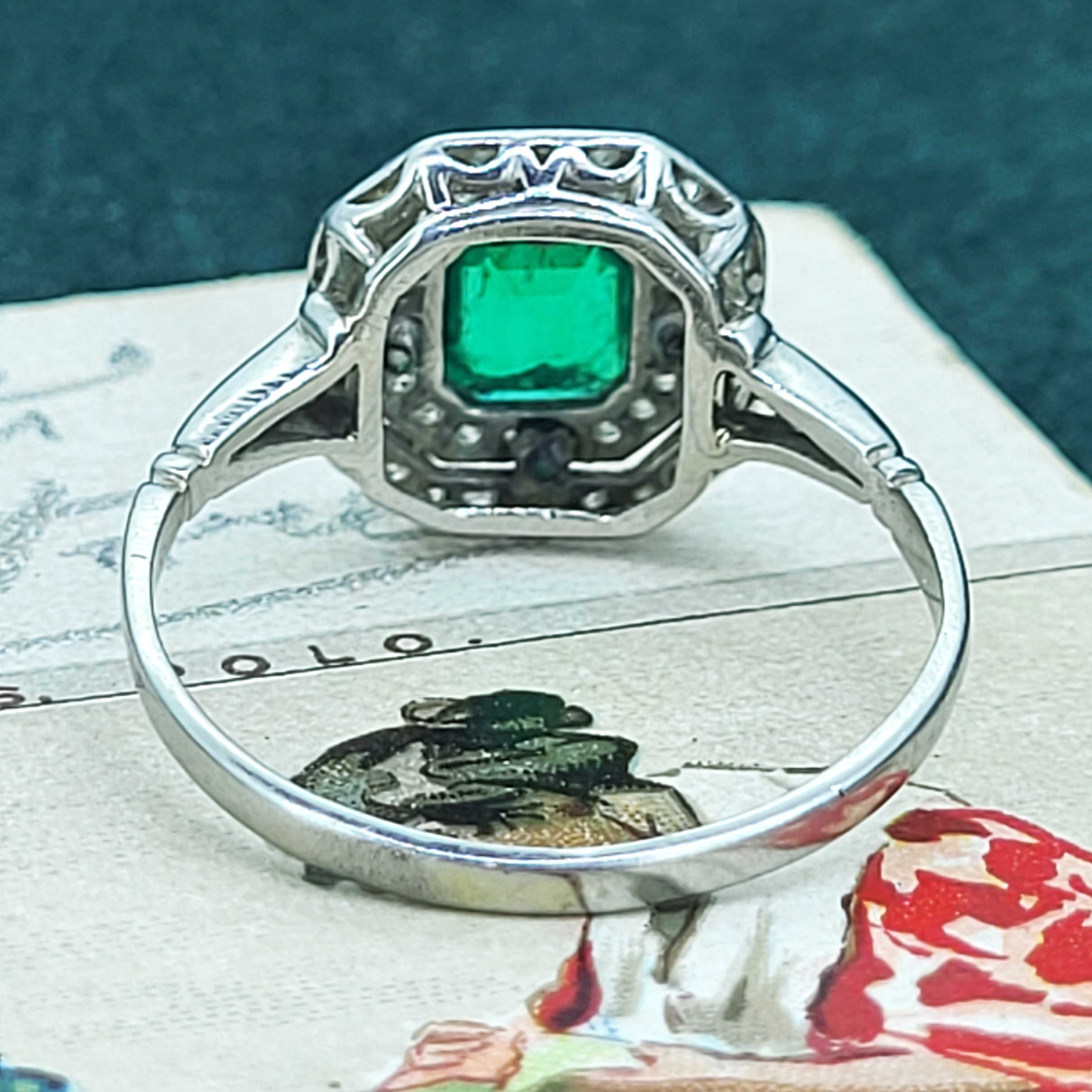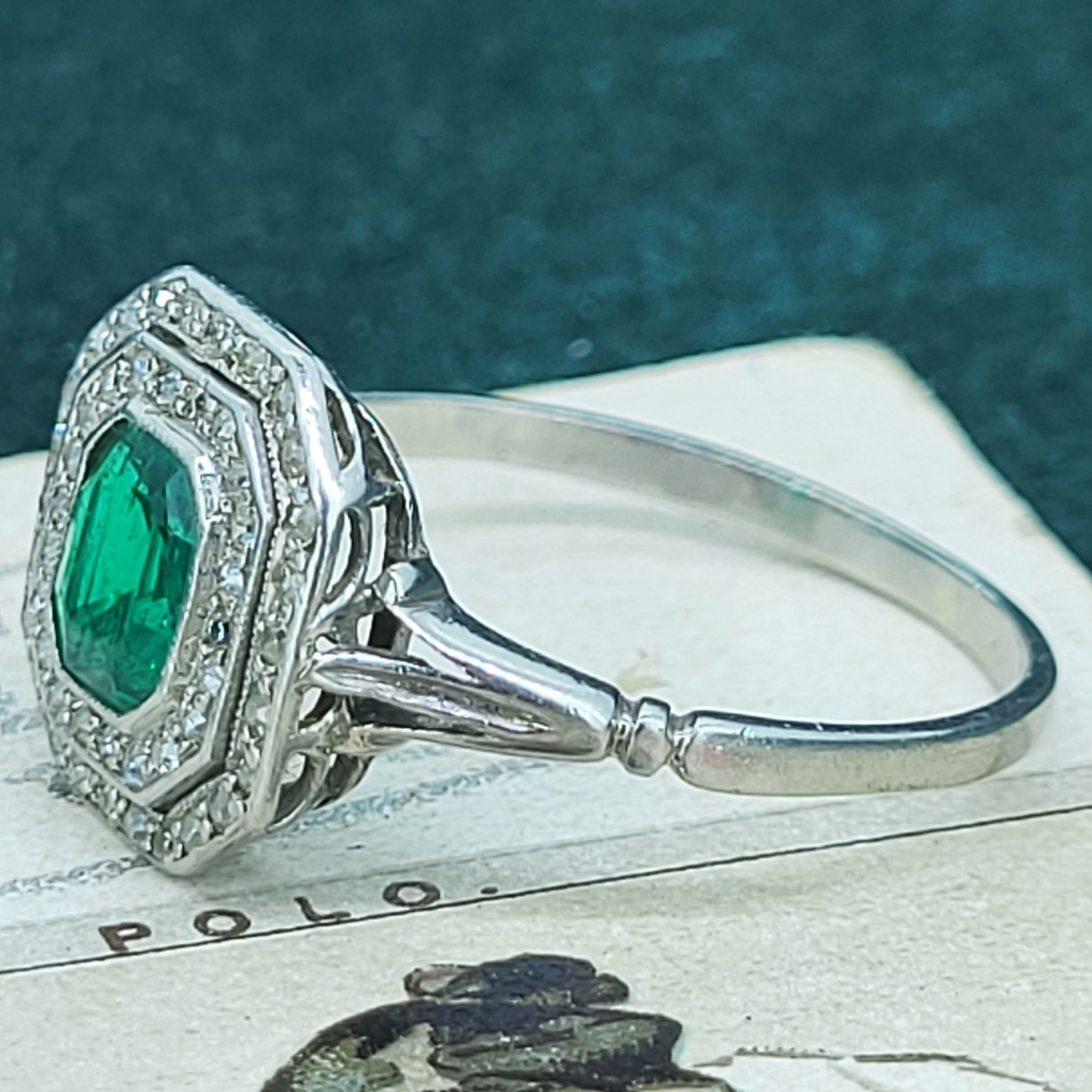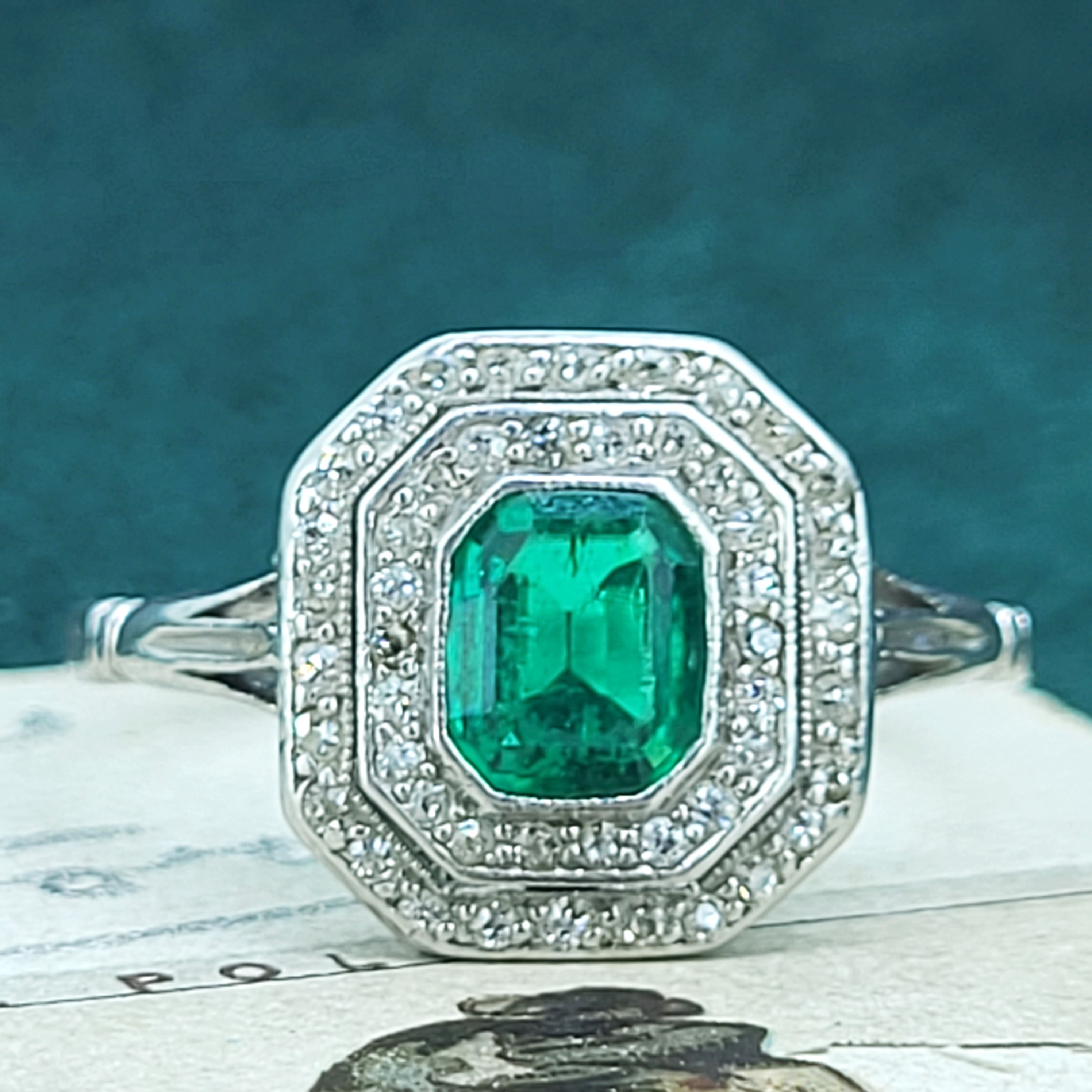 An absolutely stunning Emerald and Diamond Original Art Deco Ring crafted from Platinum.