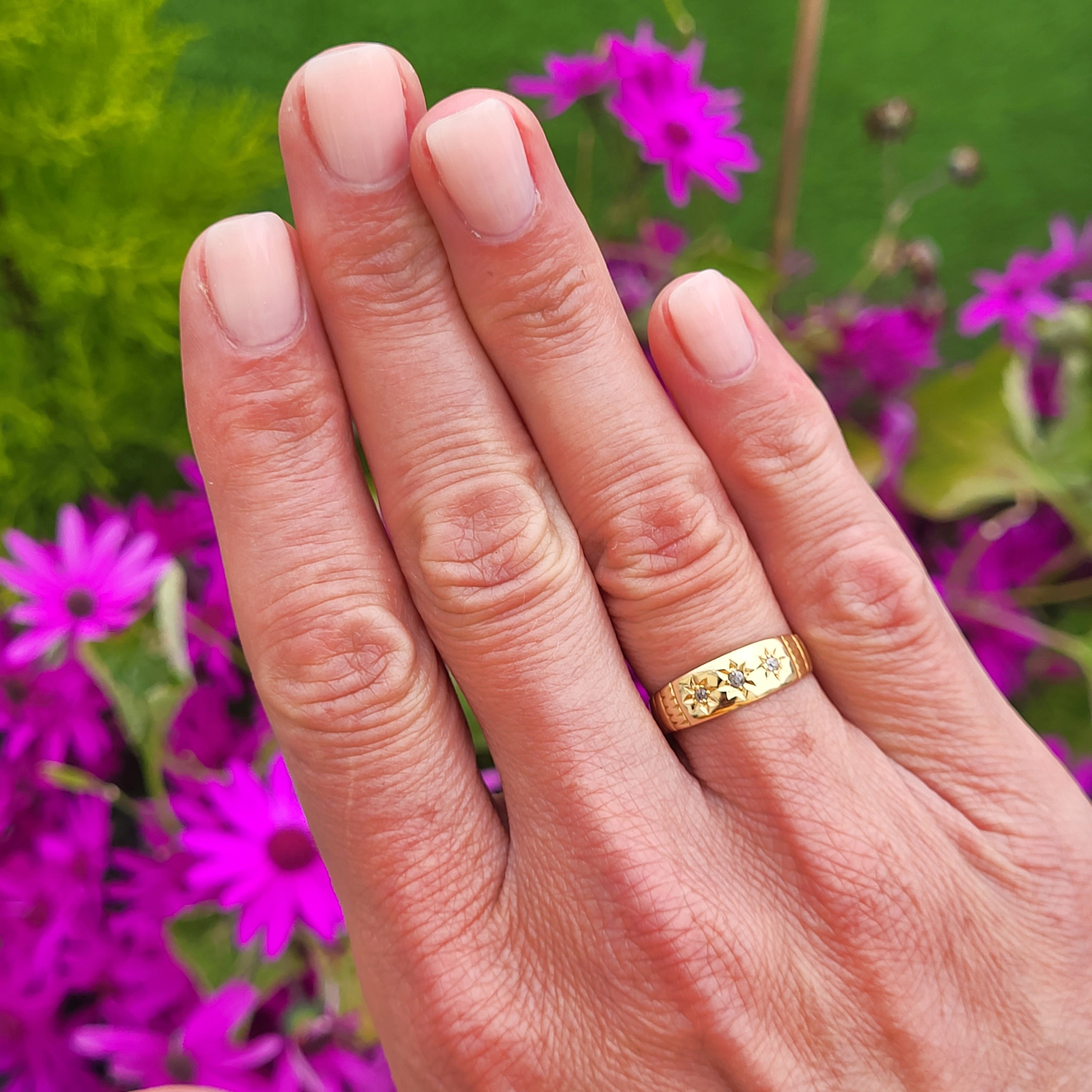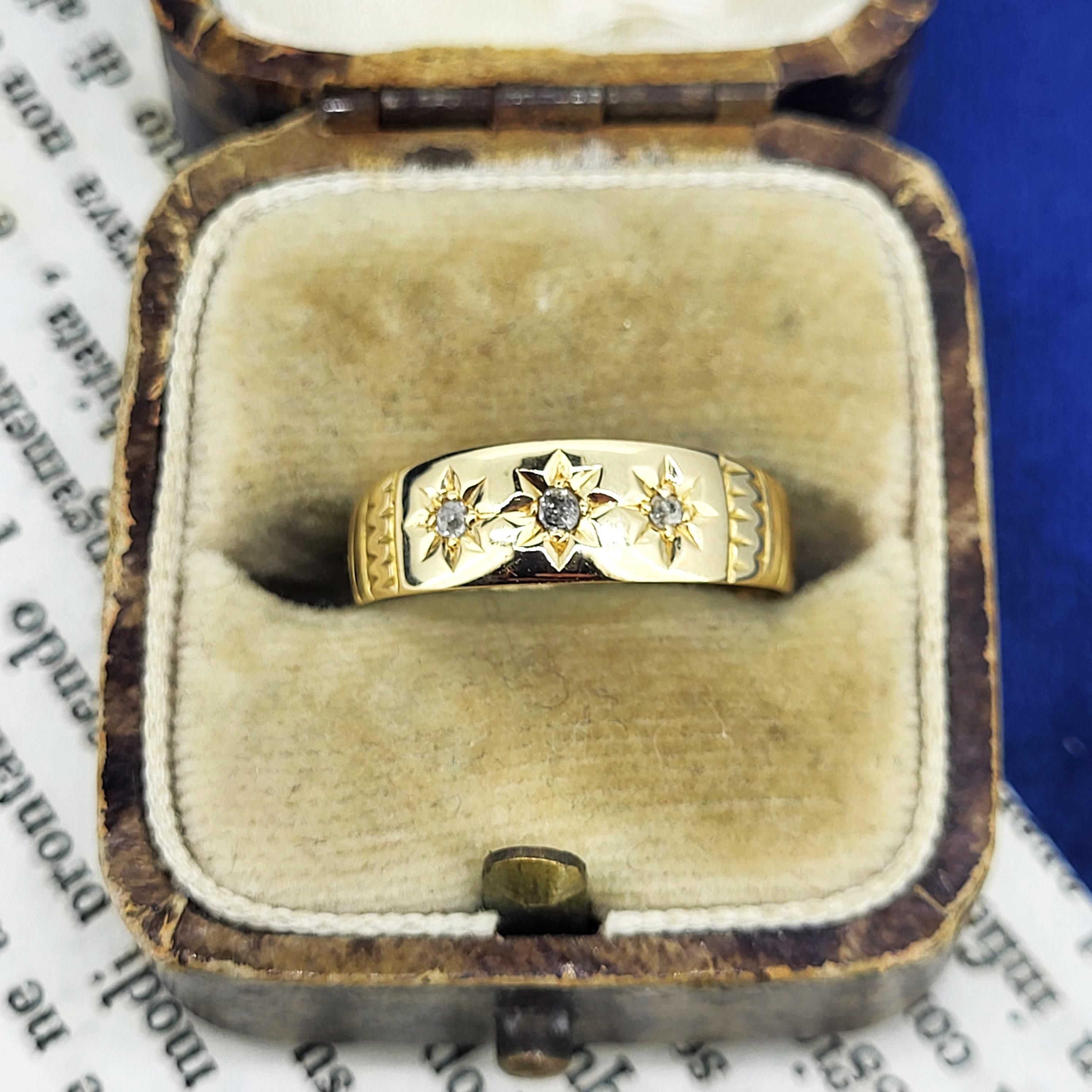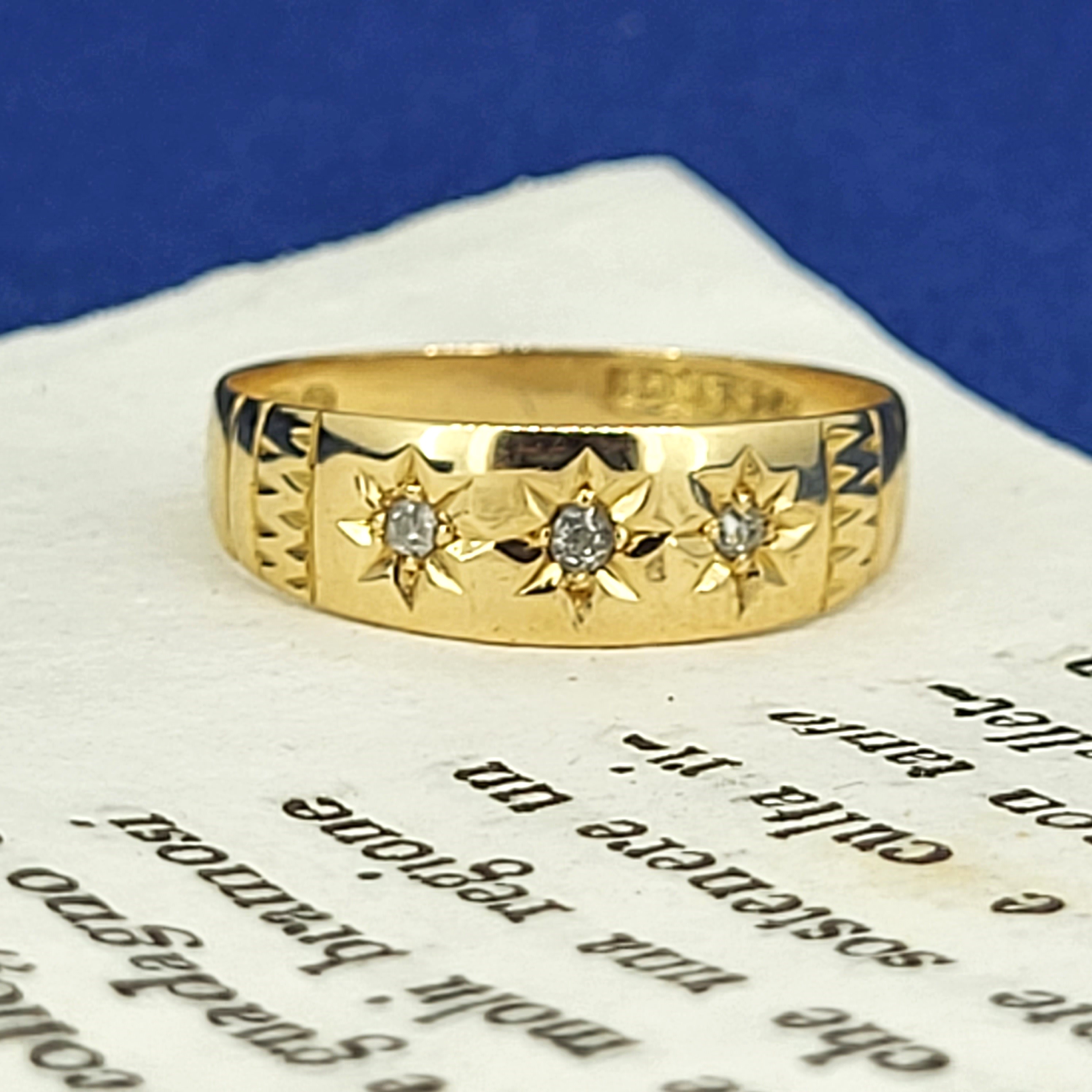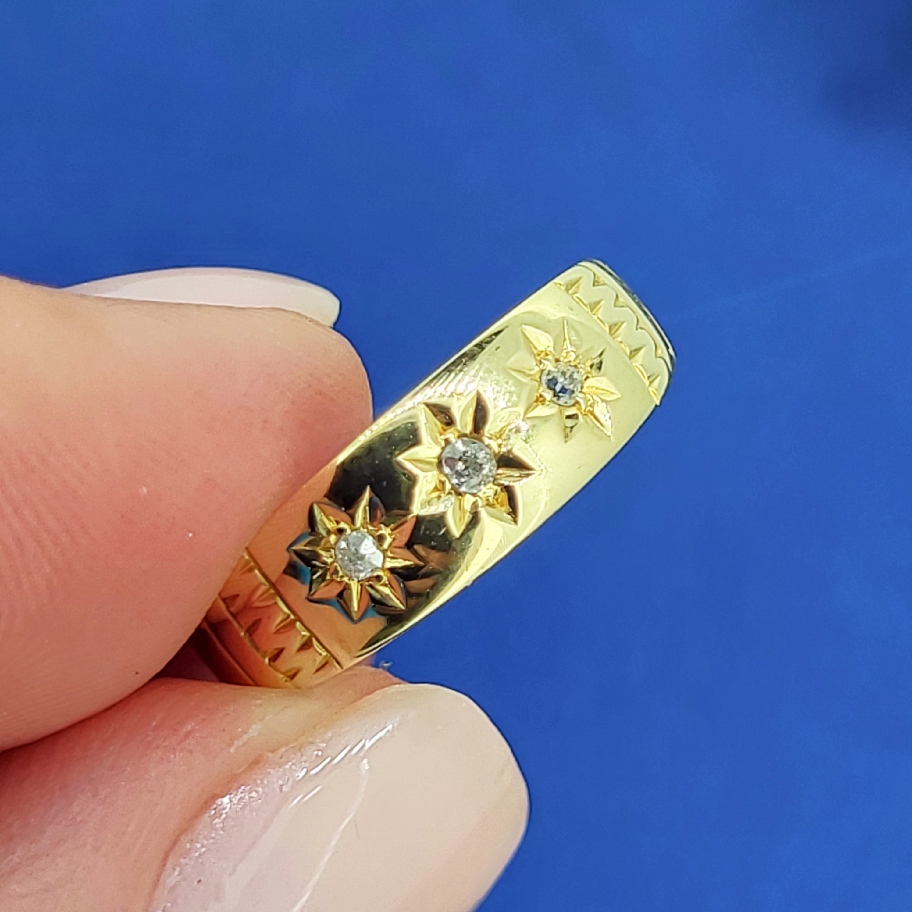 A delightful Antique Star Set Diamond Ring crafted from 18ct Yellow Gold.
