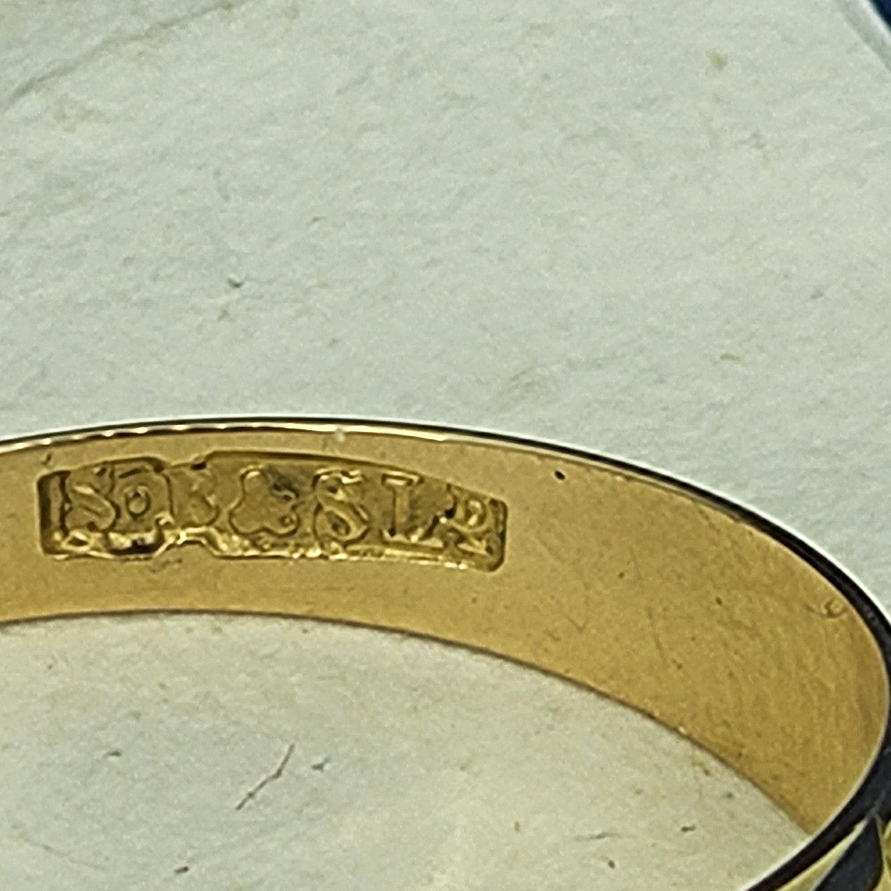 This ring was hallmarked in Birmingham during 1899 by S.B & S Ltd for S Blanckensee & Son Ltd of Frederick Street & Great Hampton Street, Birmingham.