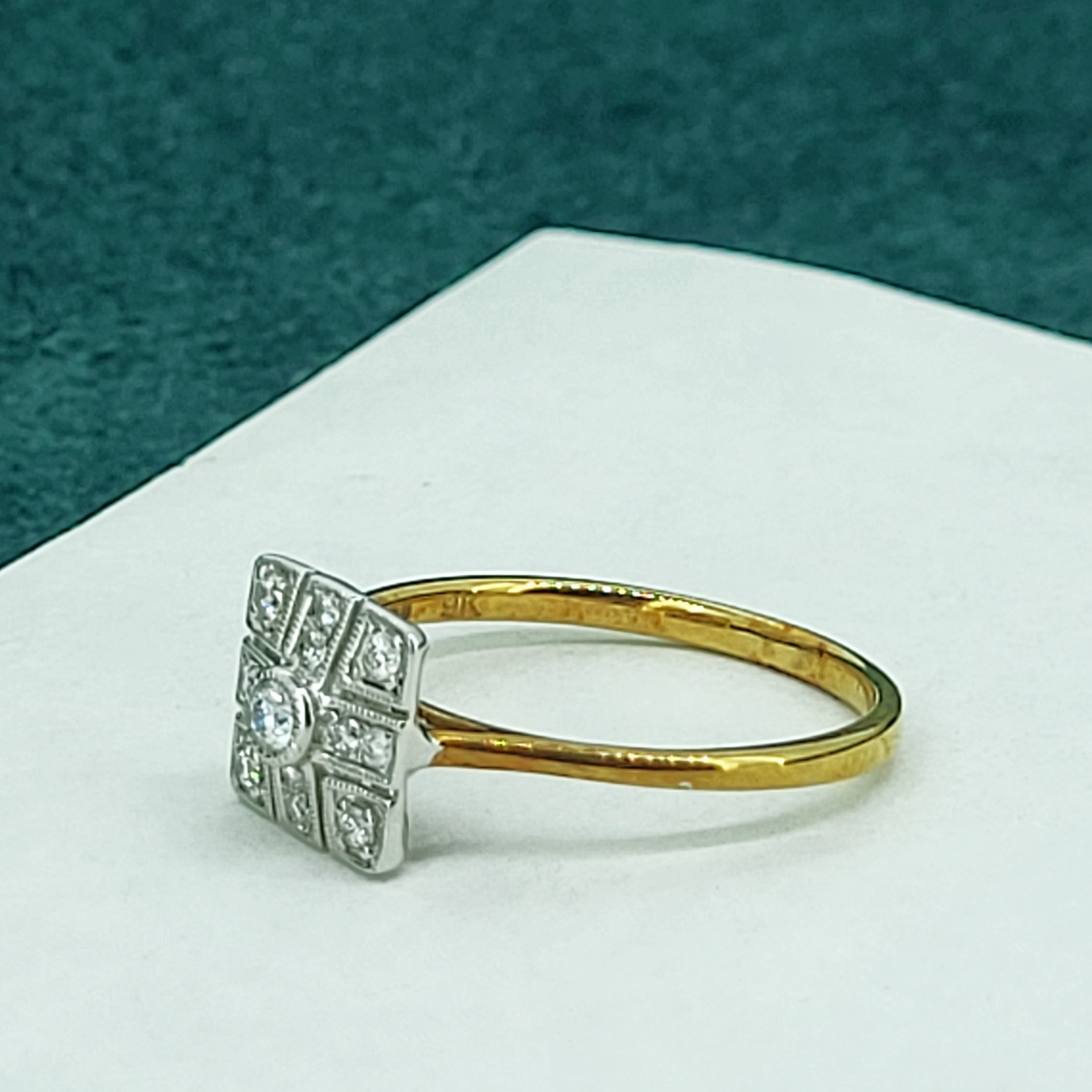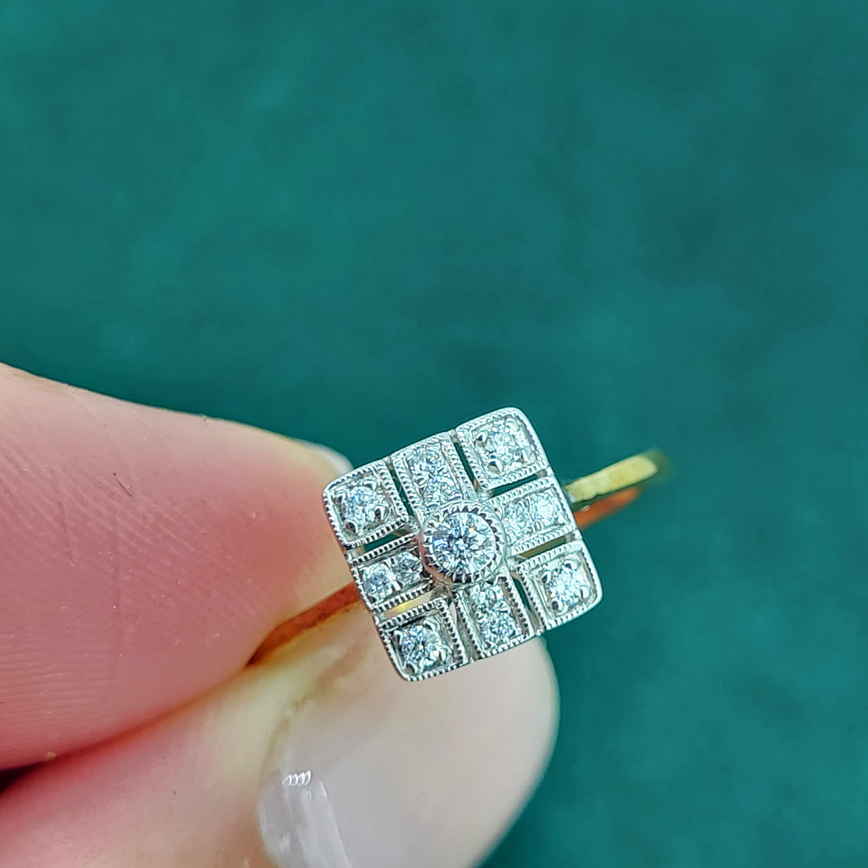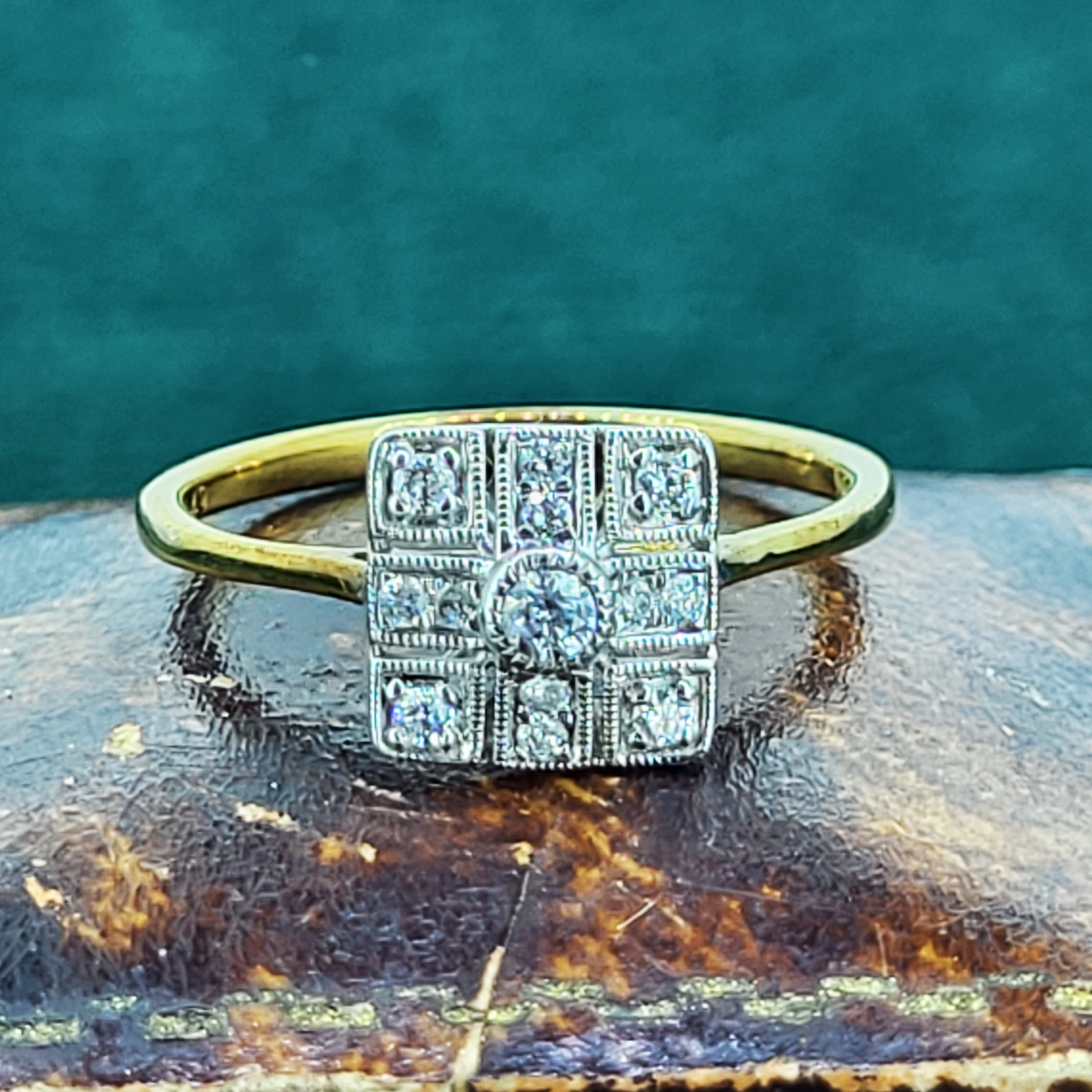 A beautiful Art Deco Style Diamond Ring. The ring features a cluster of Diamonds set in a Vintage setting weighing 0.15cts.