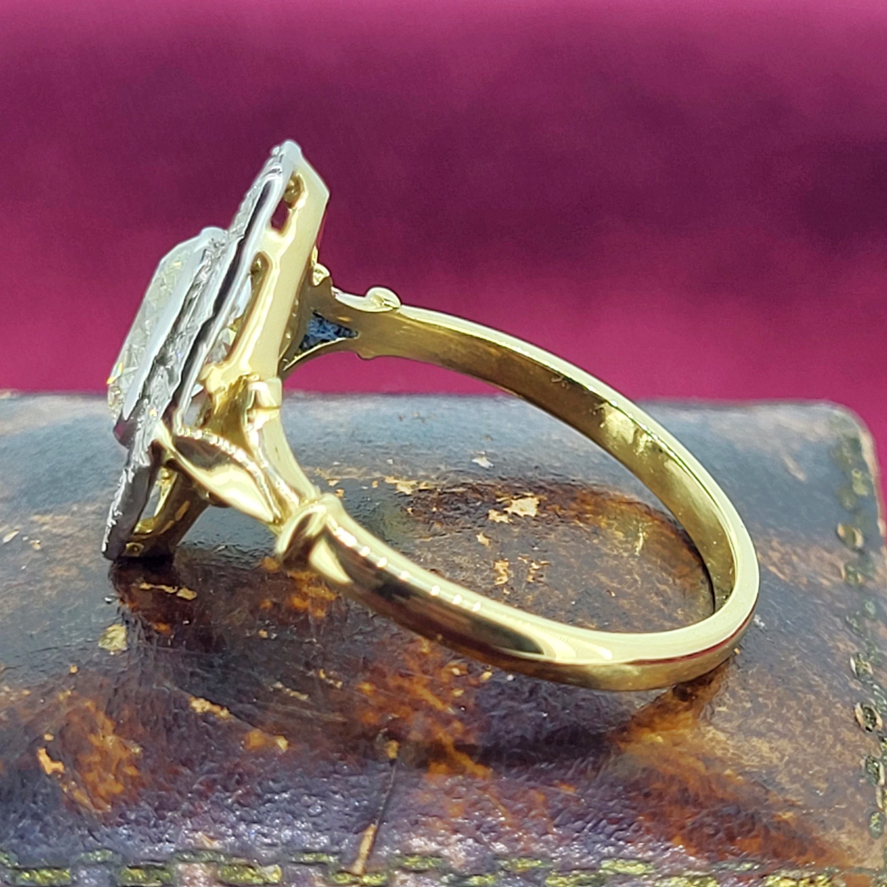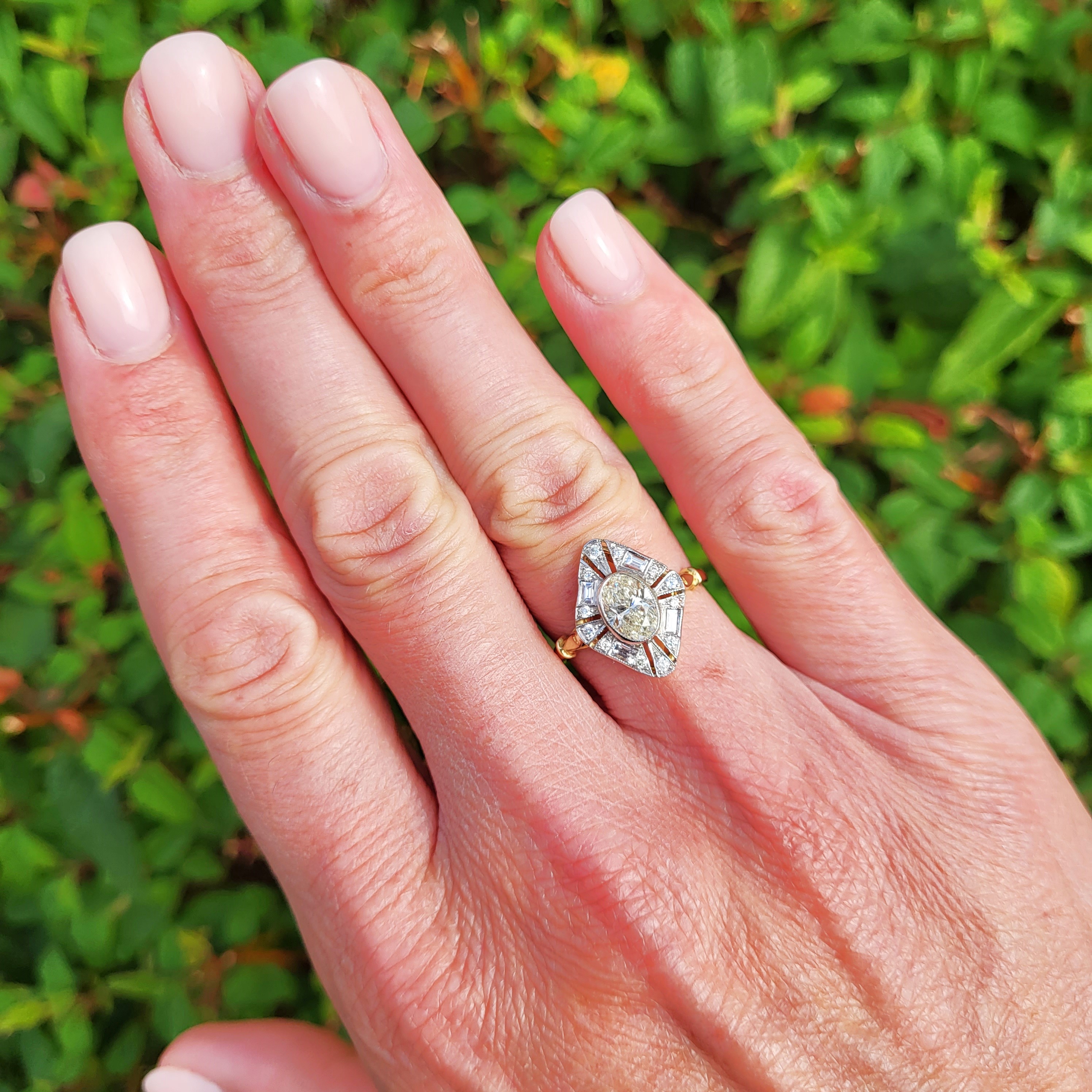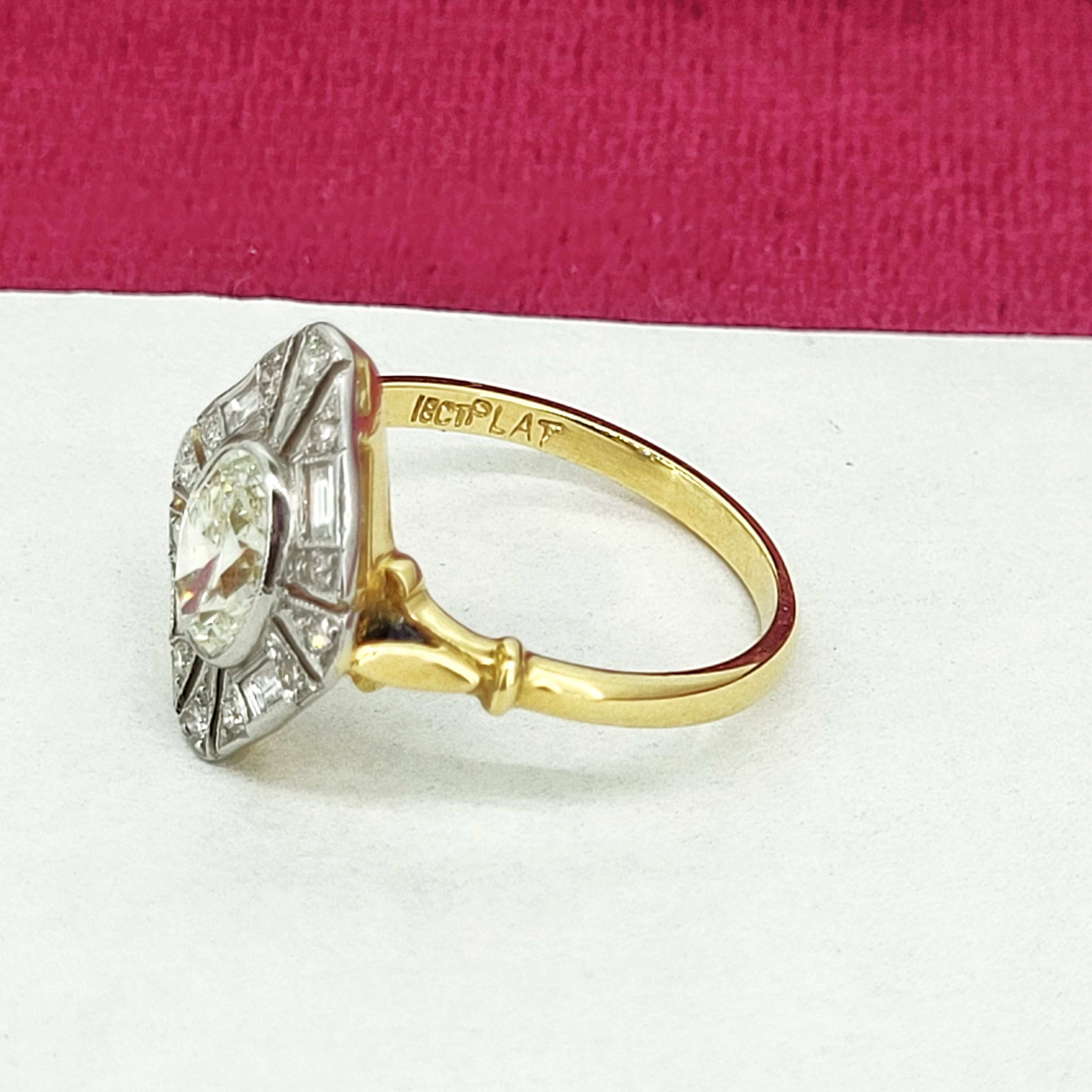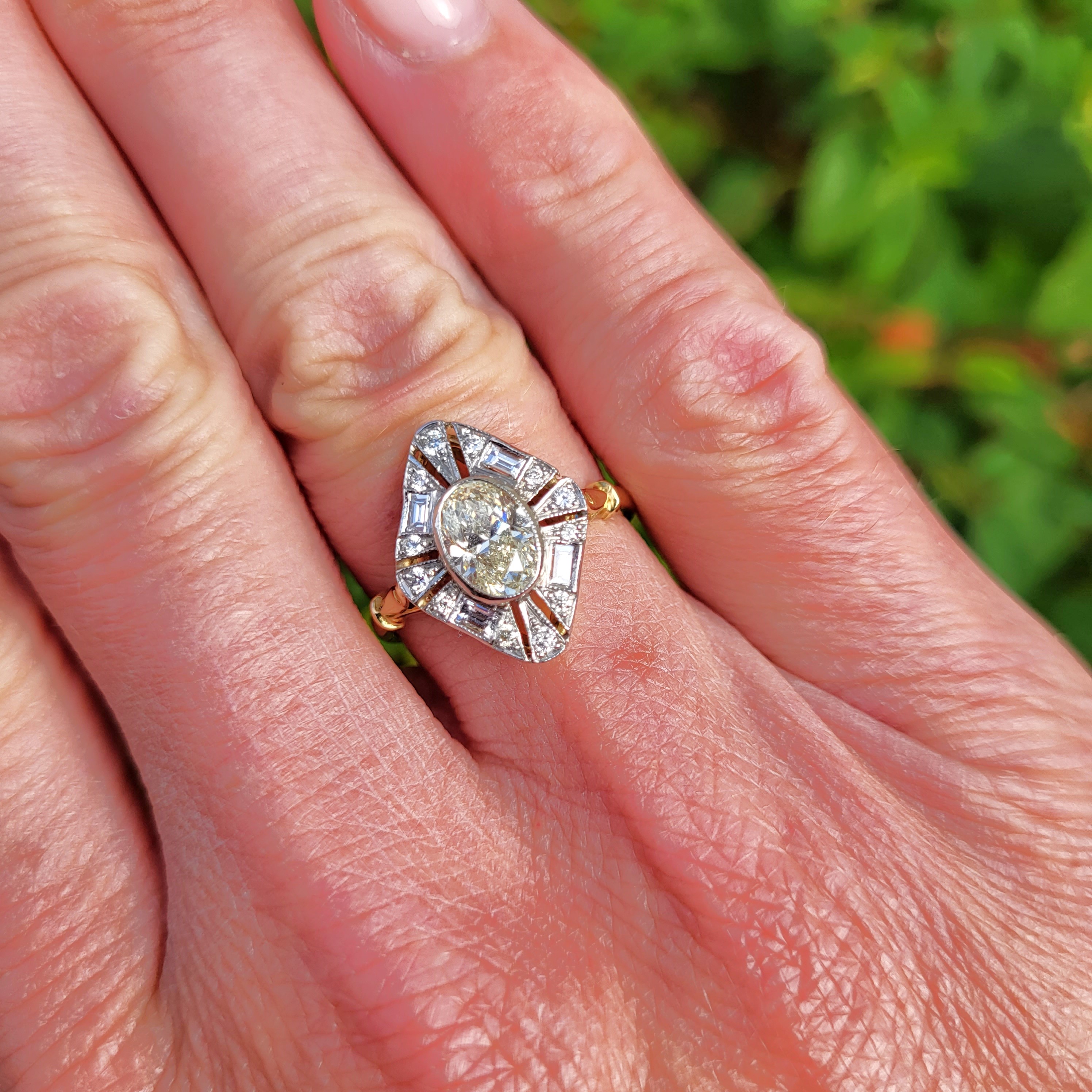 A gorgeous Art Deco Oval Cut Diamond Ring crafted from 18ct Yellow Gold and Platinum.
