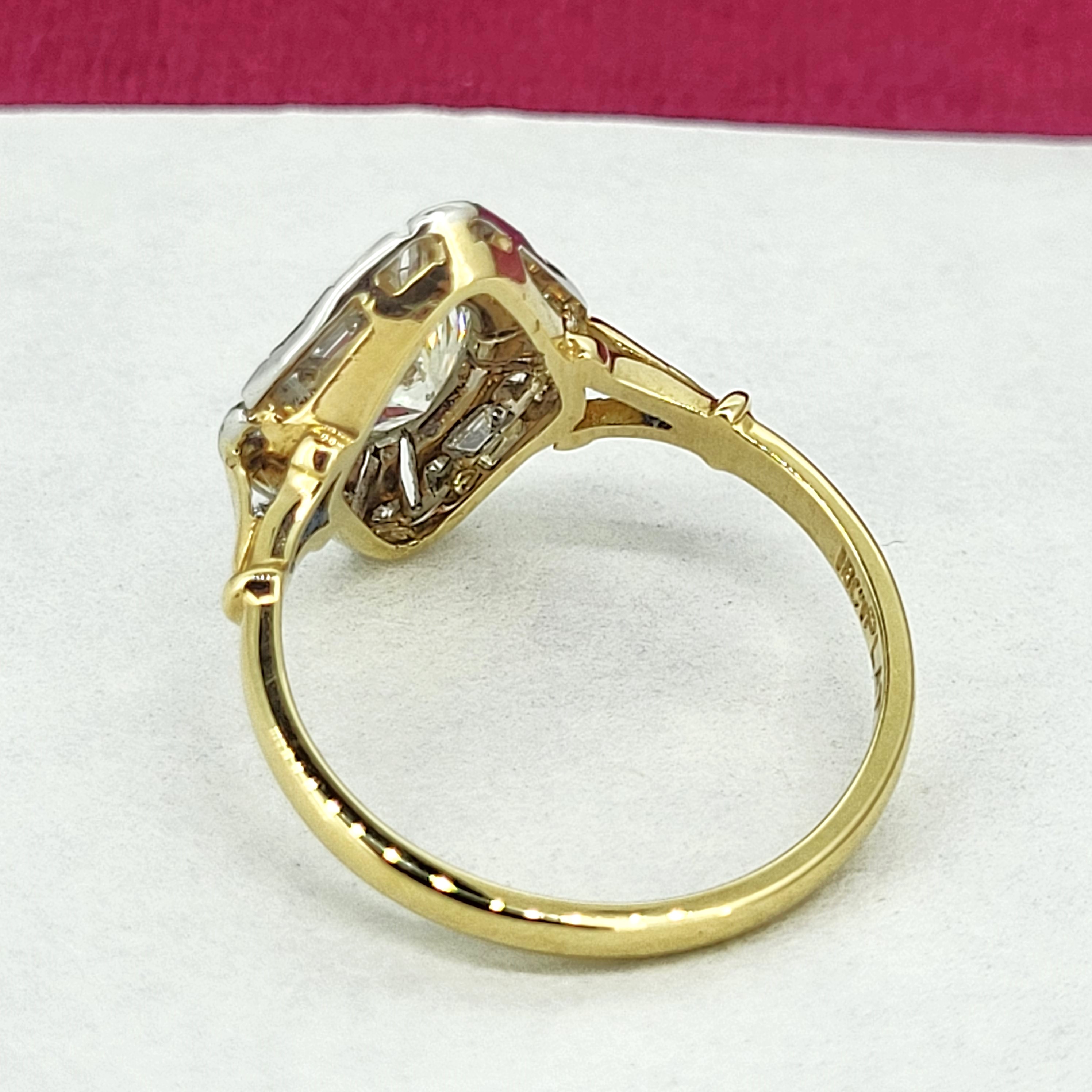 It really is a beautiful ring with a beautiful combination of baguette and round brilliant cut diamonds surrounding the central stone. It is mightily impressive on the hand and creates a really unique and elegant look. A fabulous and impressive piece.