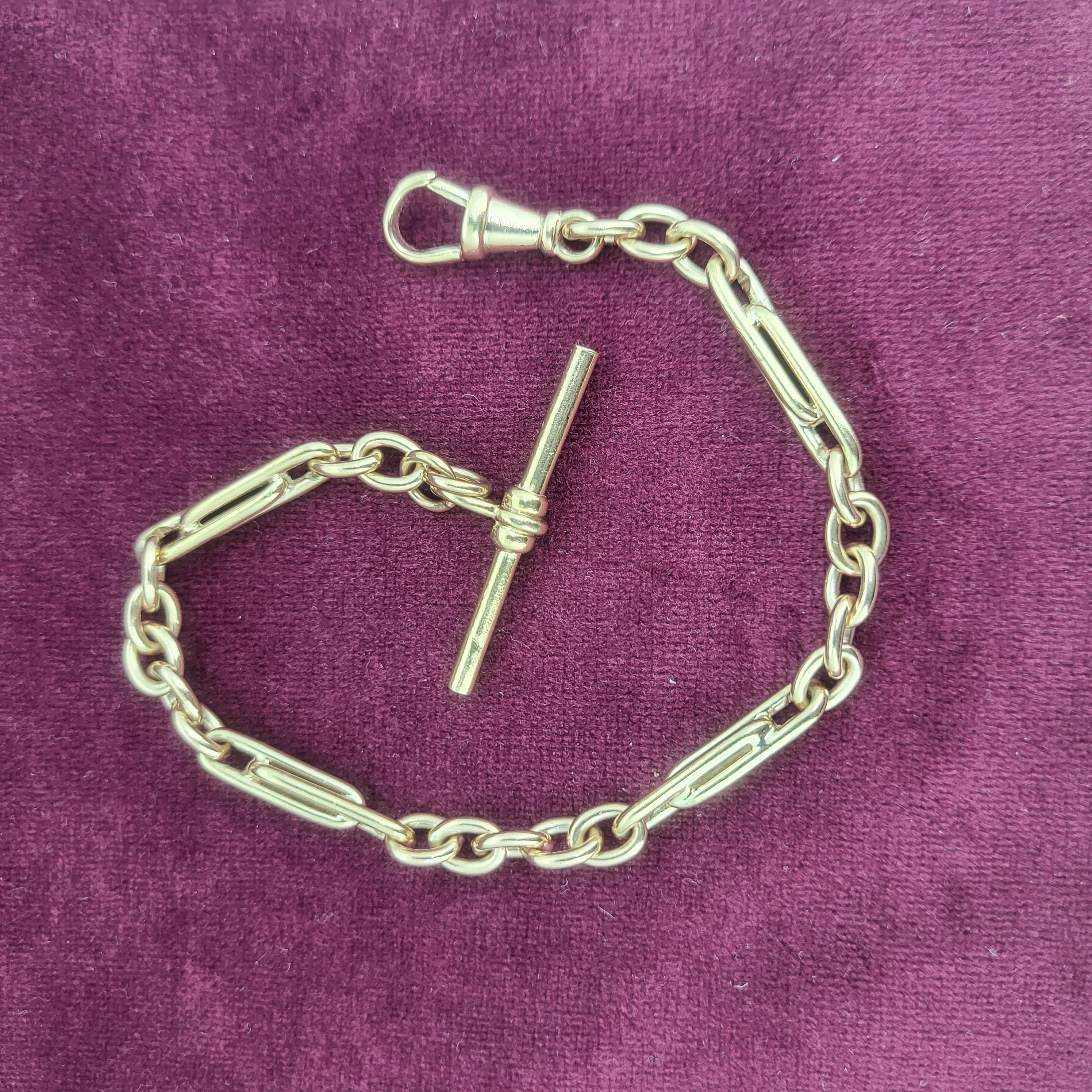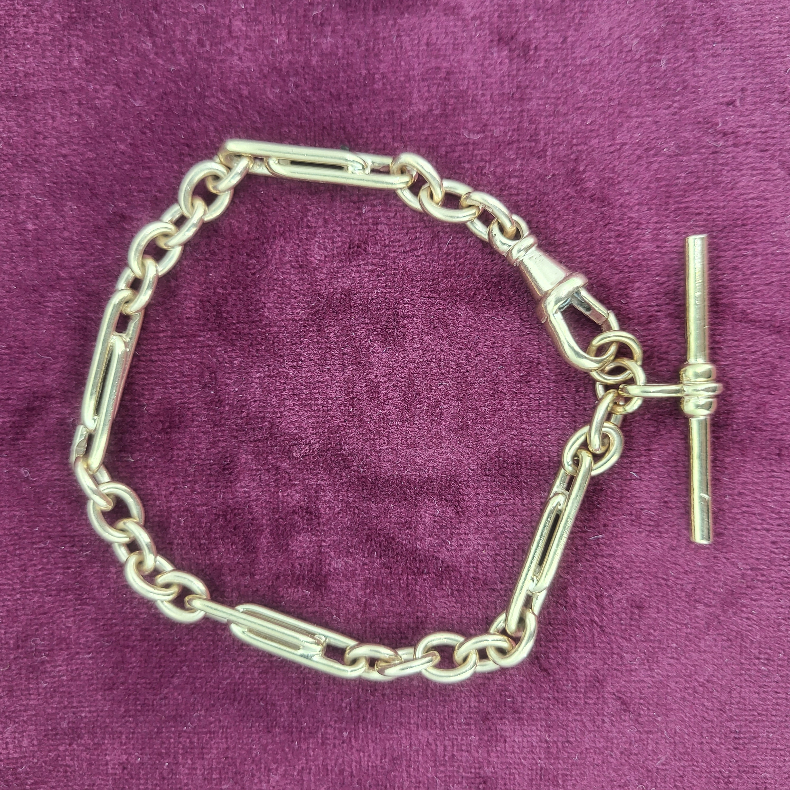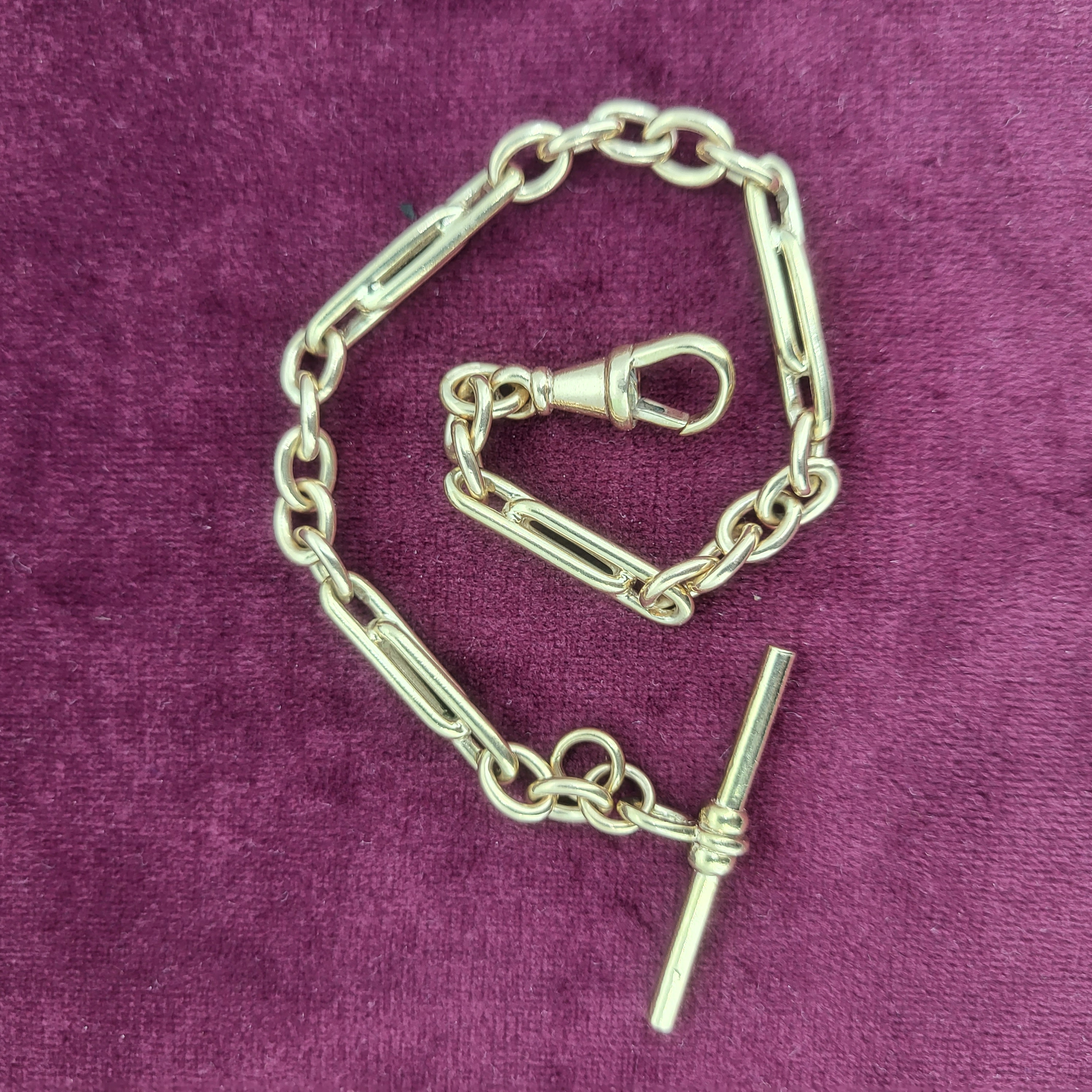 Absolutely delightful Albert bracelet in 9ct rose gold with trombone links and T-bar.