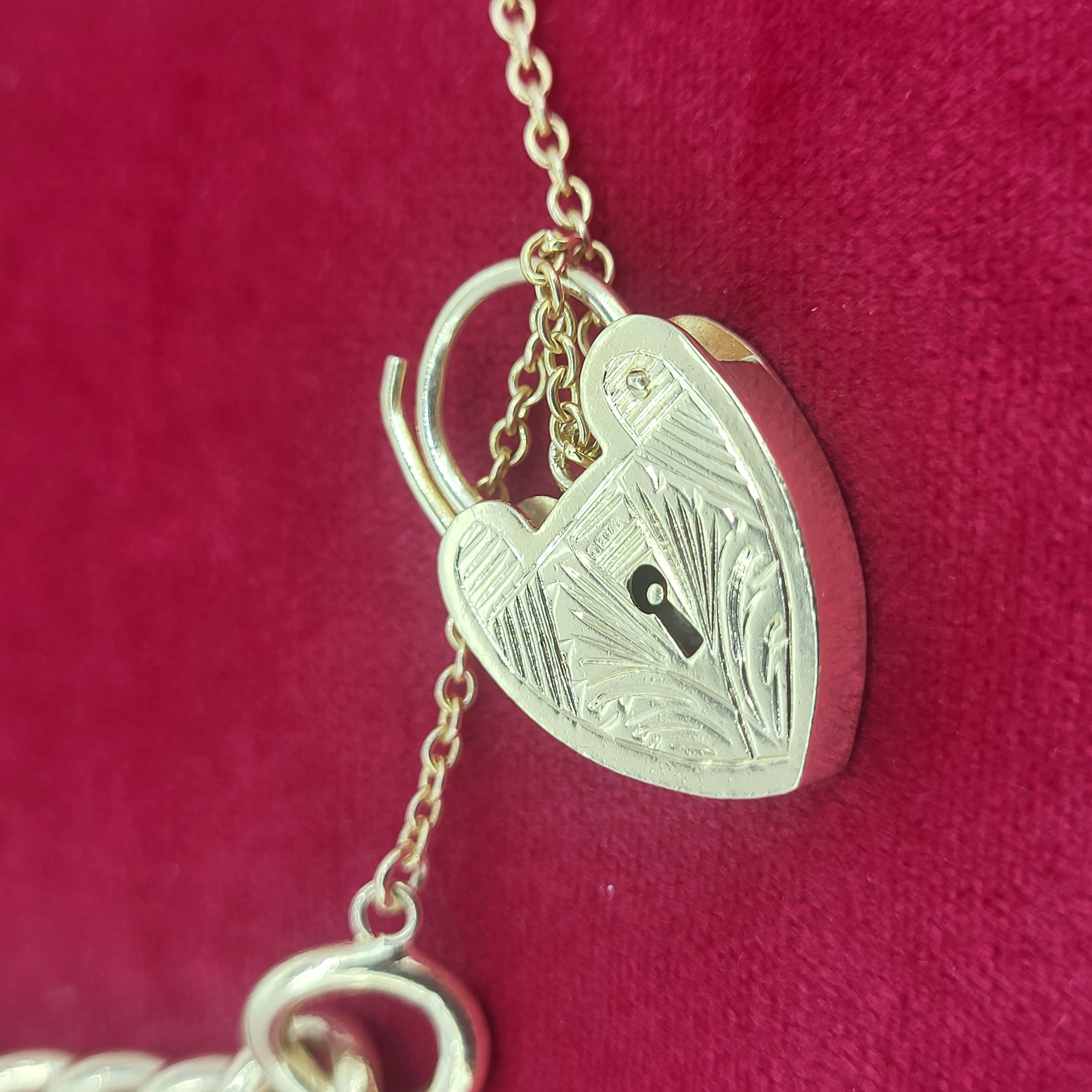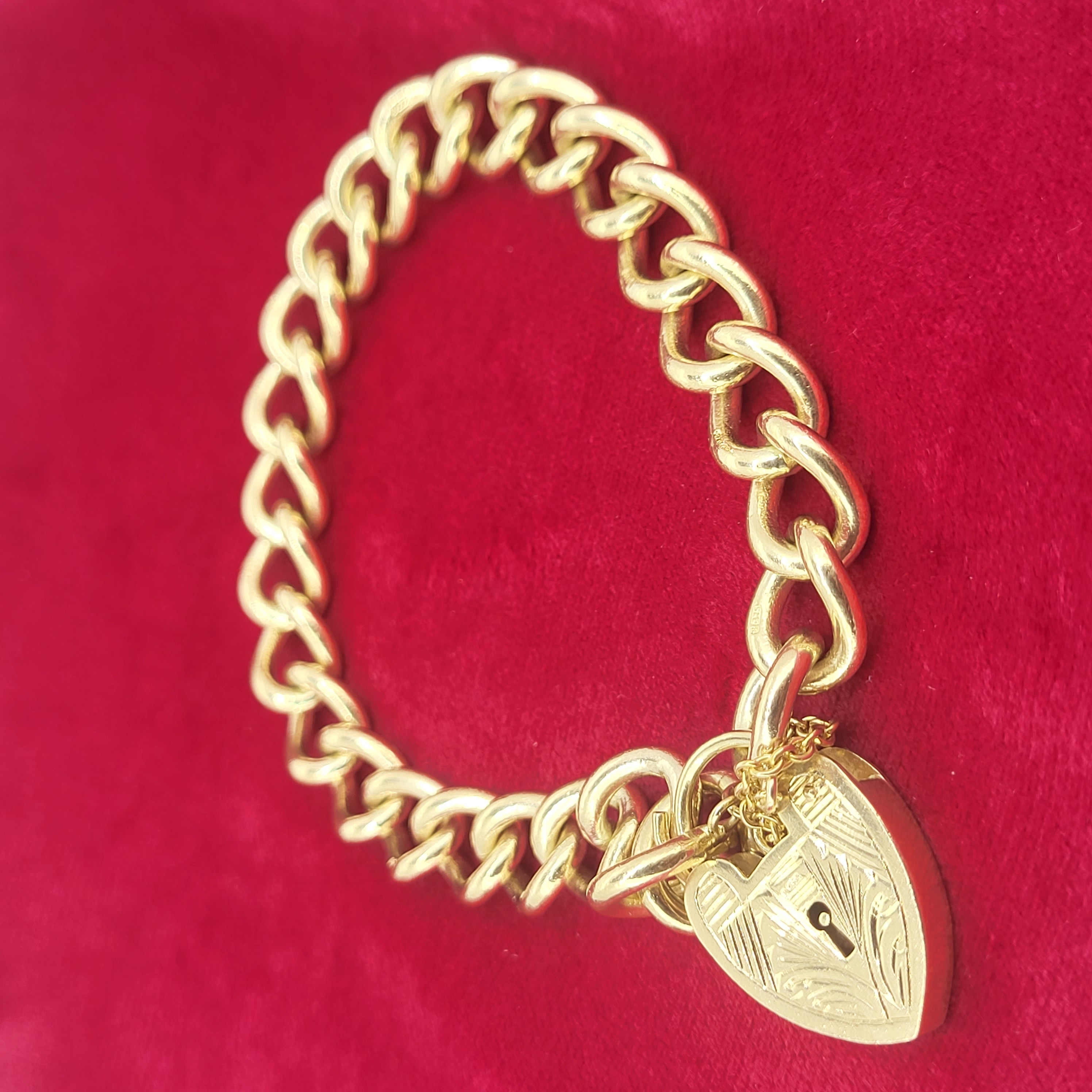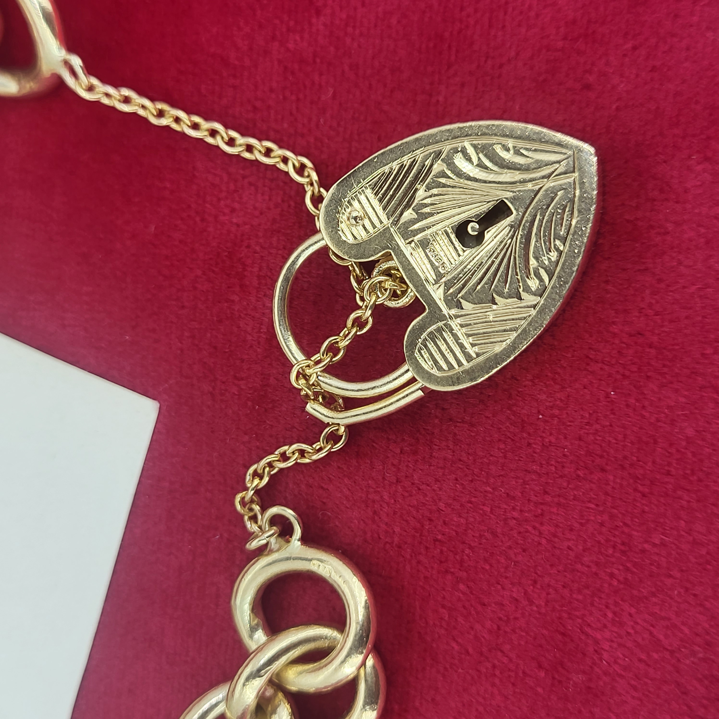 Presenting this adorable solid 9ct gold charm bracelet with decorative heart-shaped padlock. Aesthetically this bracelet is worthy of your attention but when you consider it's age it is even more impressive and commanding!