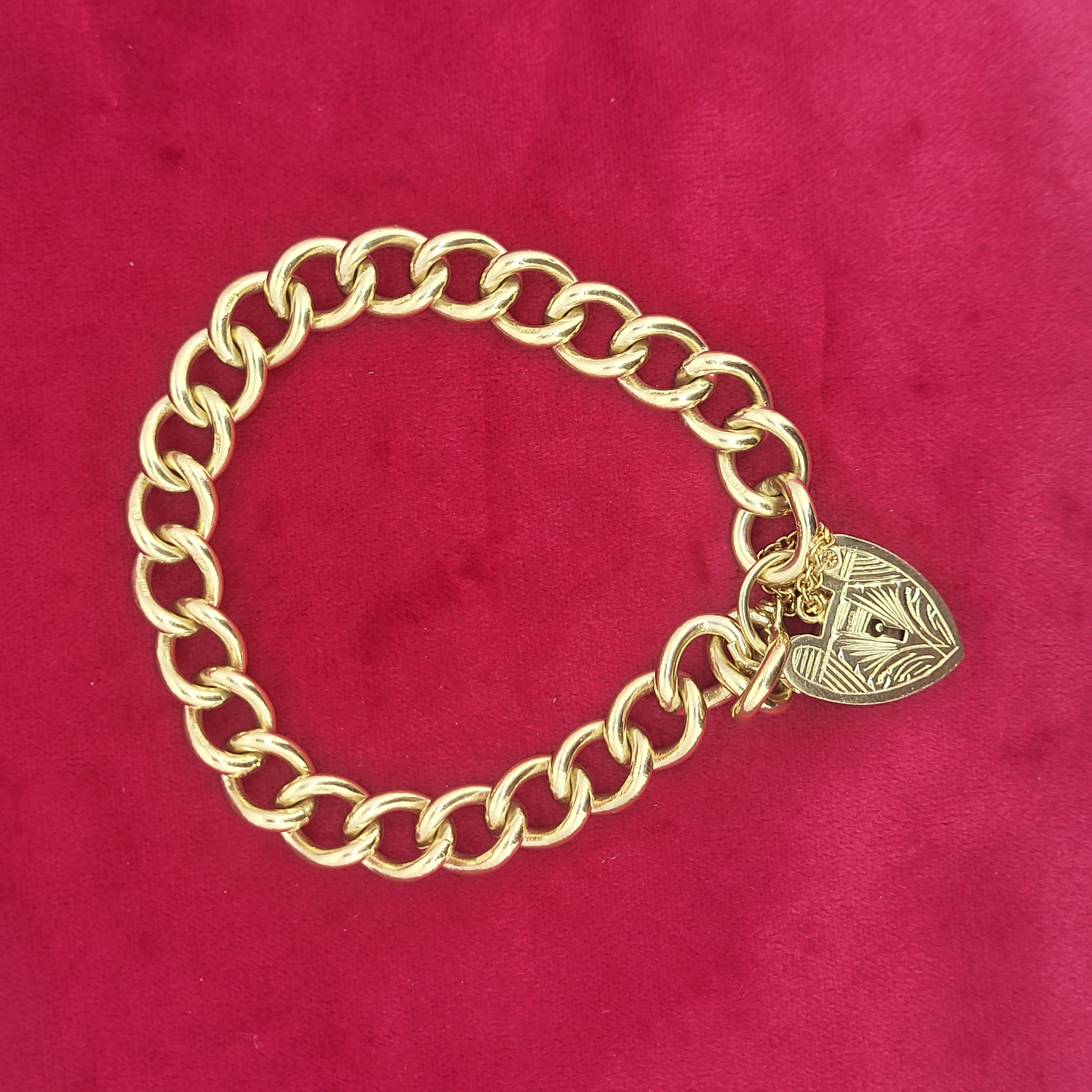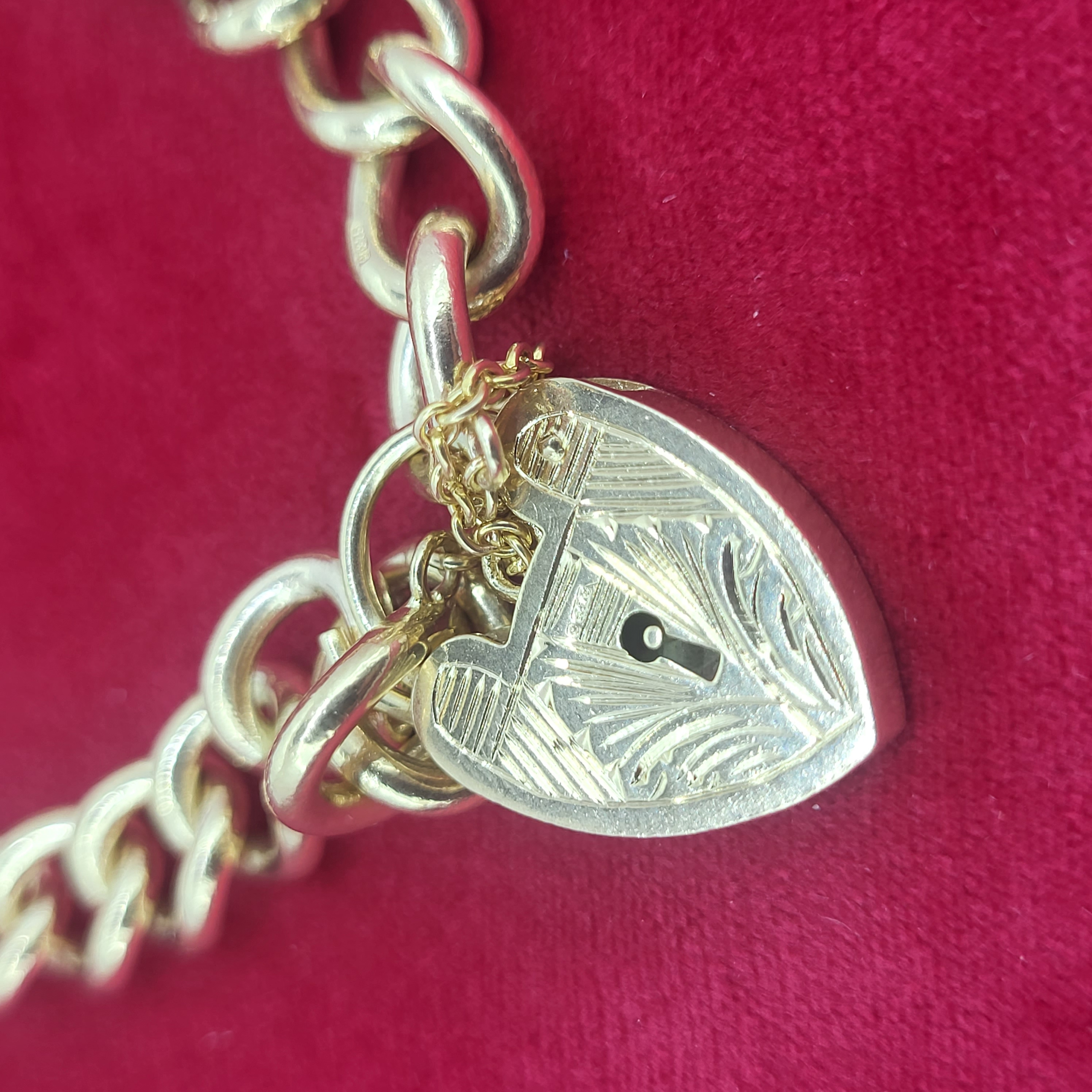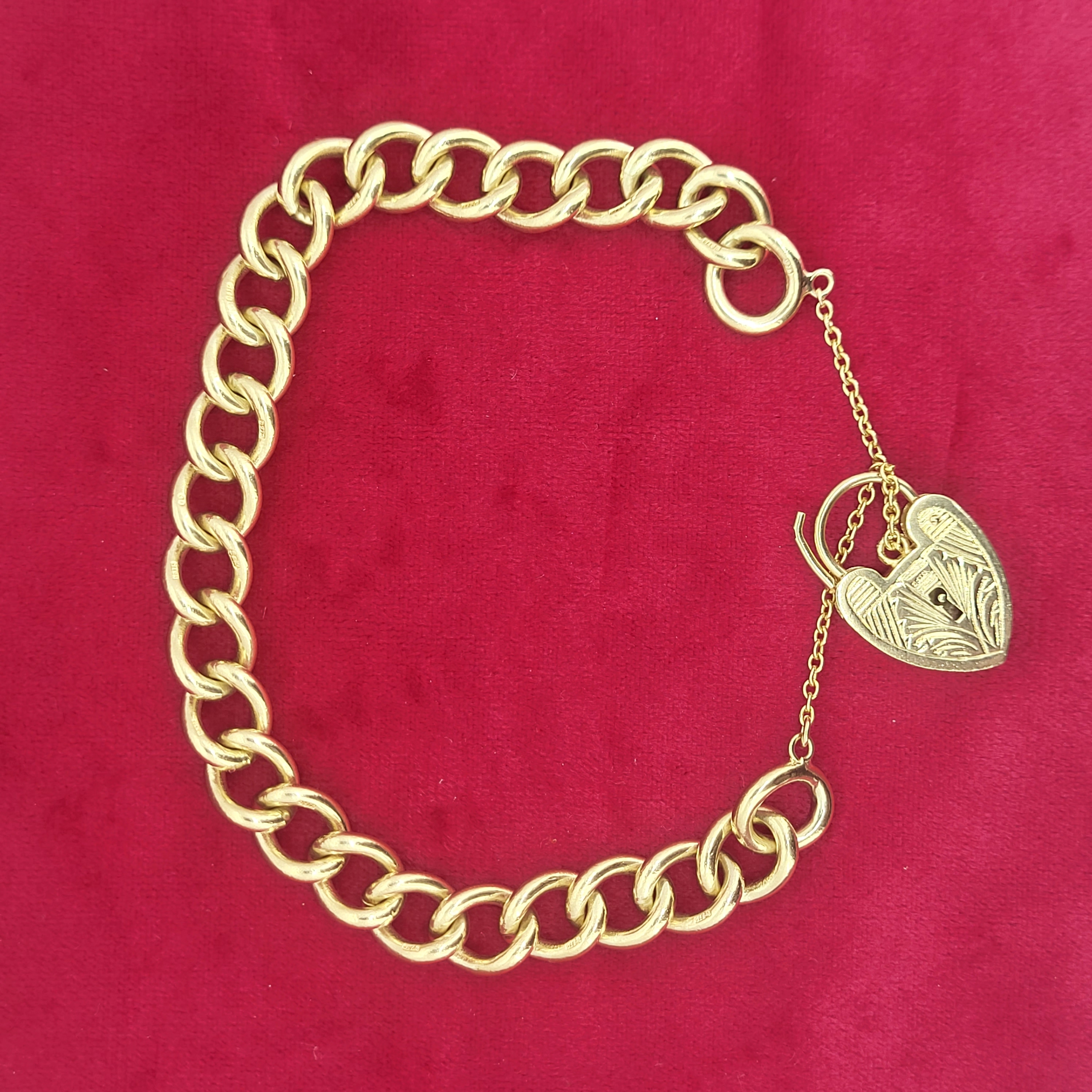 Presenting this adorable solid 9ct gold charm bracelet with decorative heart-shaped padlock. Aesthetically this bracelet is worthy of your attention but when you consider it's age it is even more impressive and commanding!