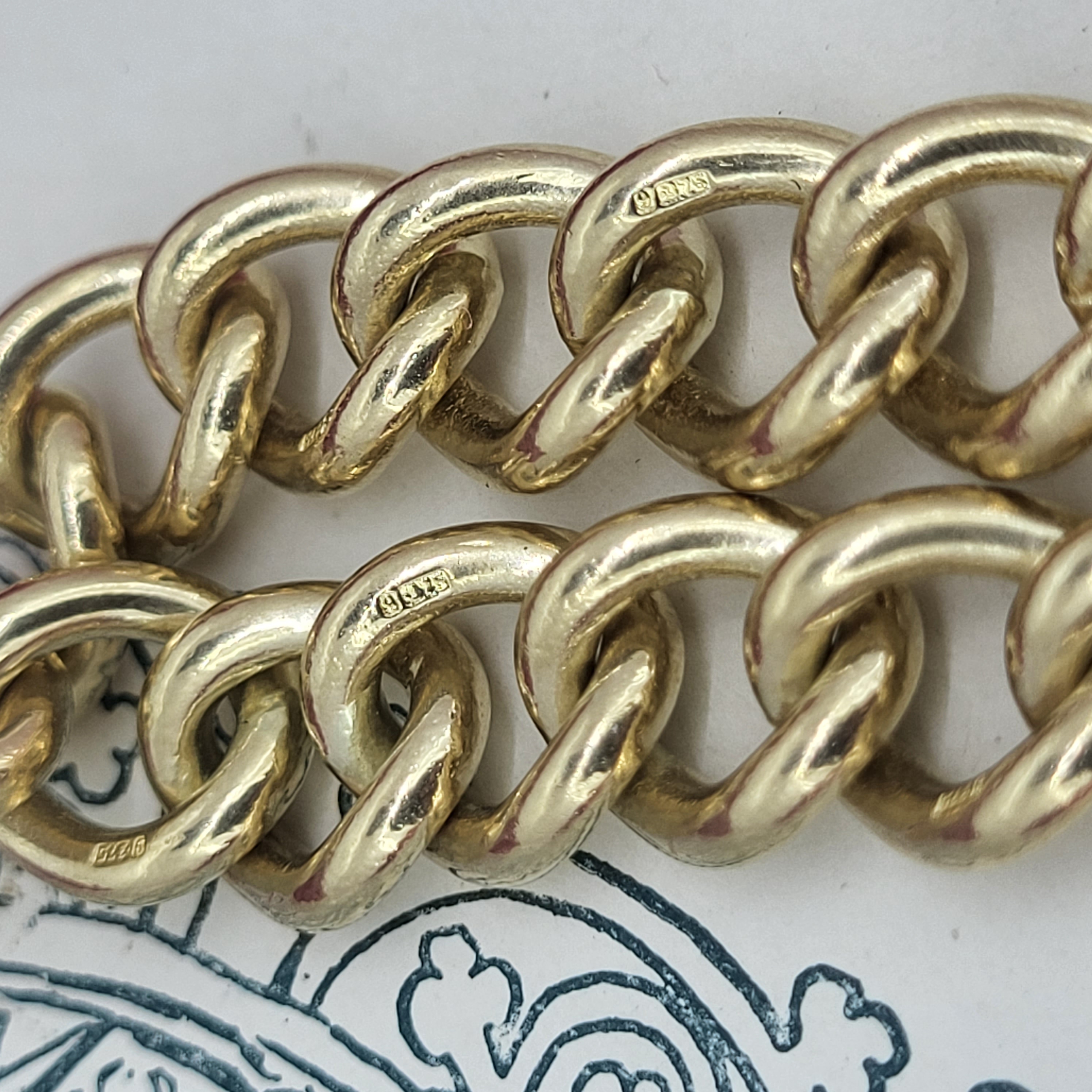 Good to note that all the Individually stamped links measure 9.5mm in width. The bracelet will fit up to a 19cm wrist and weighs 37.7 grams.