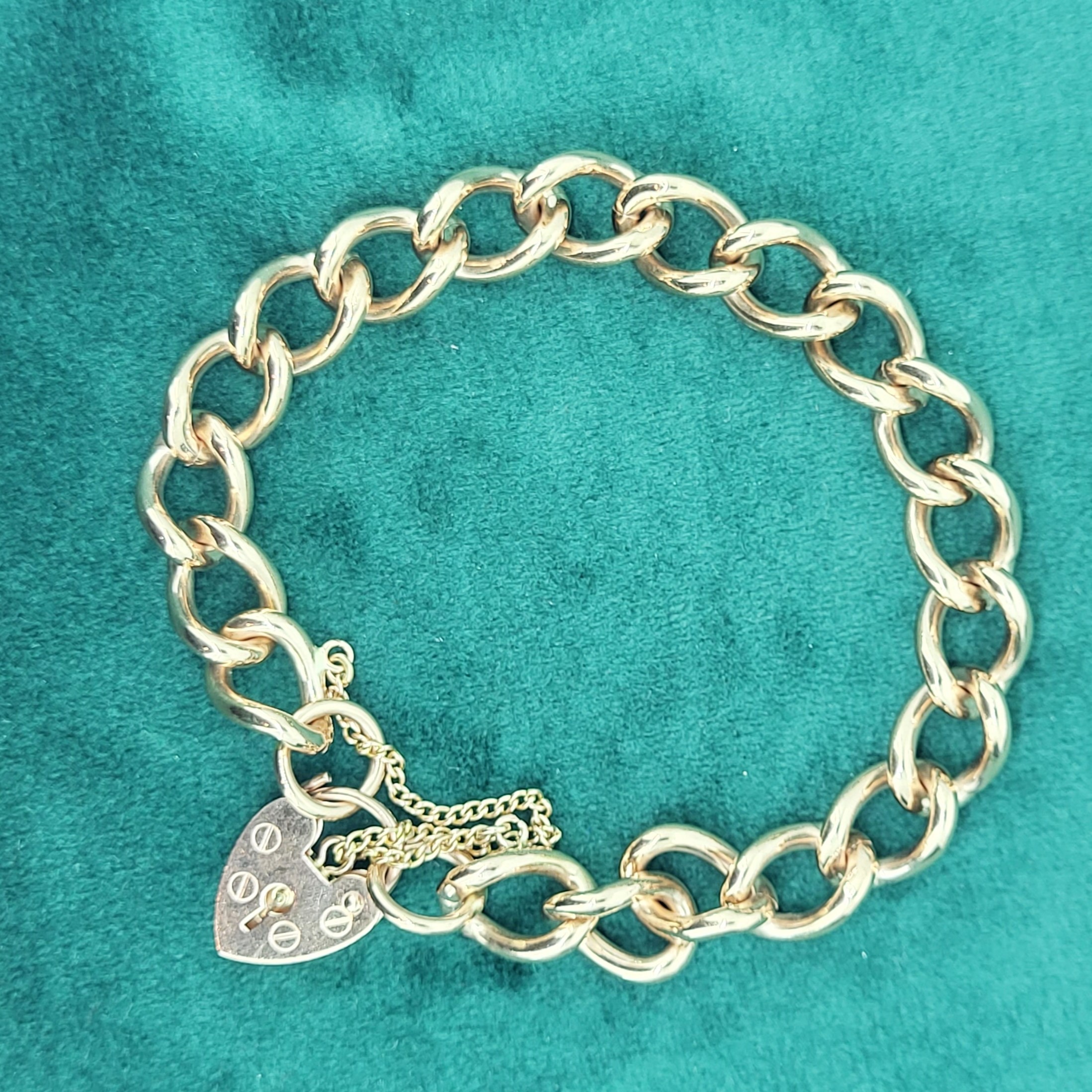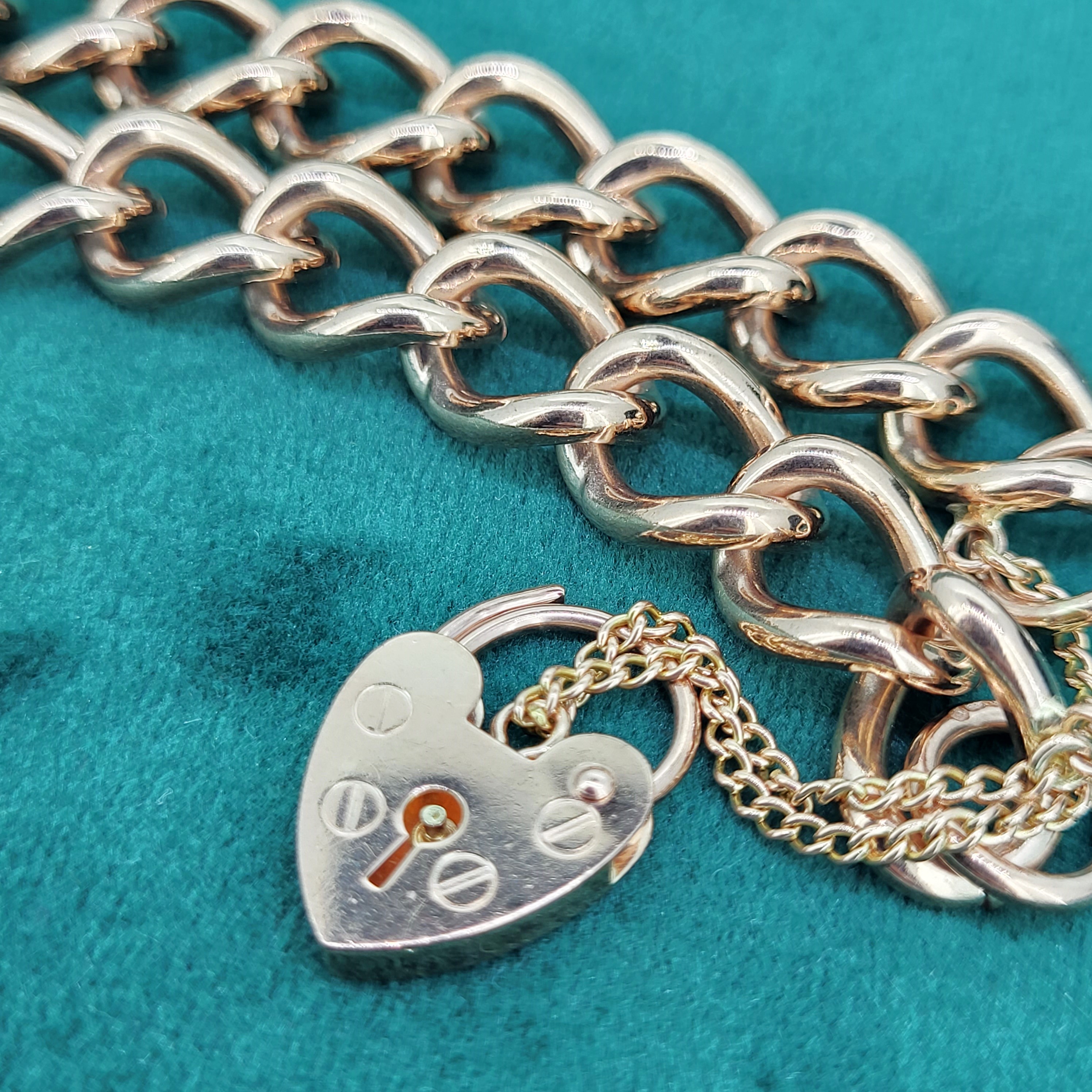 This bracelet is pure quality and class, it features open, twisted curb links with a 12mm diameter. It is also fitted with a polished heart padlock and safety chain.