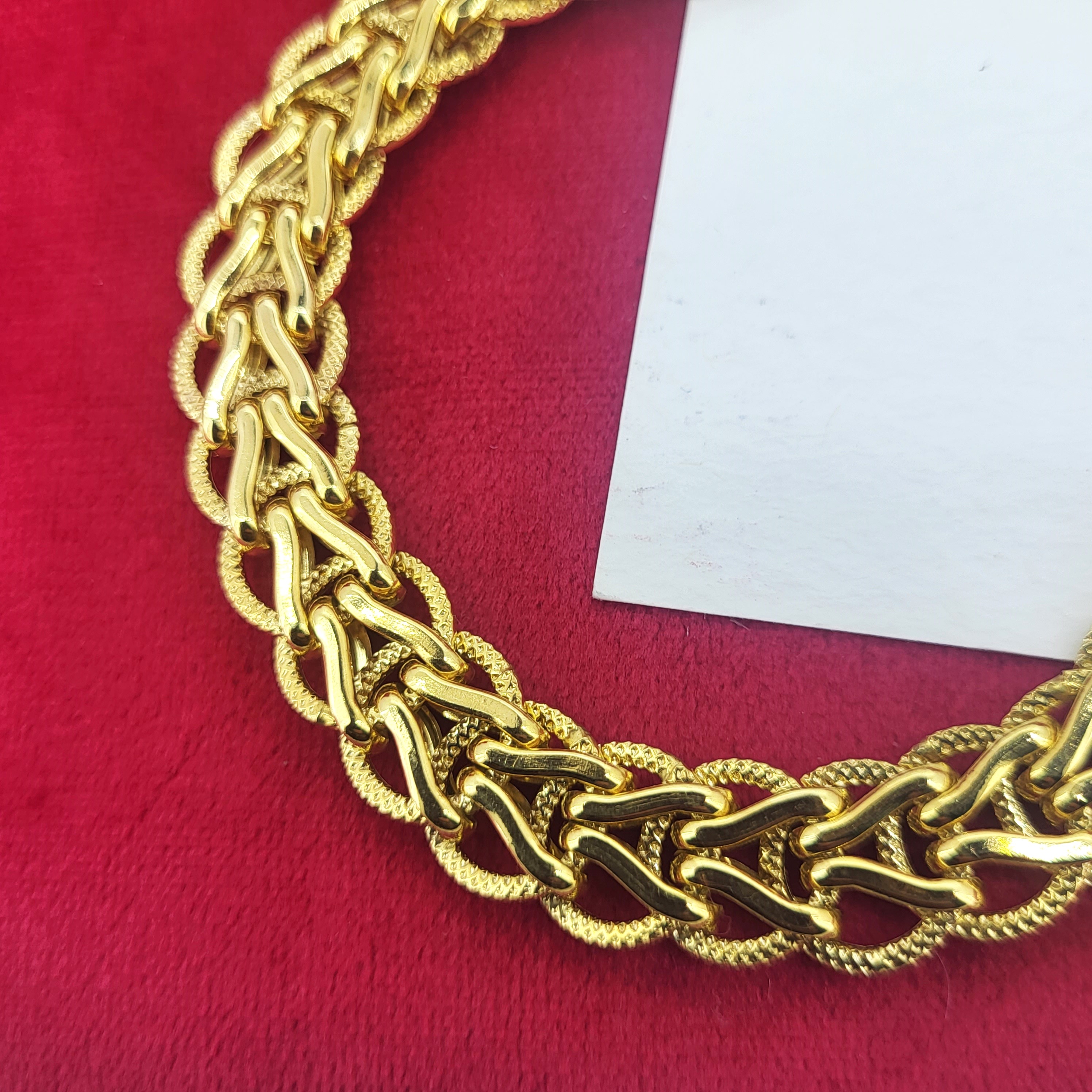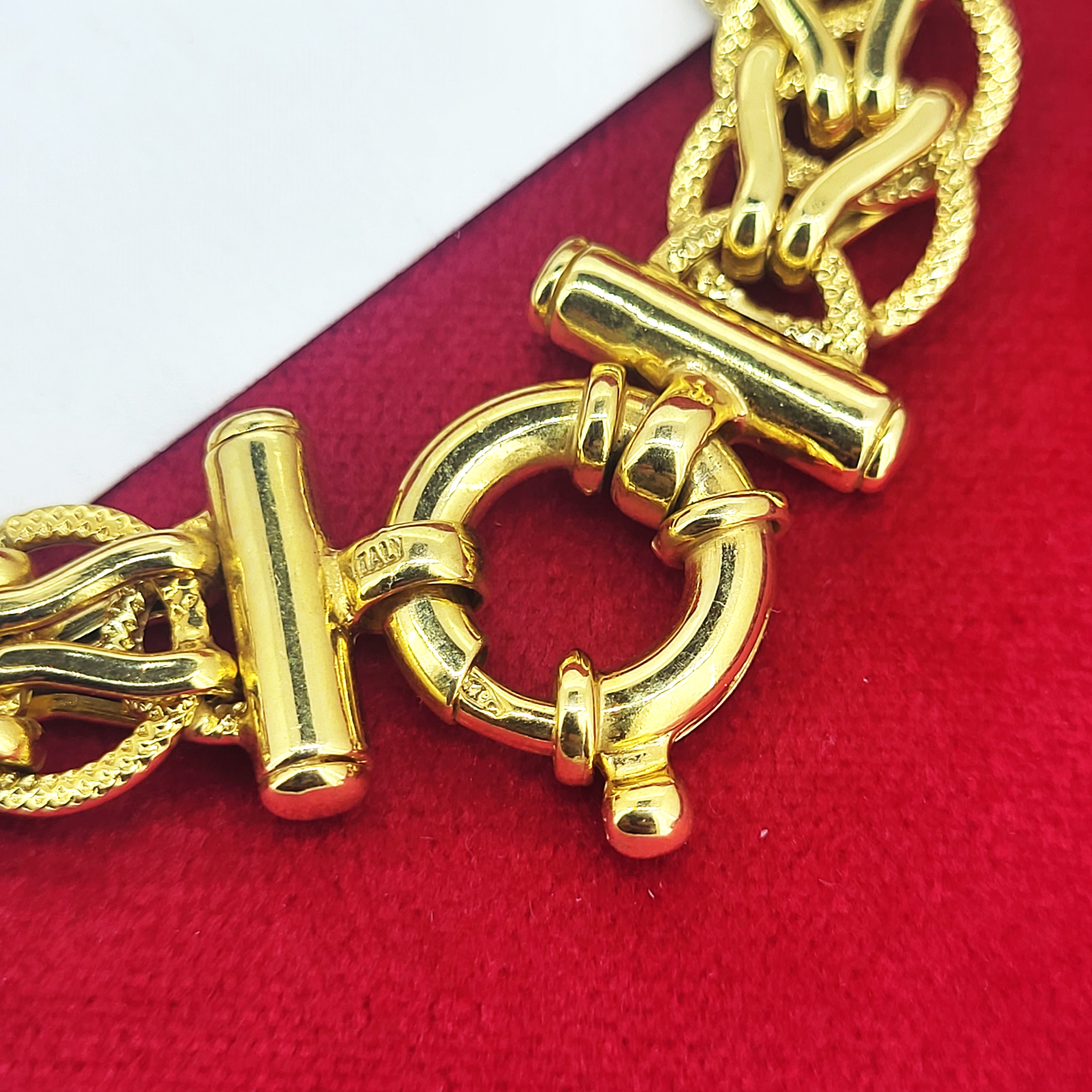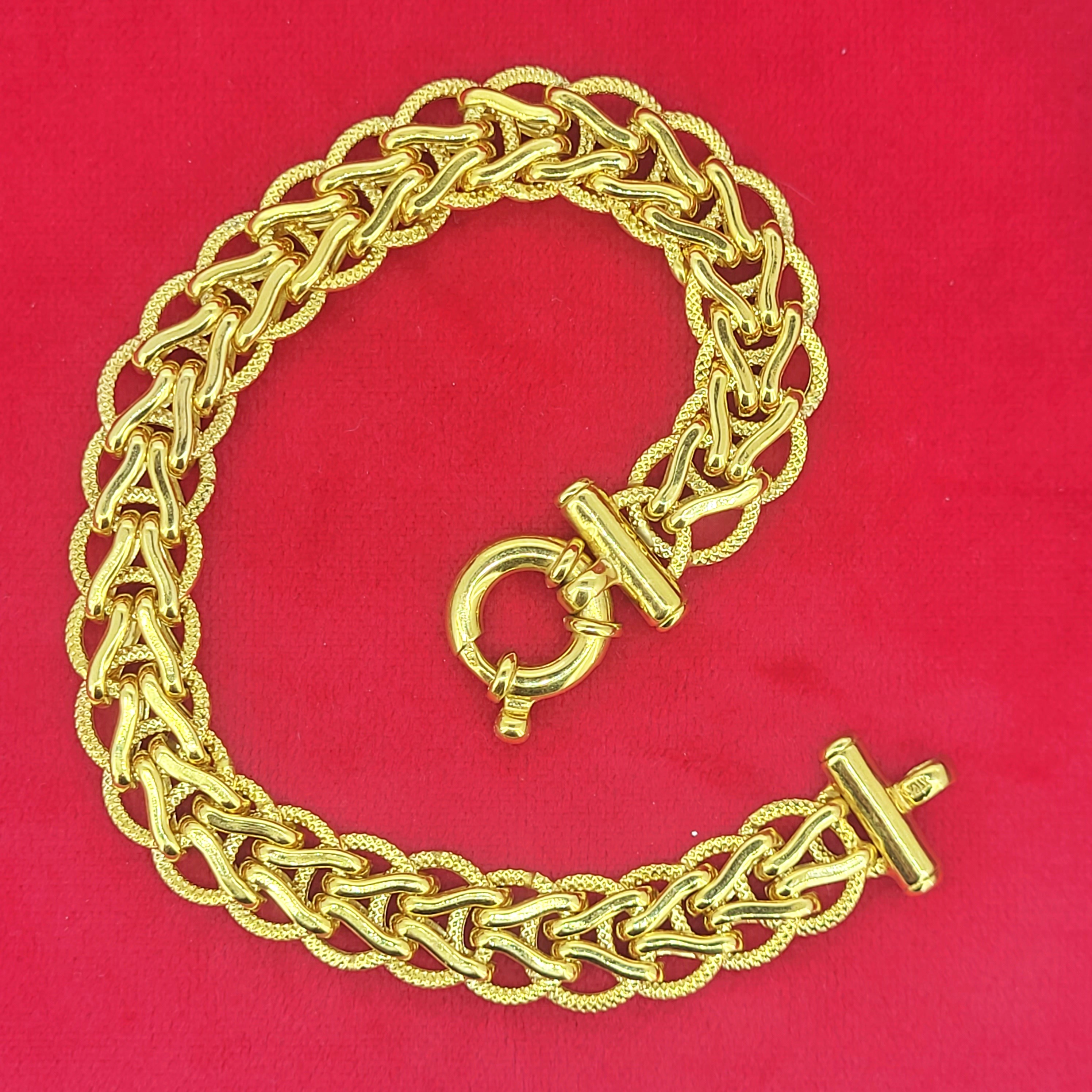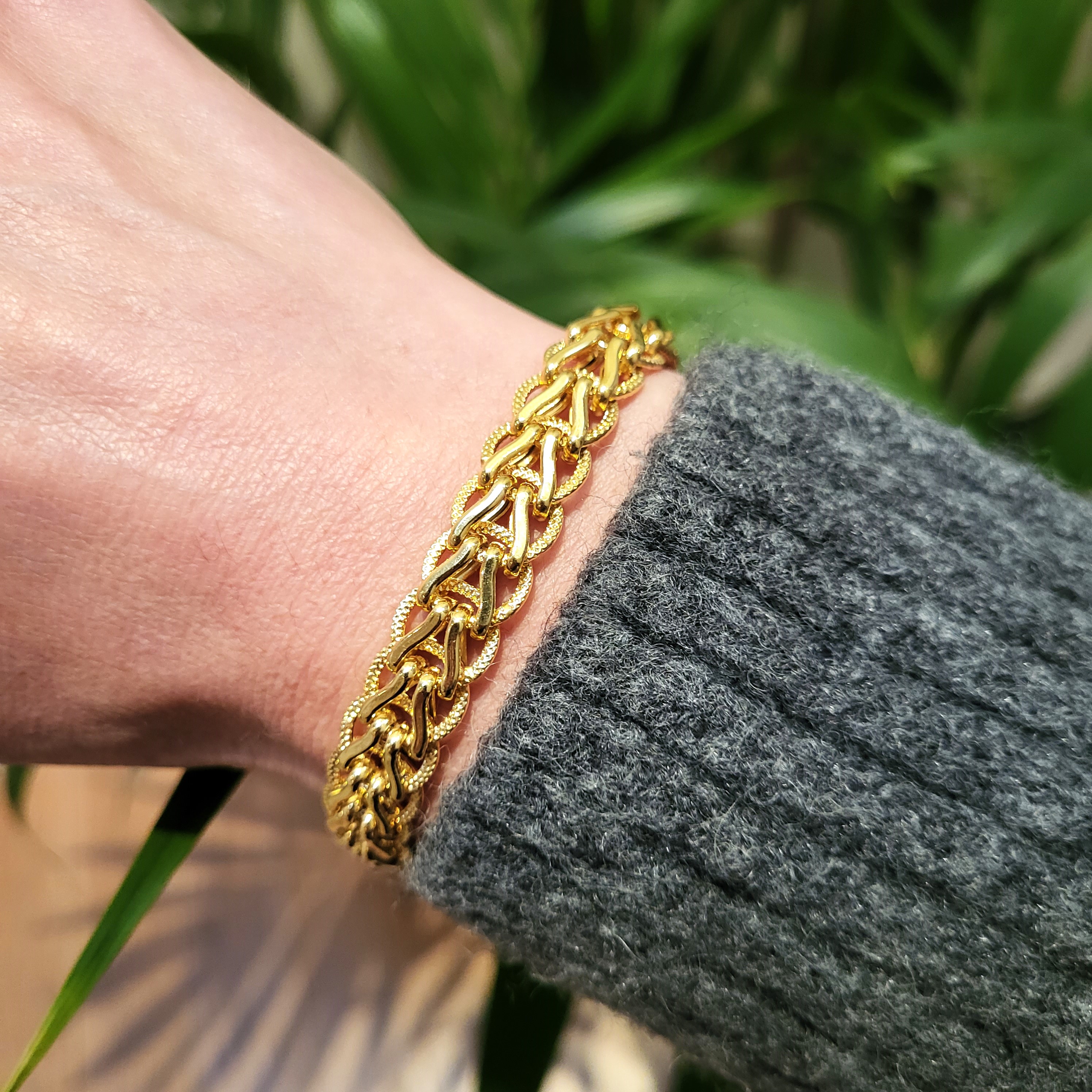 The bracelet features smooth and flat interlocking links that are a lovely bright yellow that would usually be associated with the colour of 18ct Yellow Gold.