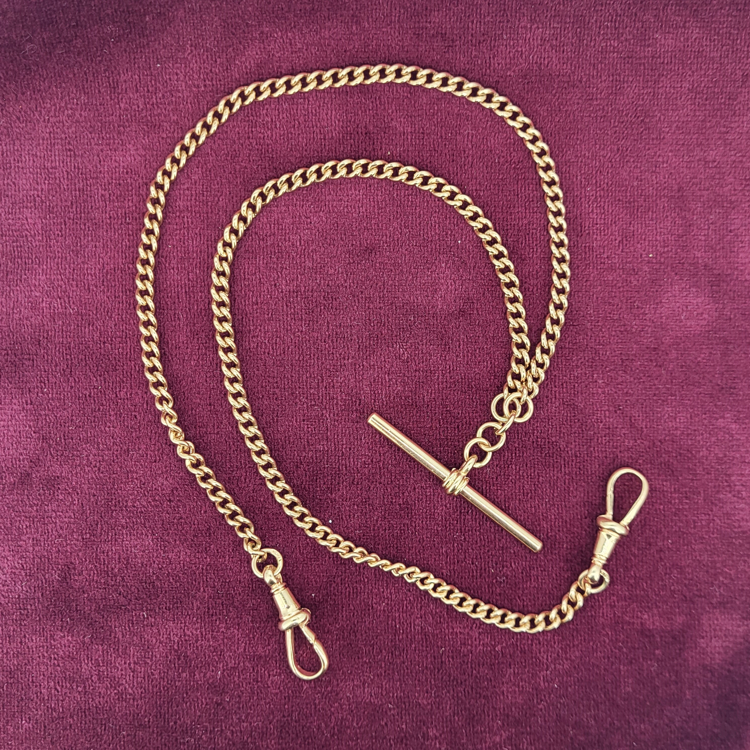 The chain features uniformed traditional curb links that measure 3.5mm in width. It is fitted with a T-Bar that hangs in the centre, it measures 36mm in length and has an FD&SS Makers Mark.
