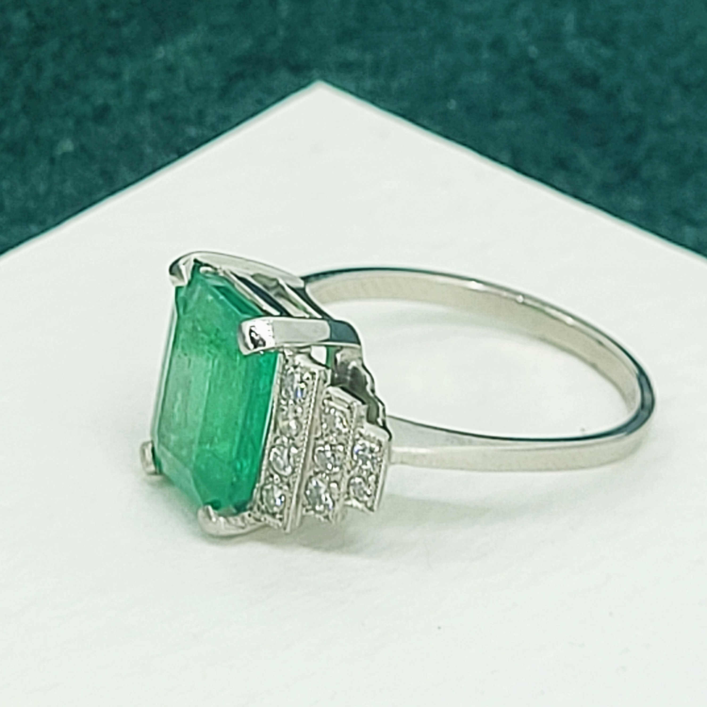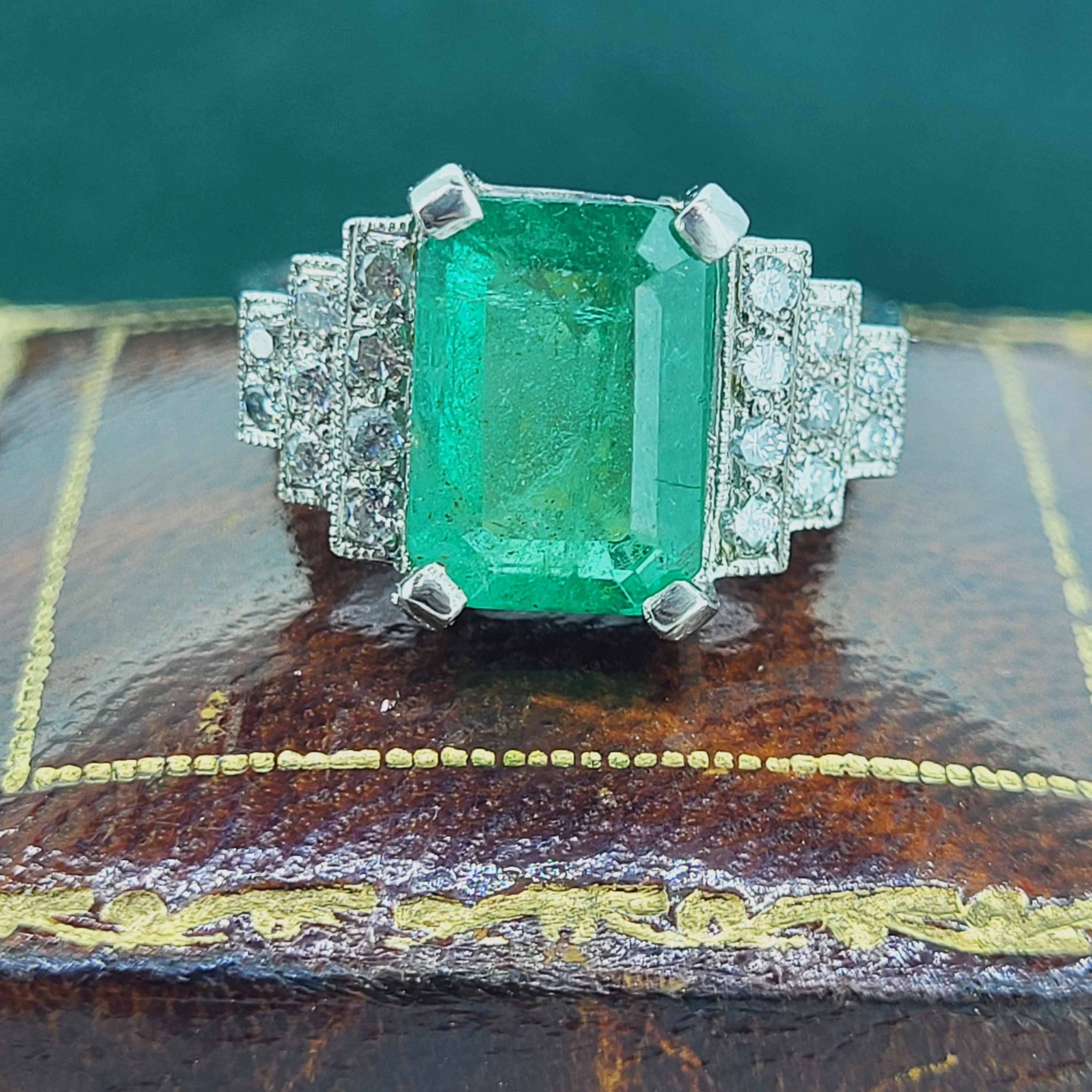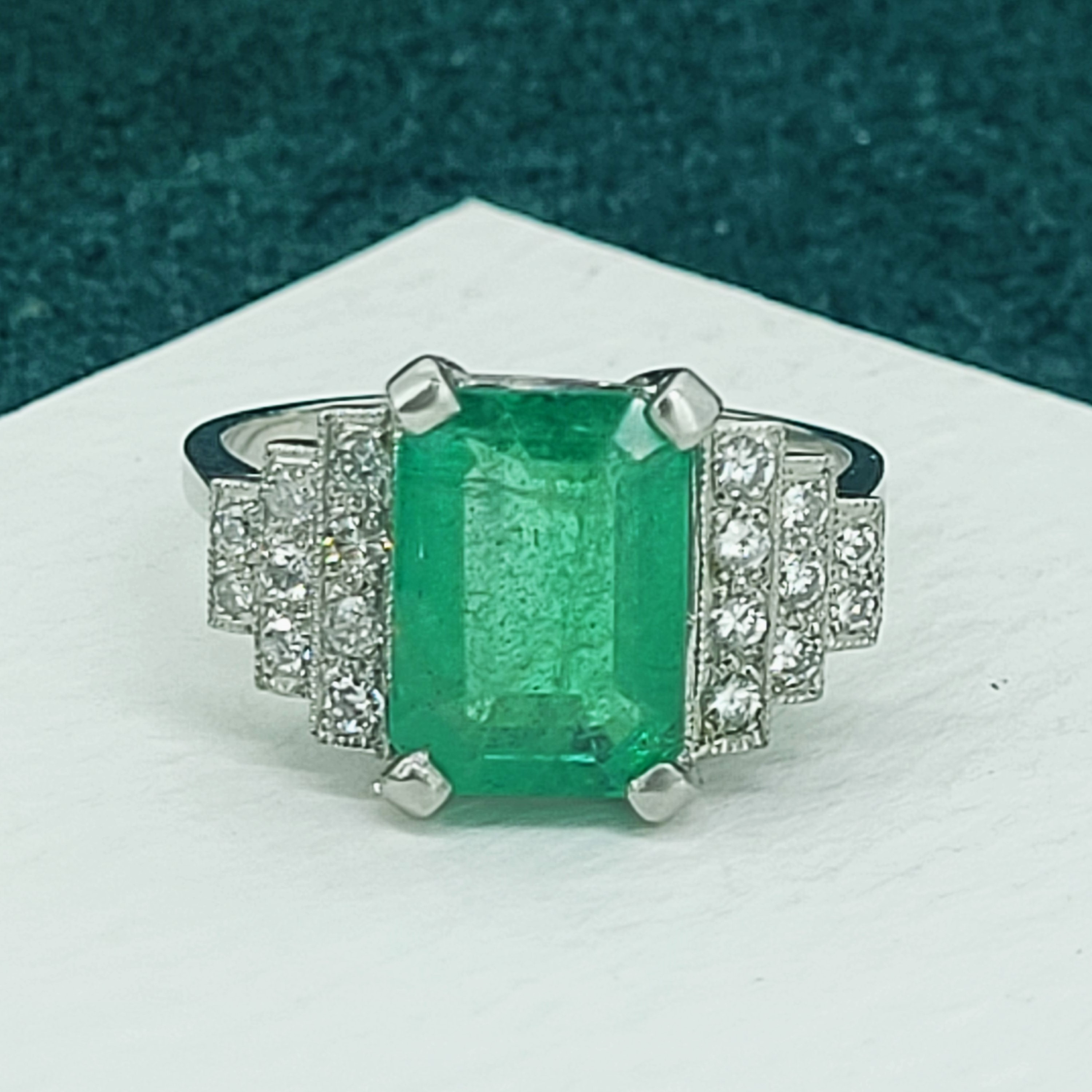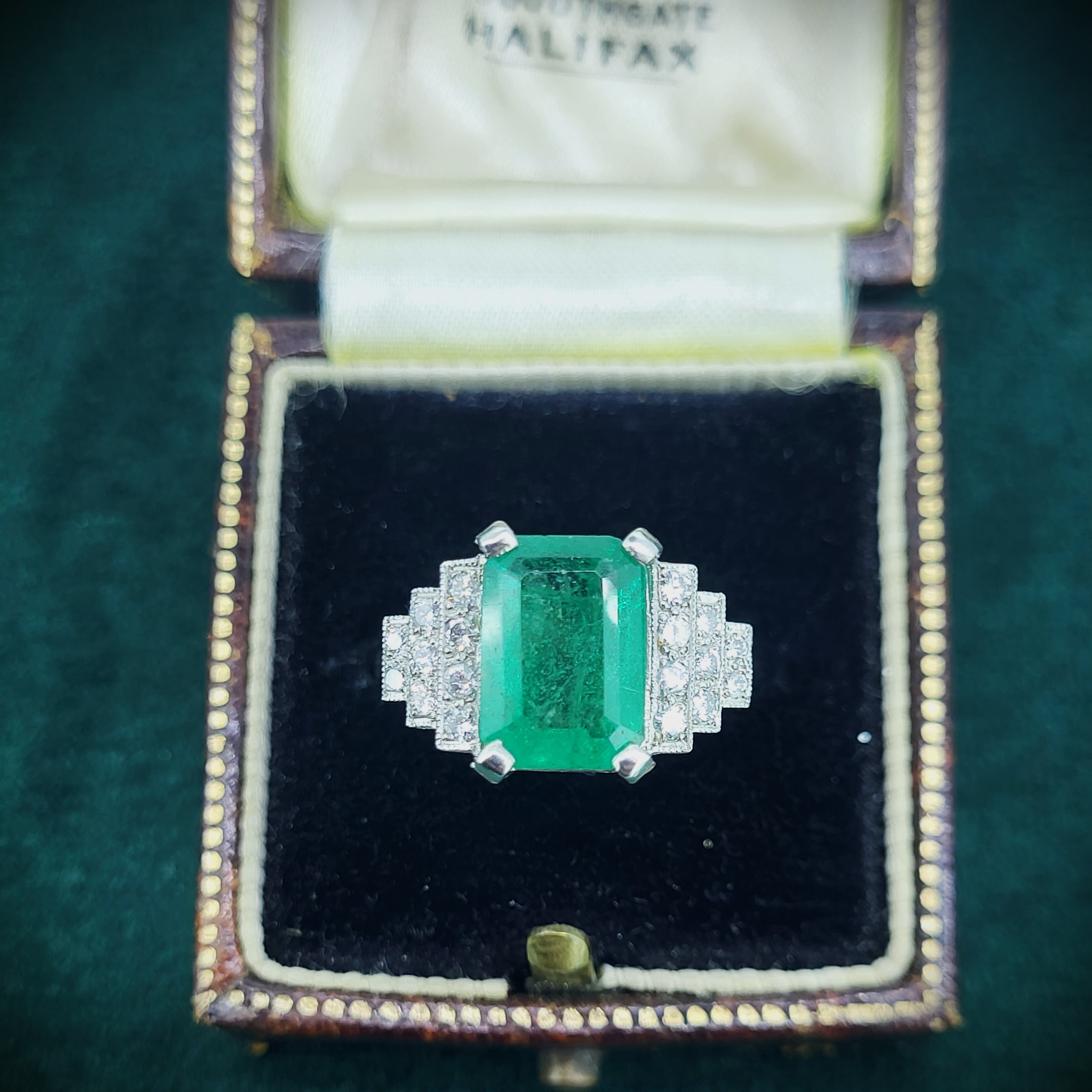 A beautiful Emerald and Diamond Art Deco Ring crafted from Platinum.