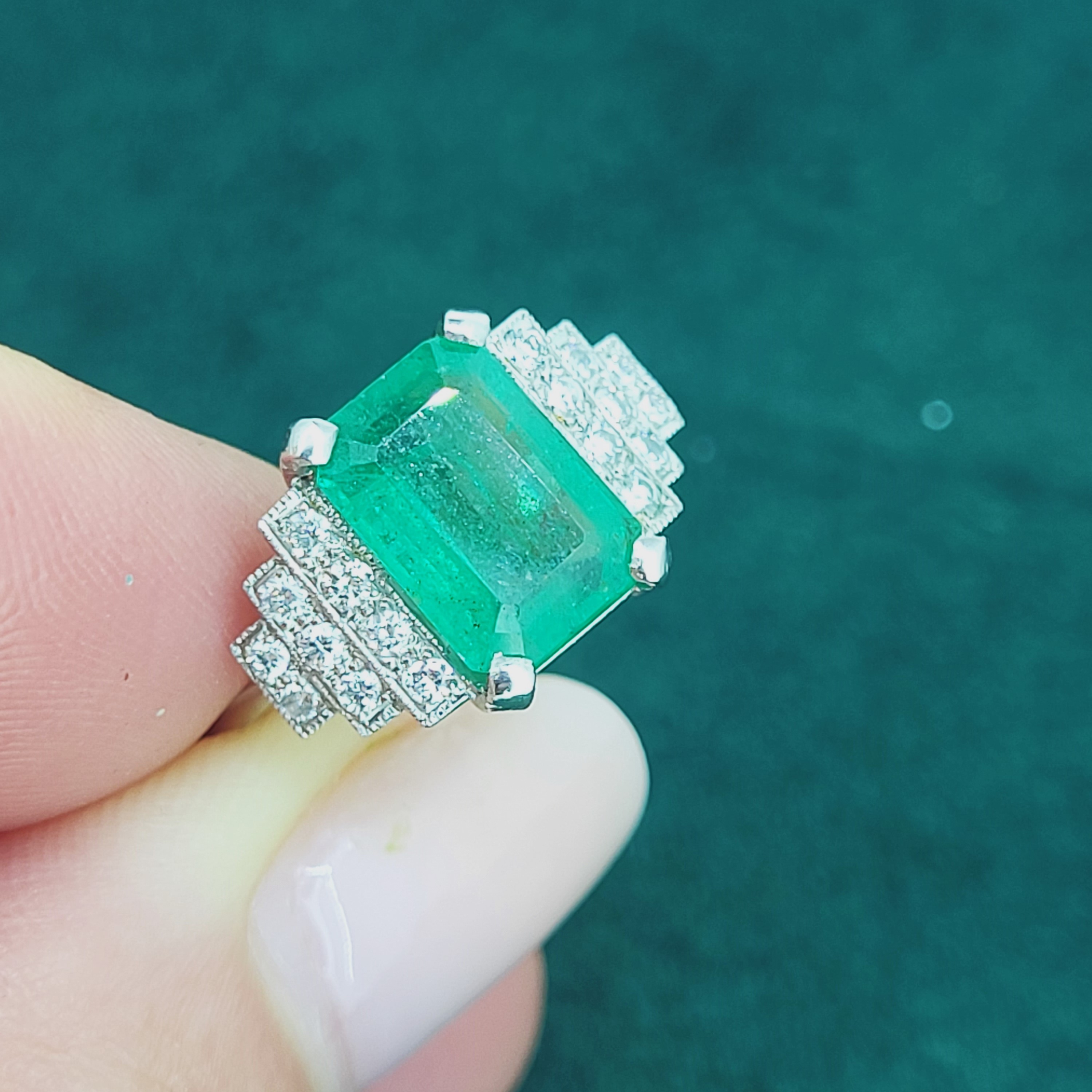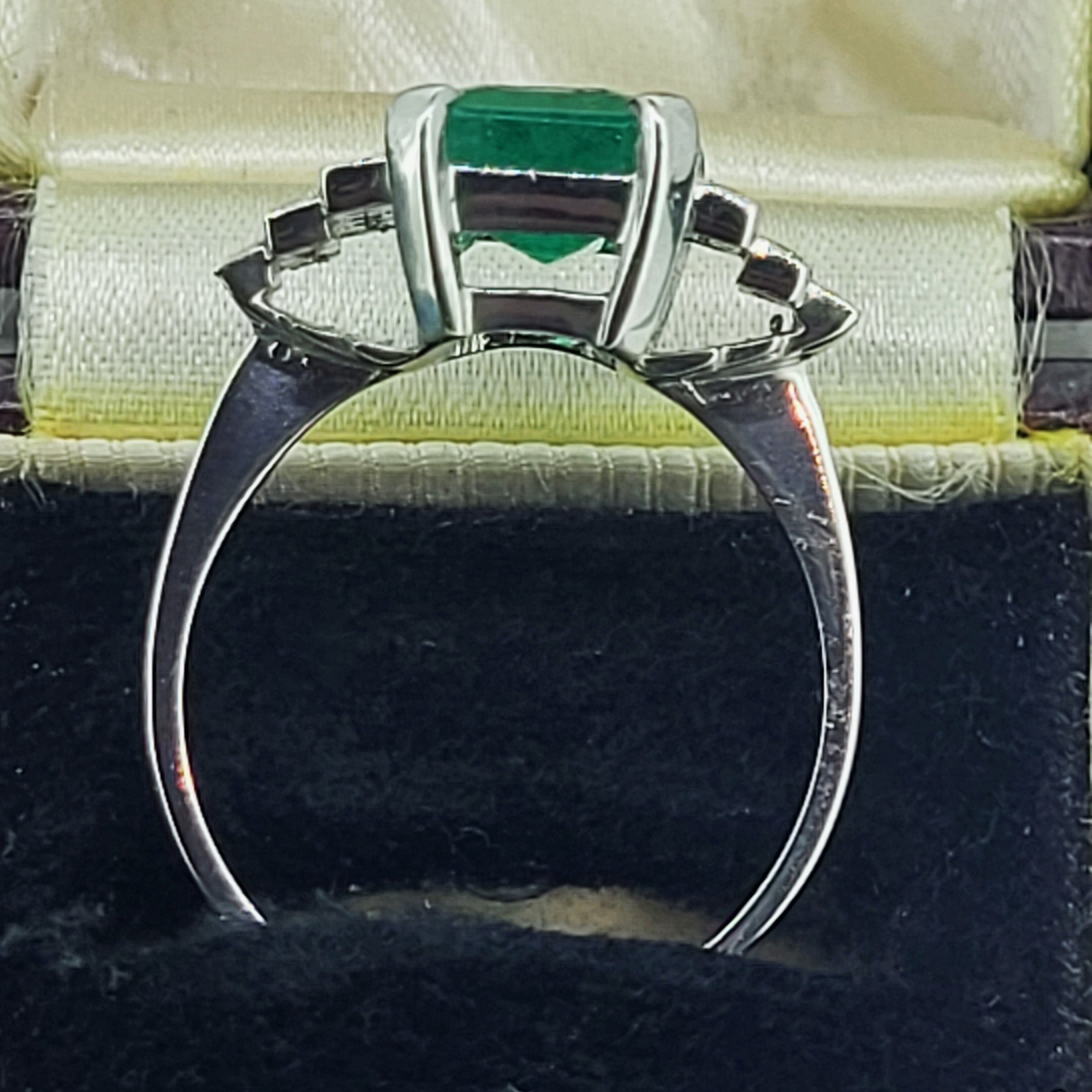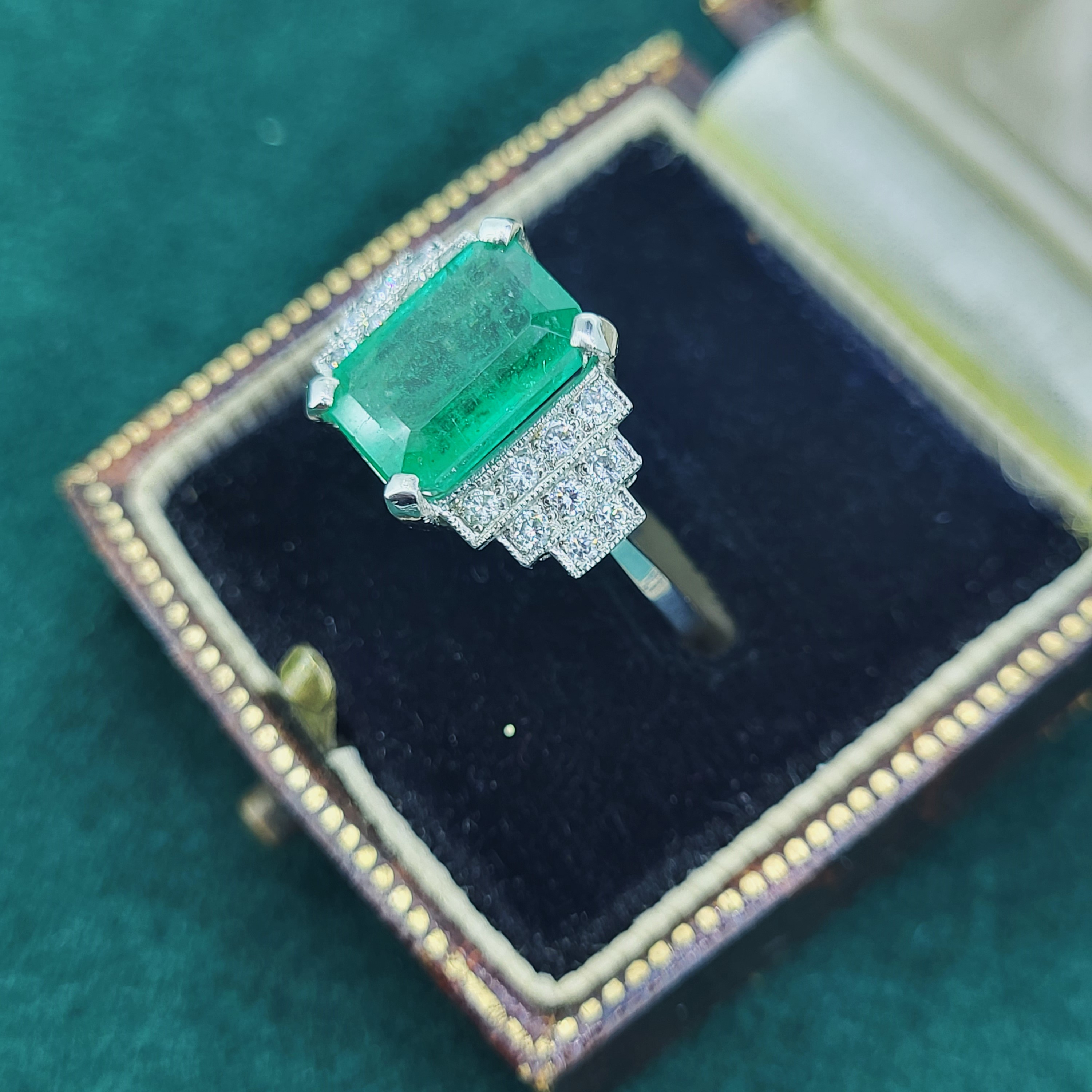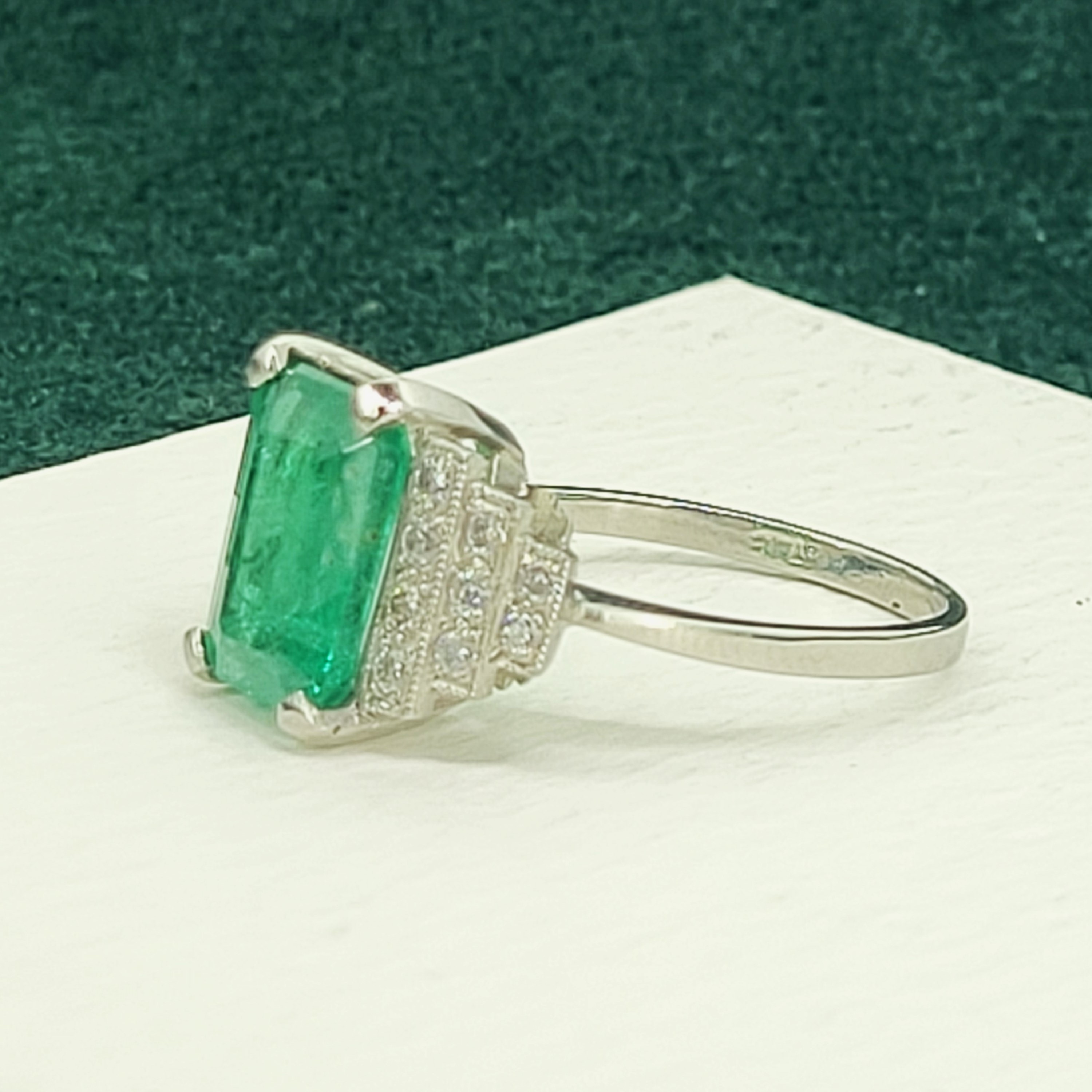 A beautiful Emerald and Diamond Art Deco Ring crafted from Platinum.