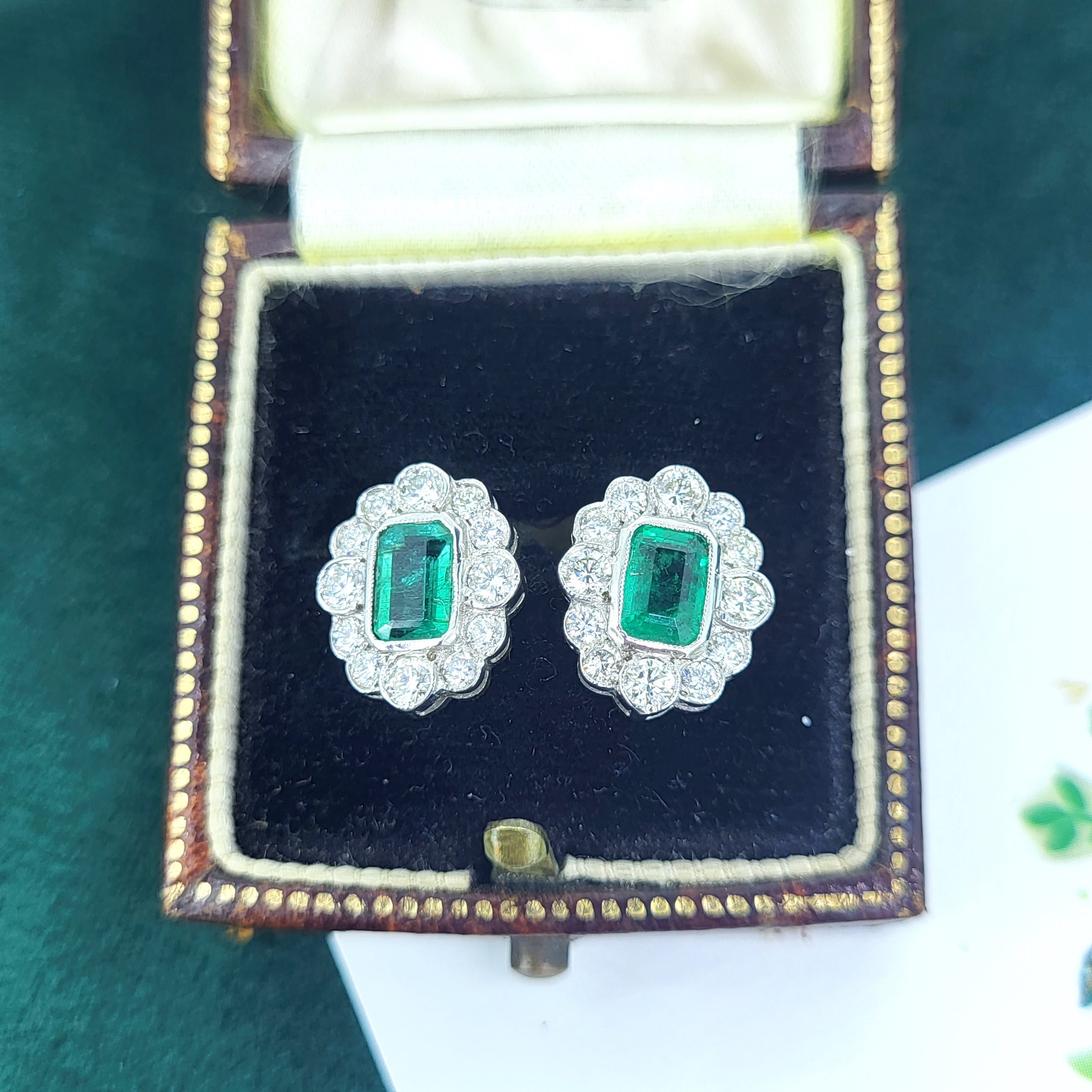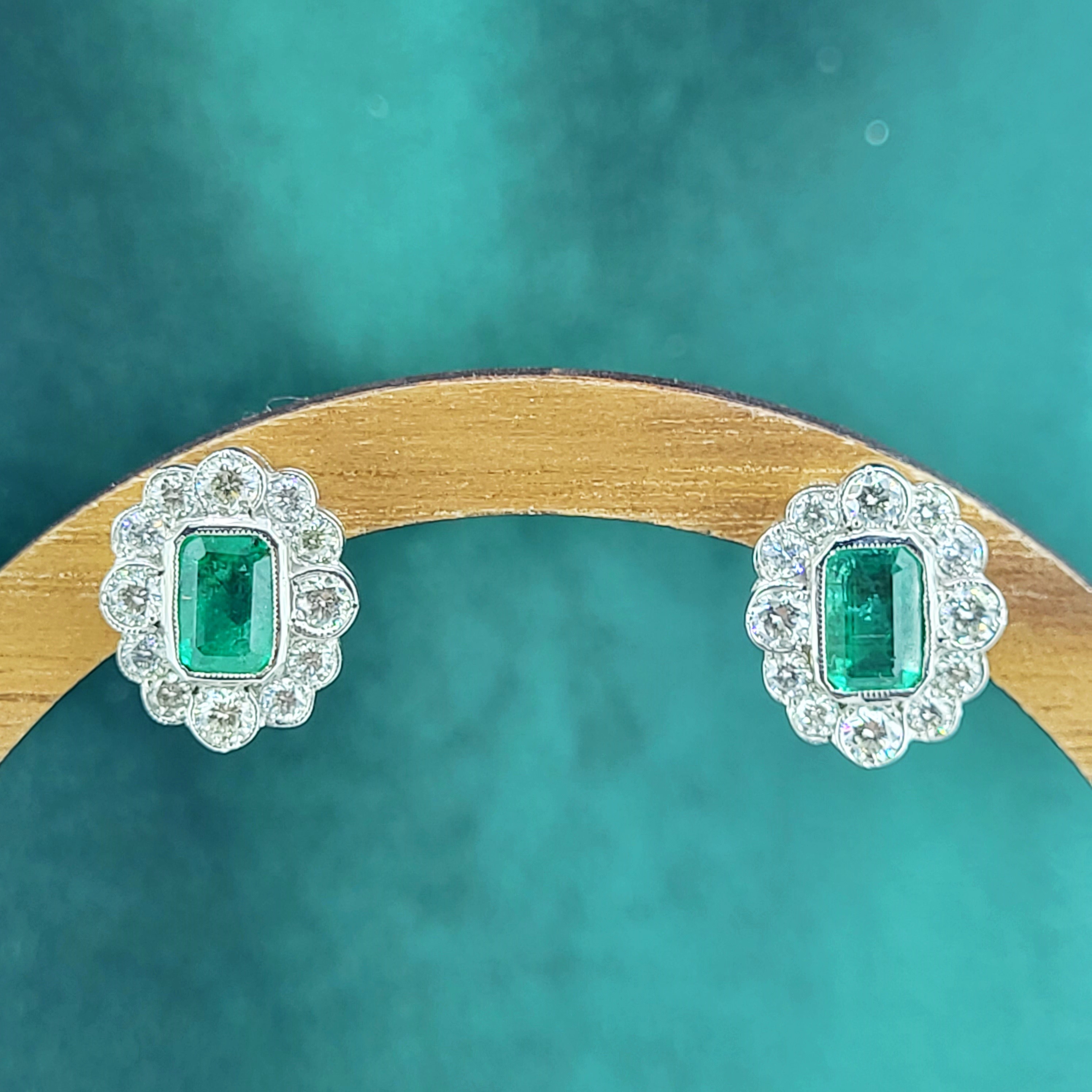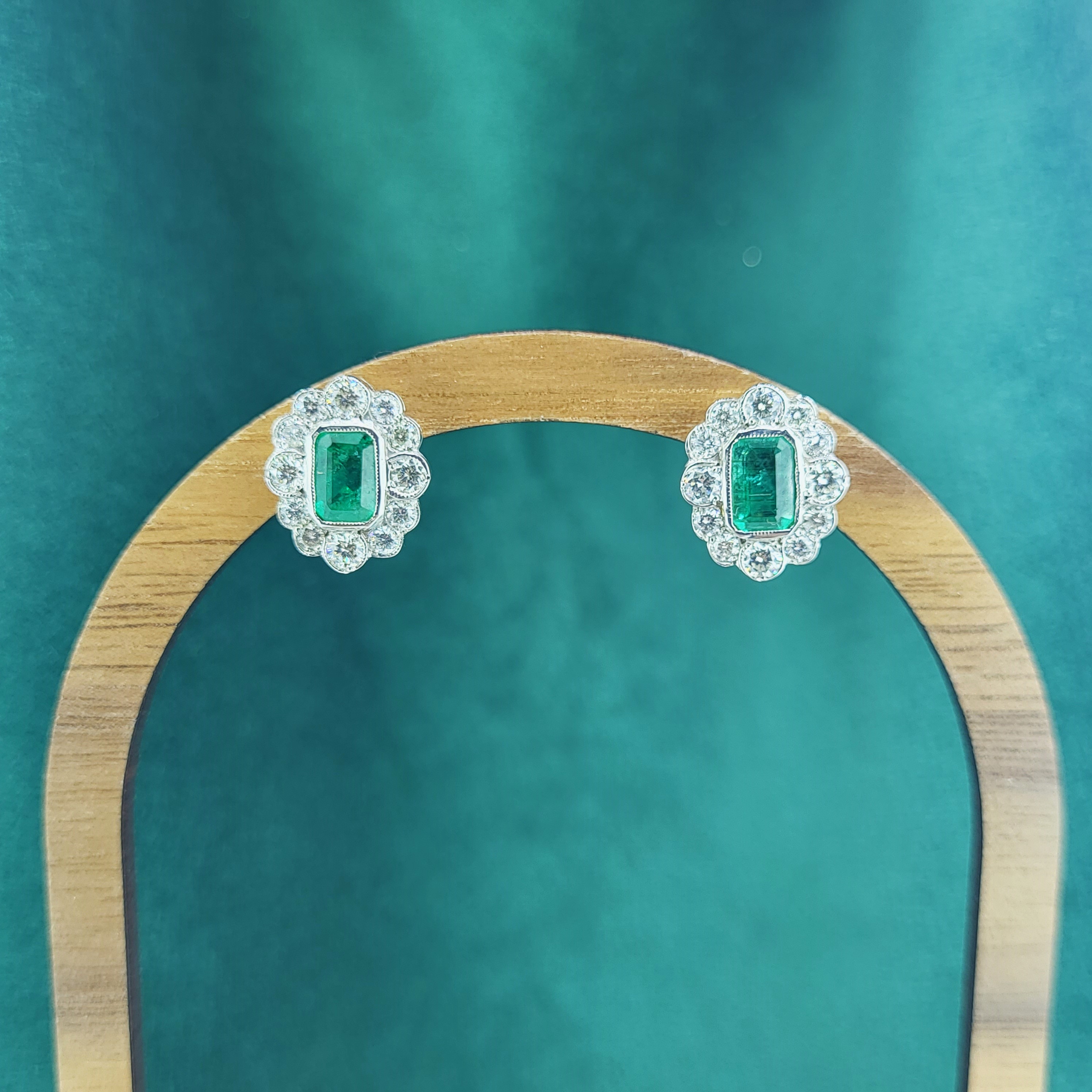 A stunning pair of Emerald and Diamond Cluster Earrings crafted from 18ct Yellow and White Gold.