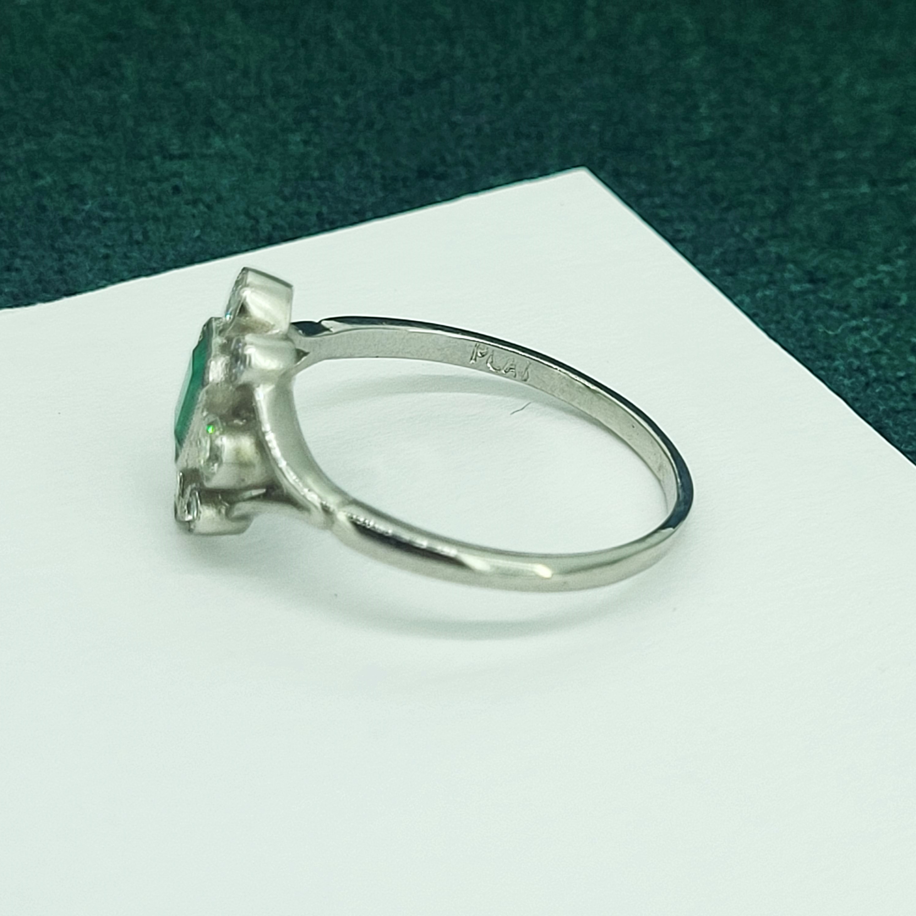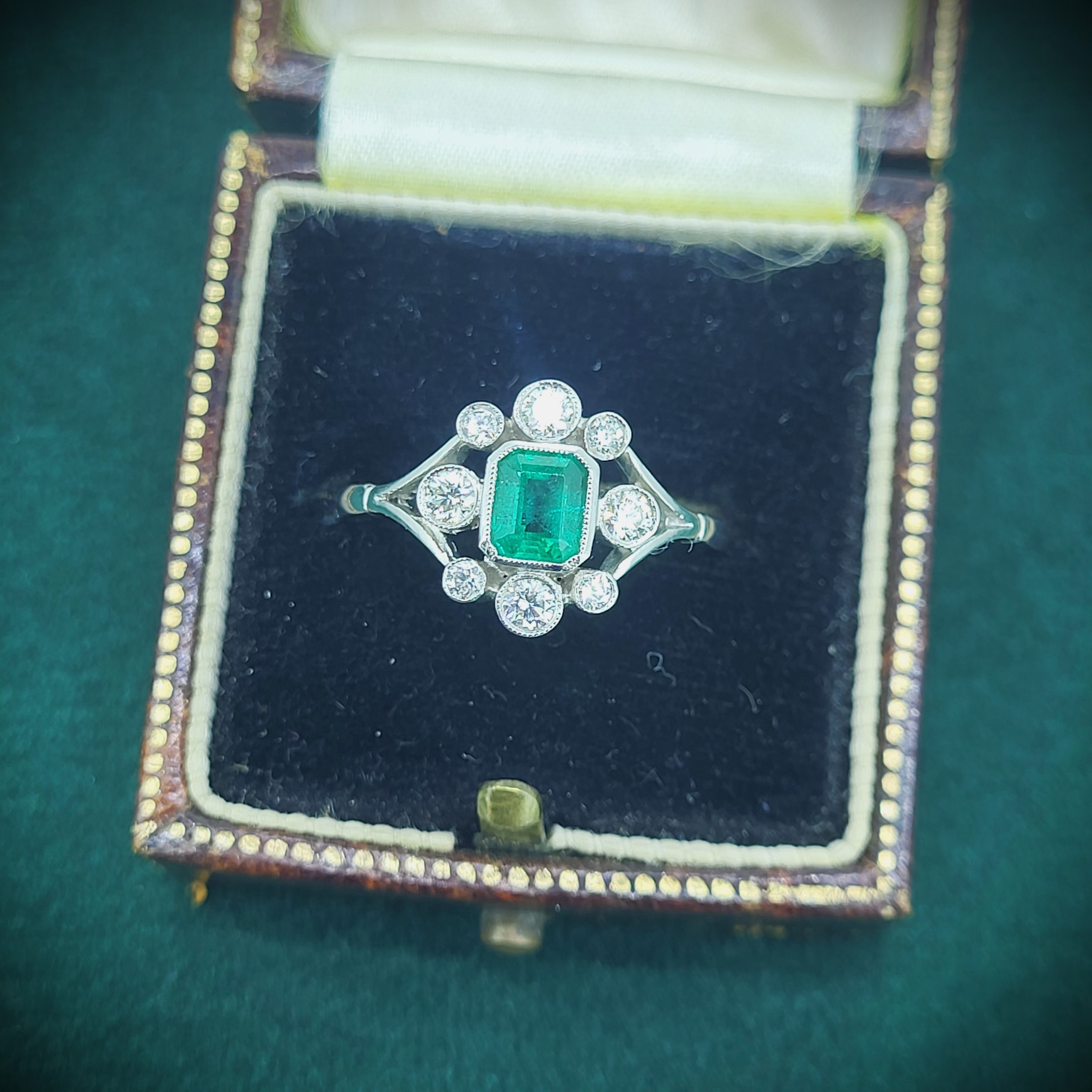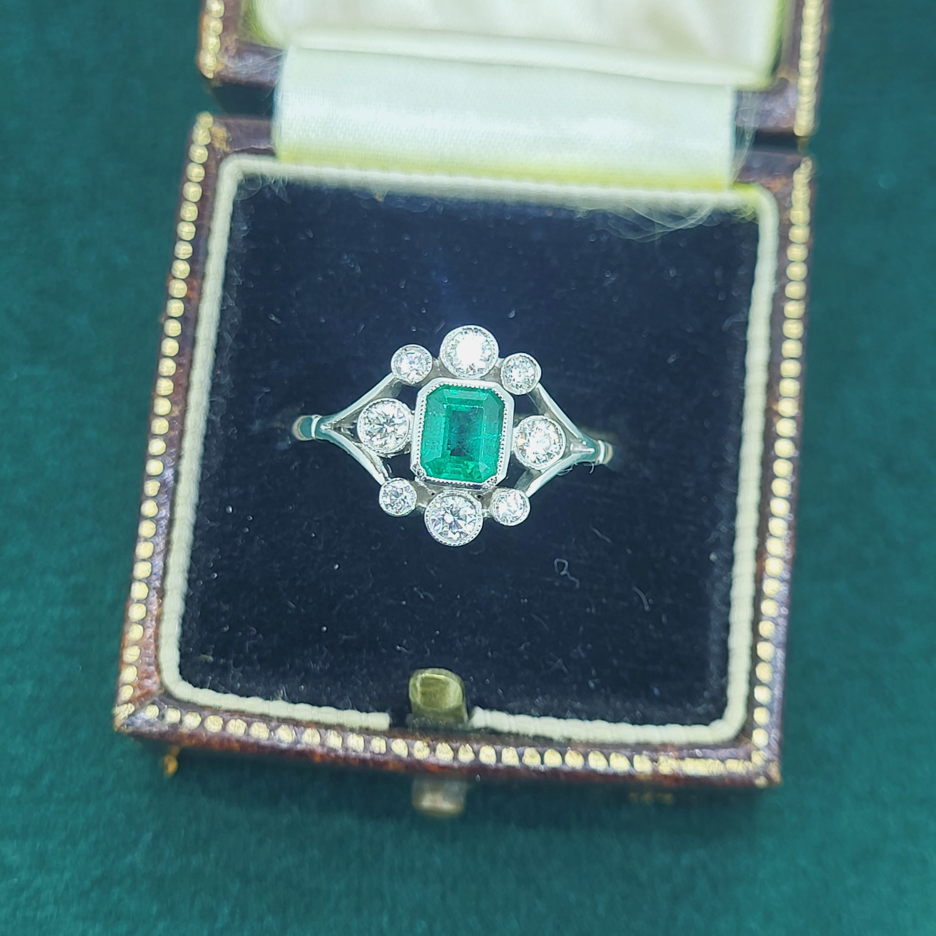 A beautiful Antique Emerald and Diamond Ring crafted from Platinum.