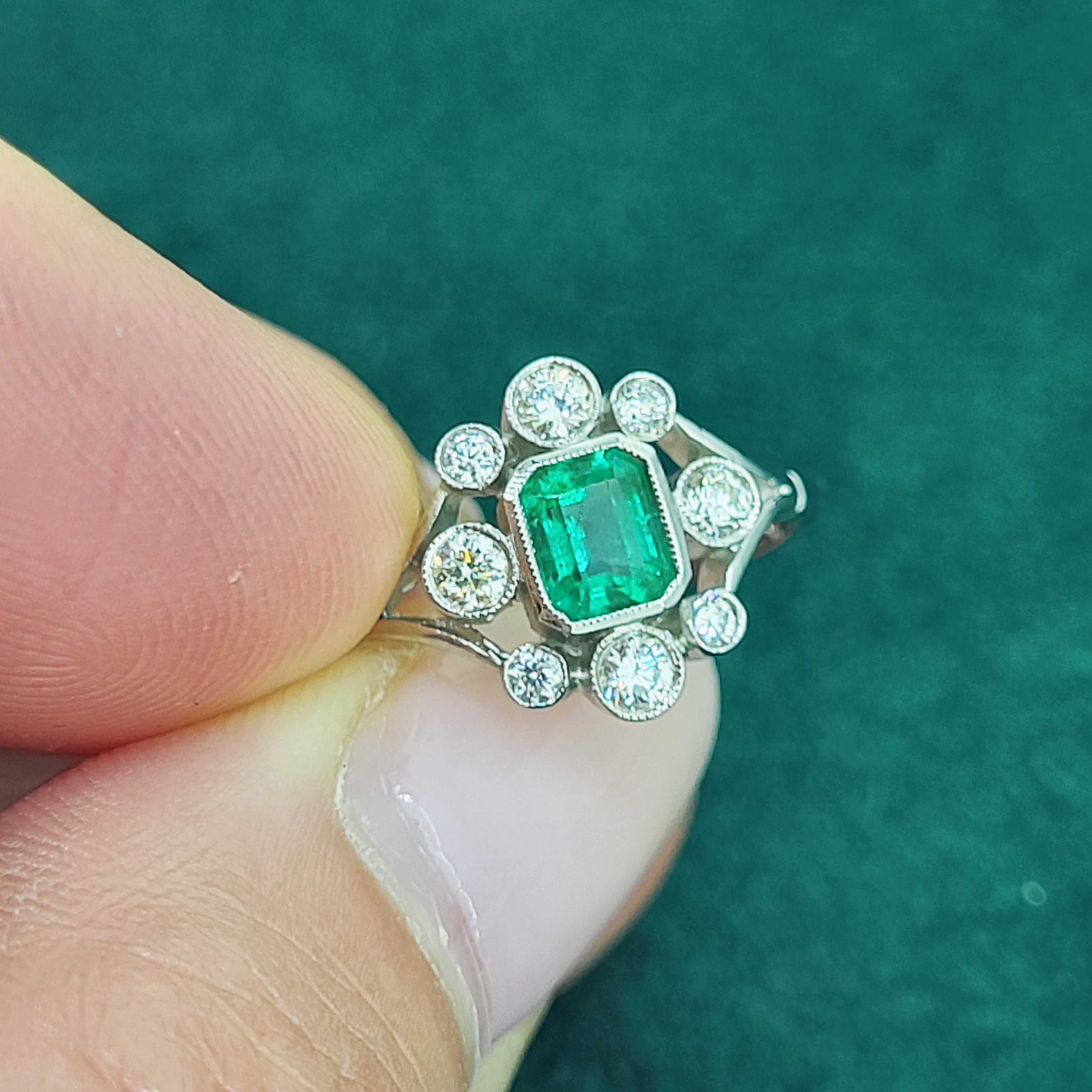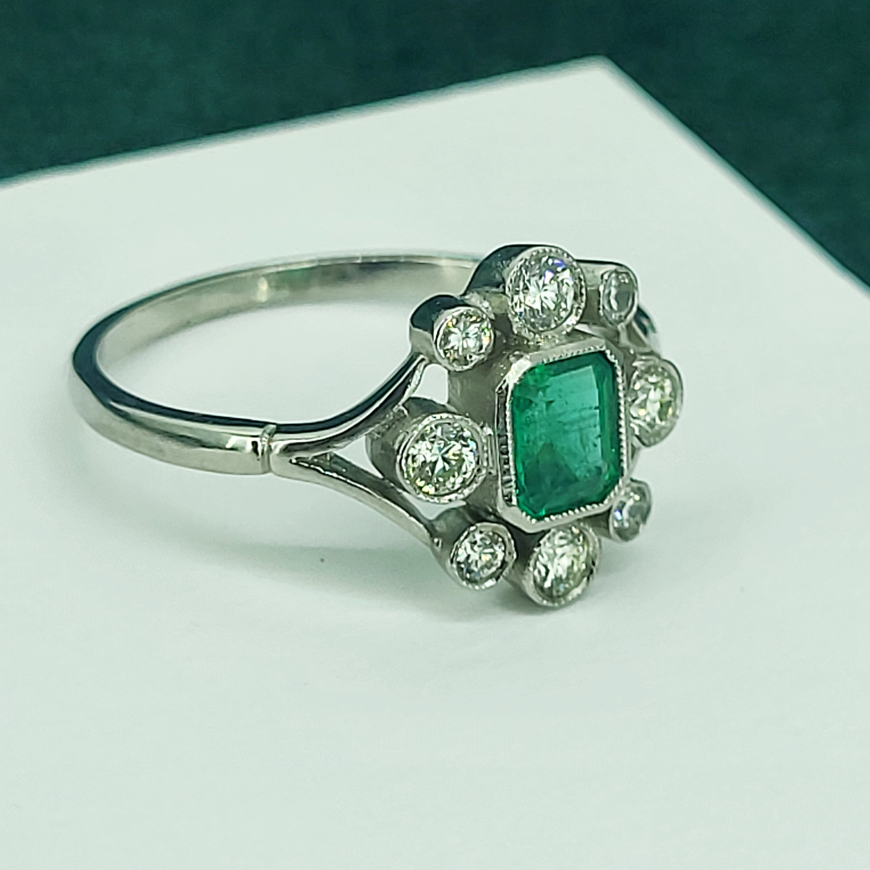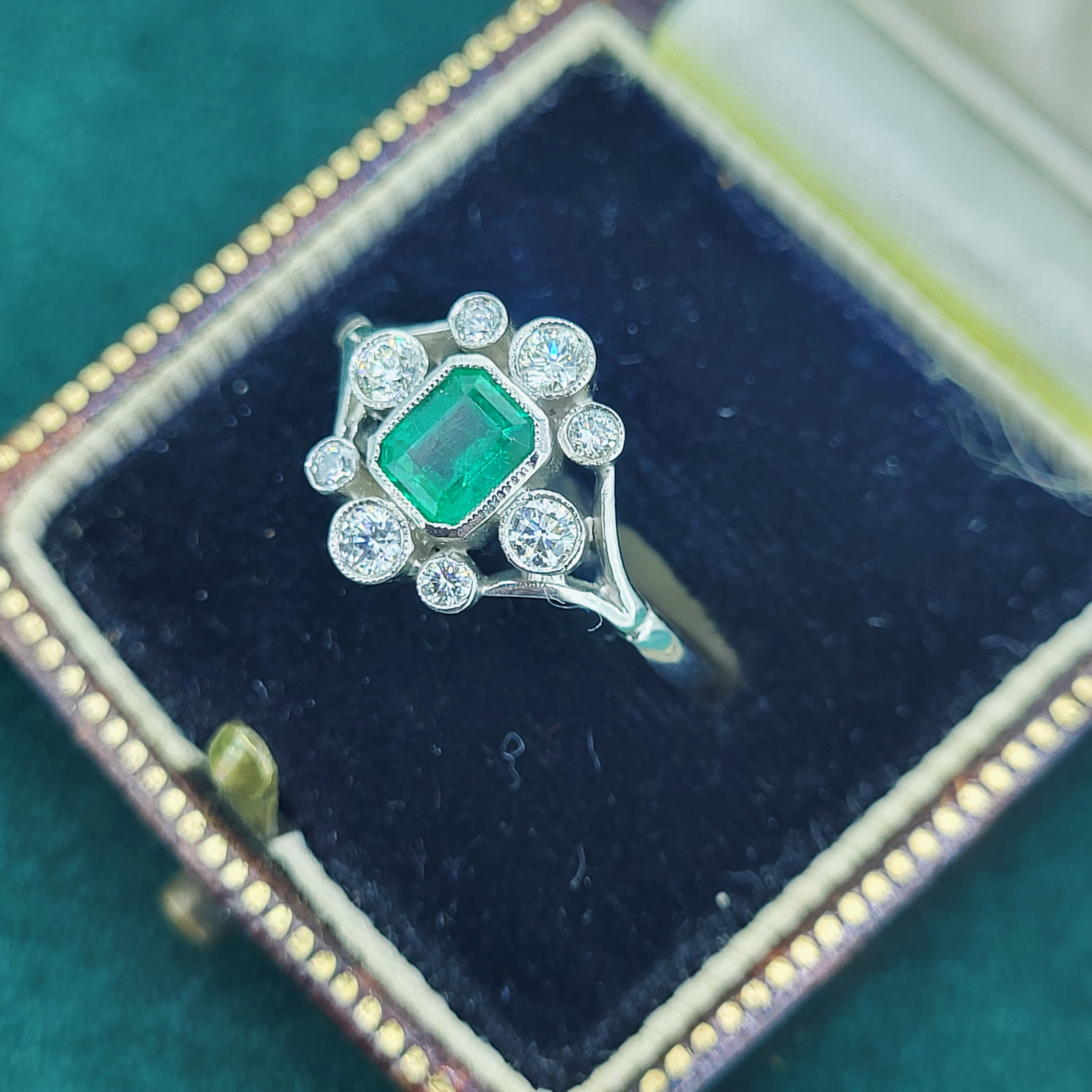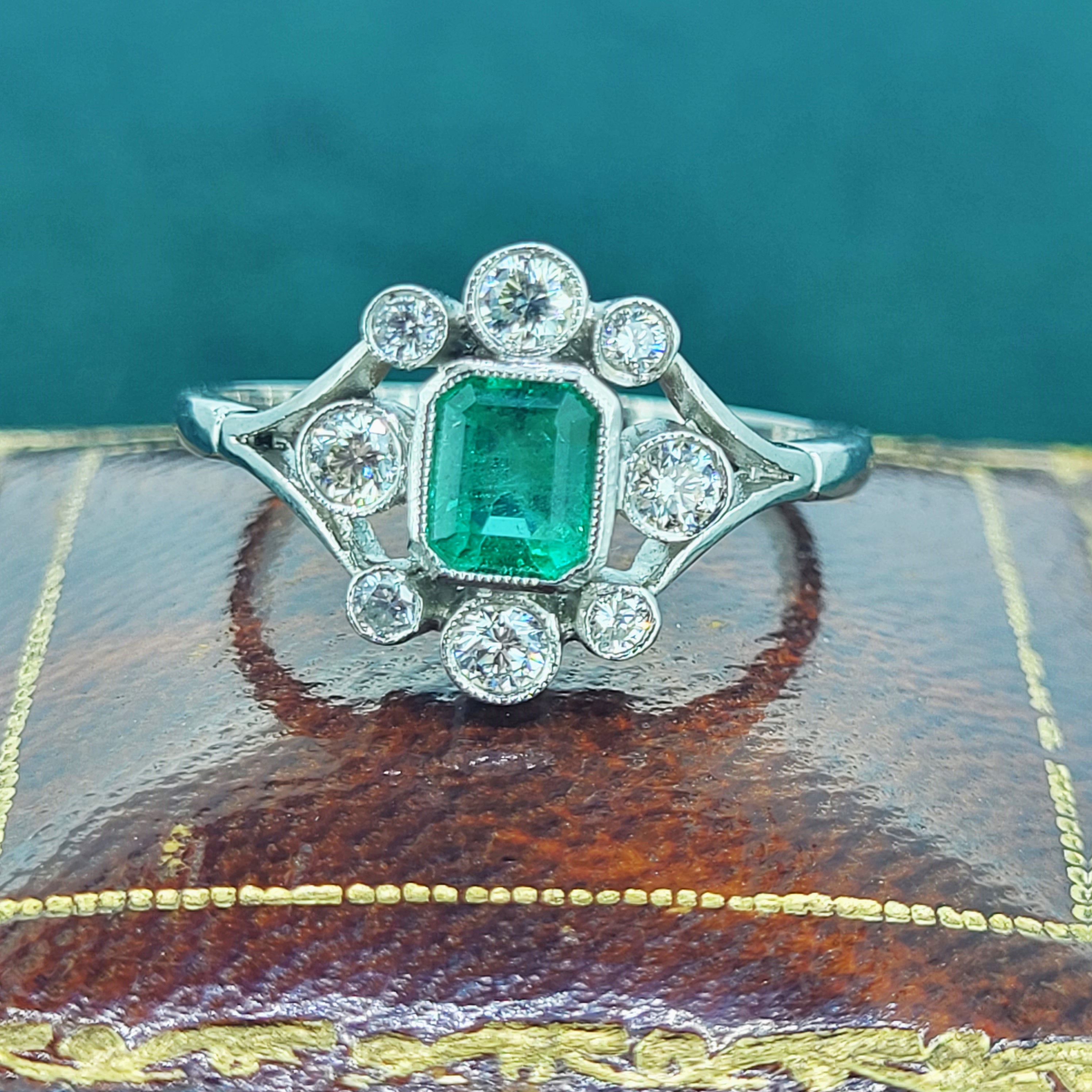 A beautiful Antique Emerald and Diamond Ring crafted from Platinum.
