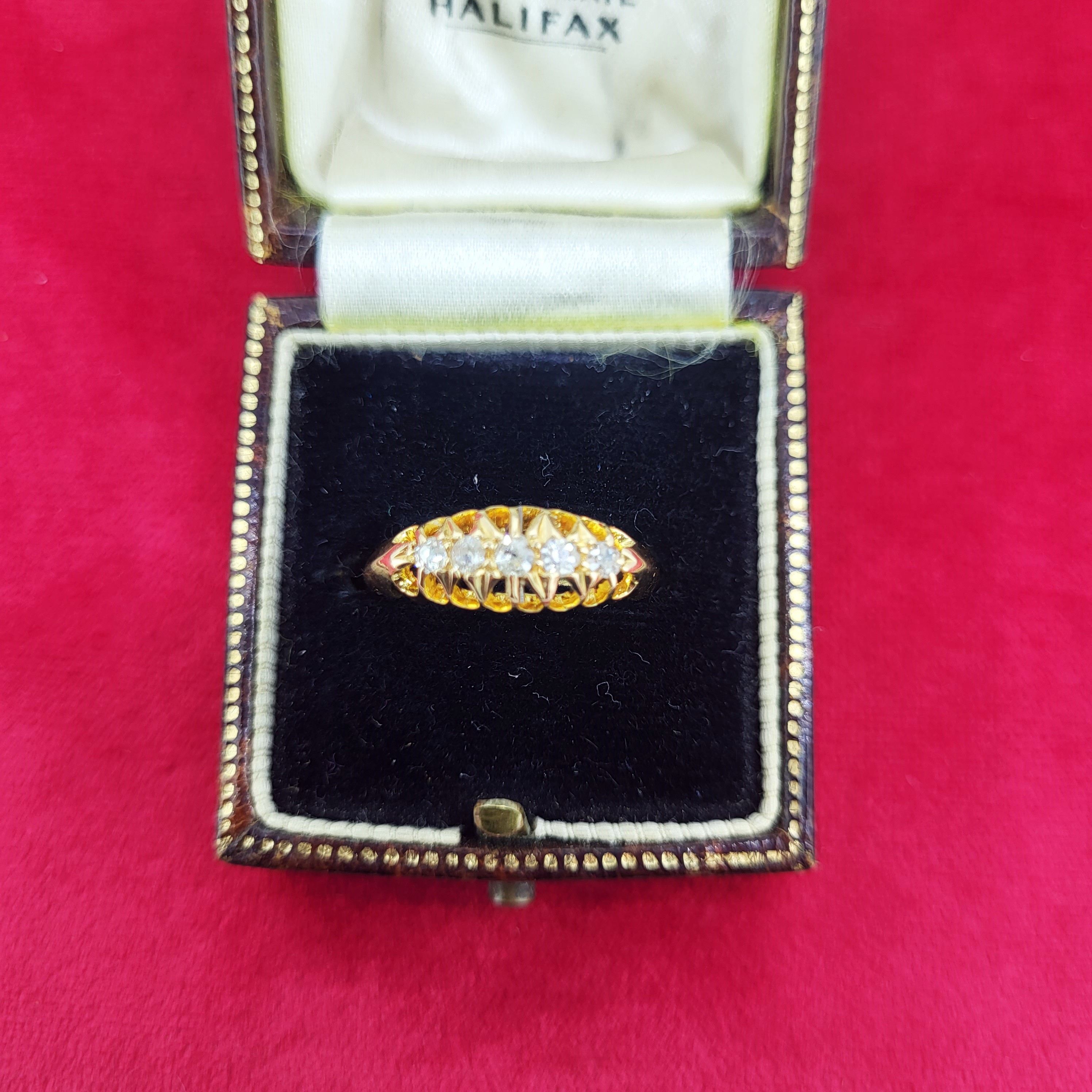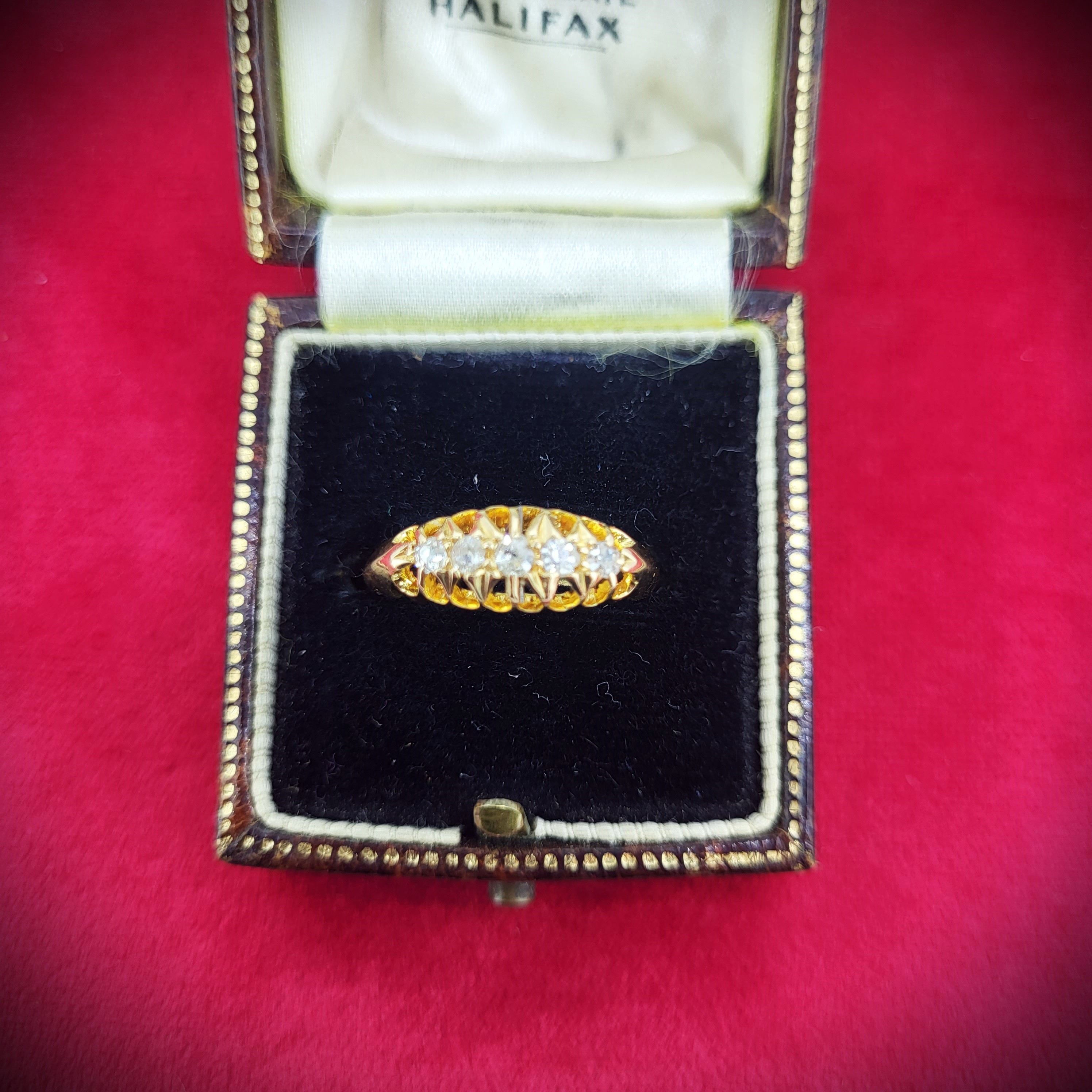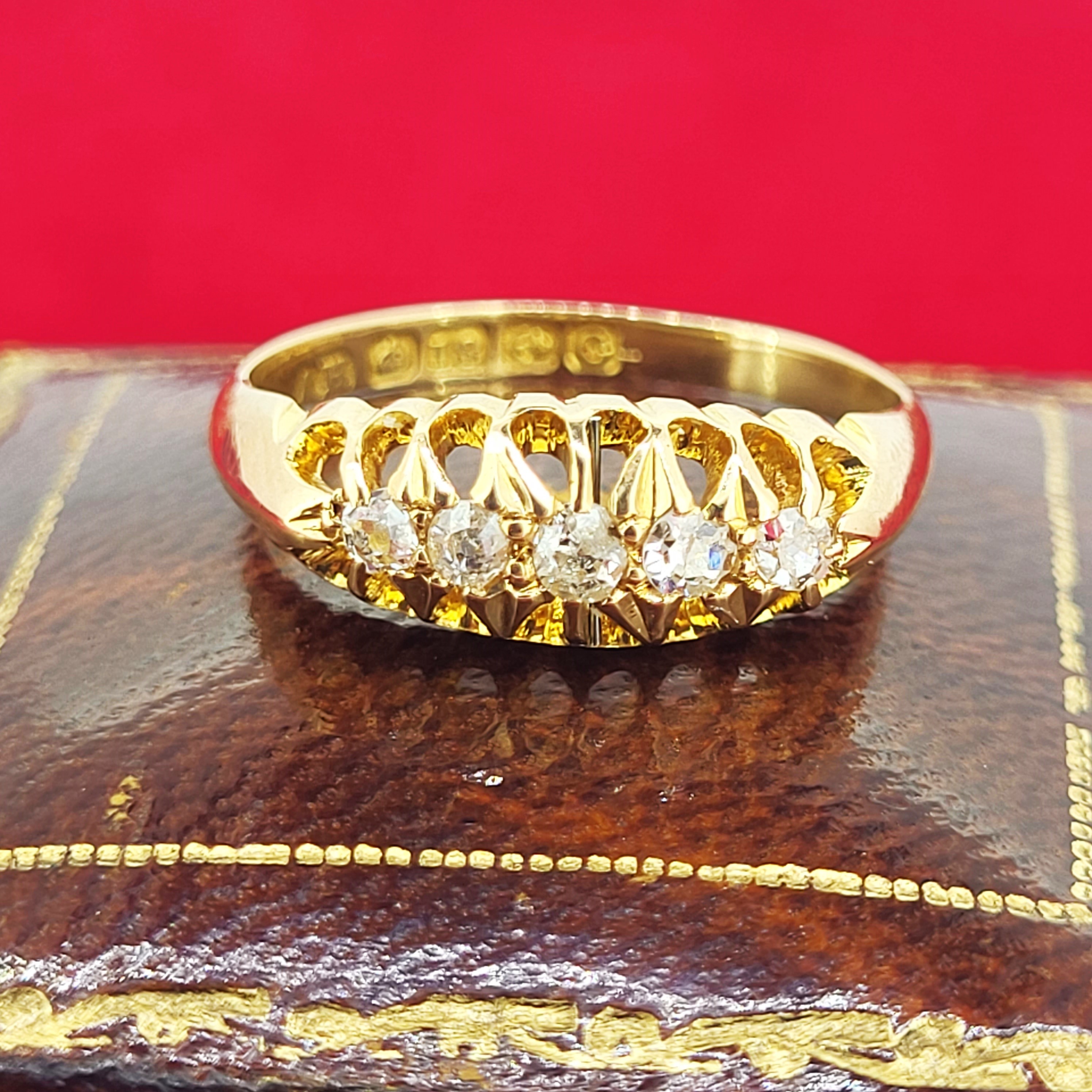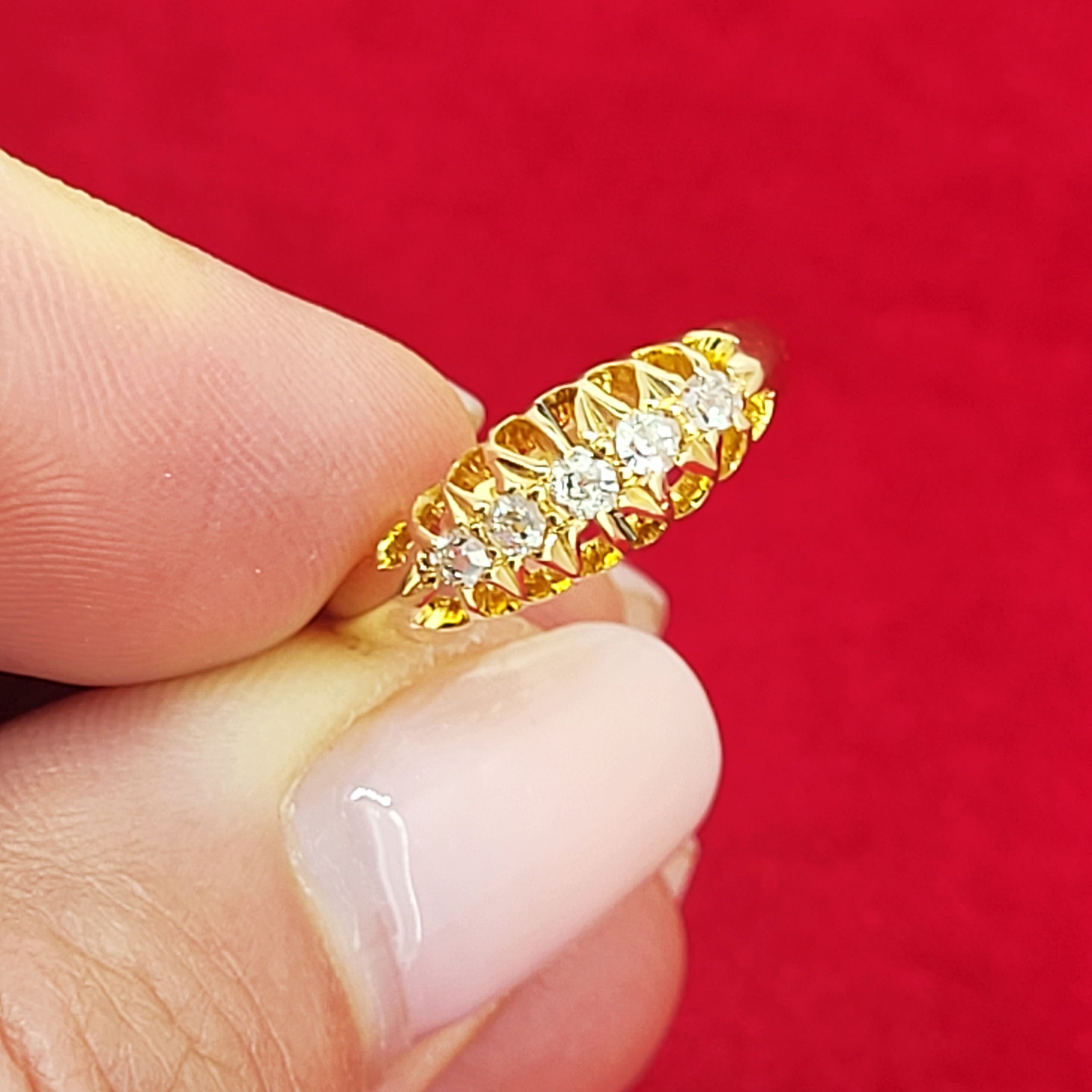 The ring is set with 5 Diamonds weighing approximately 0.15cts.
