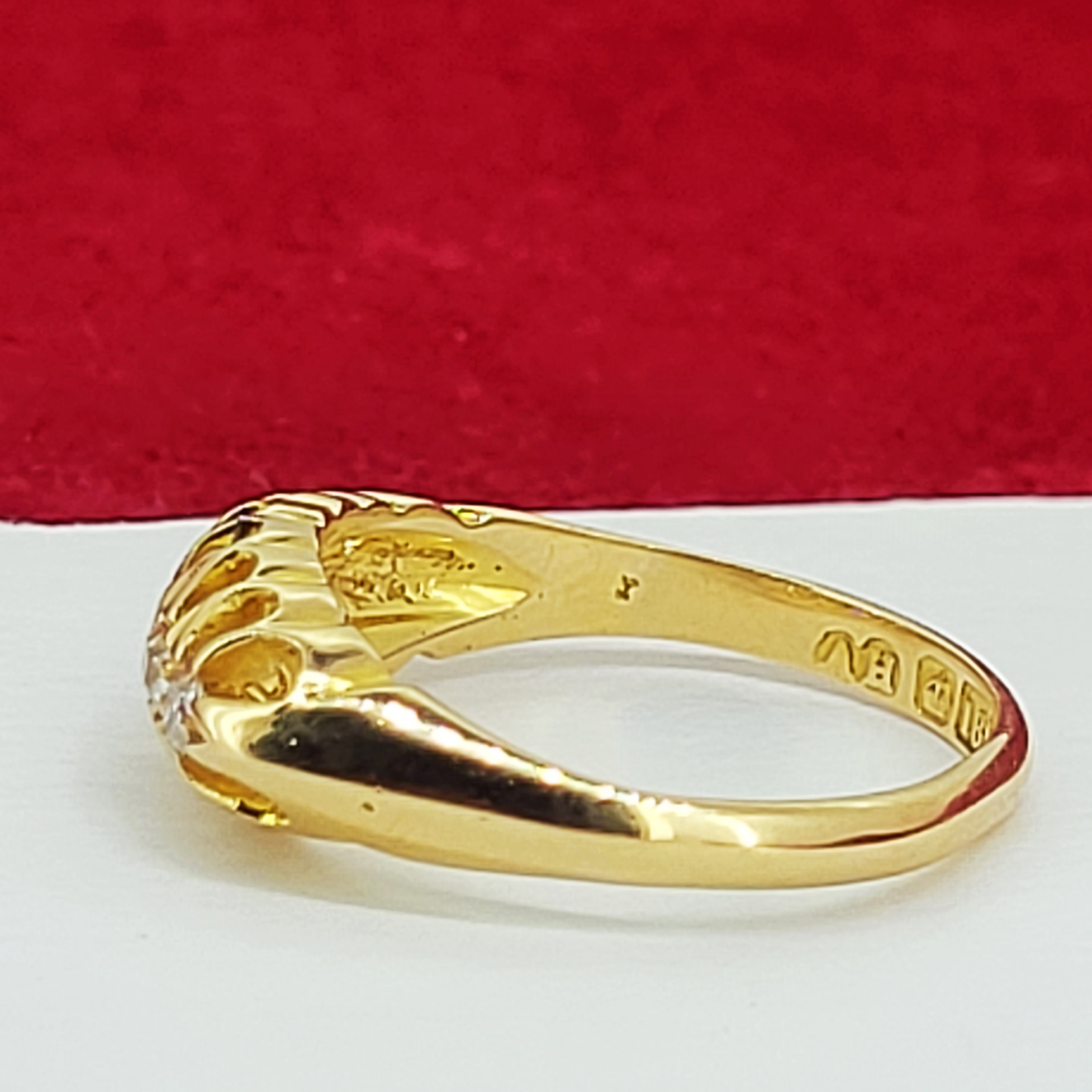 A lovely Antique Diamond Boat Ring crafted from 18ct Yellow Gold.