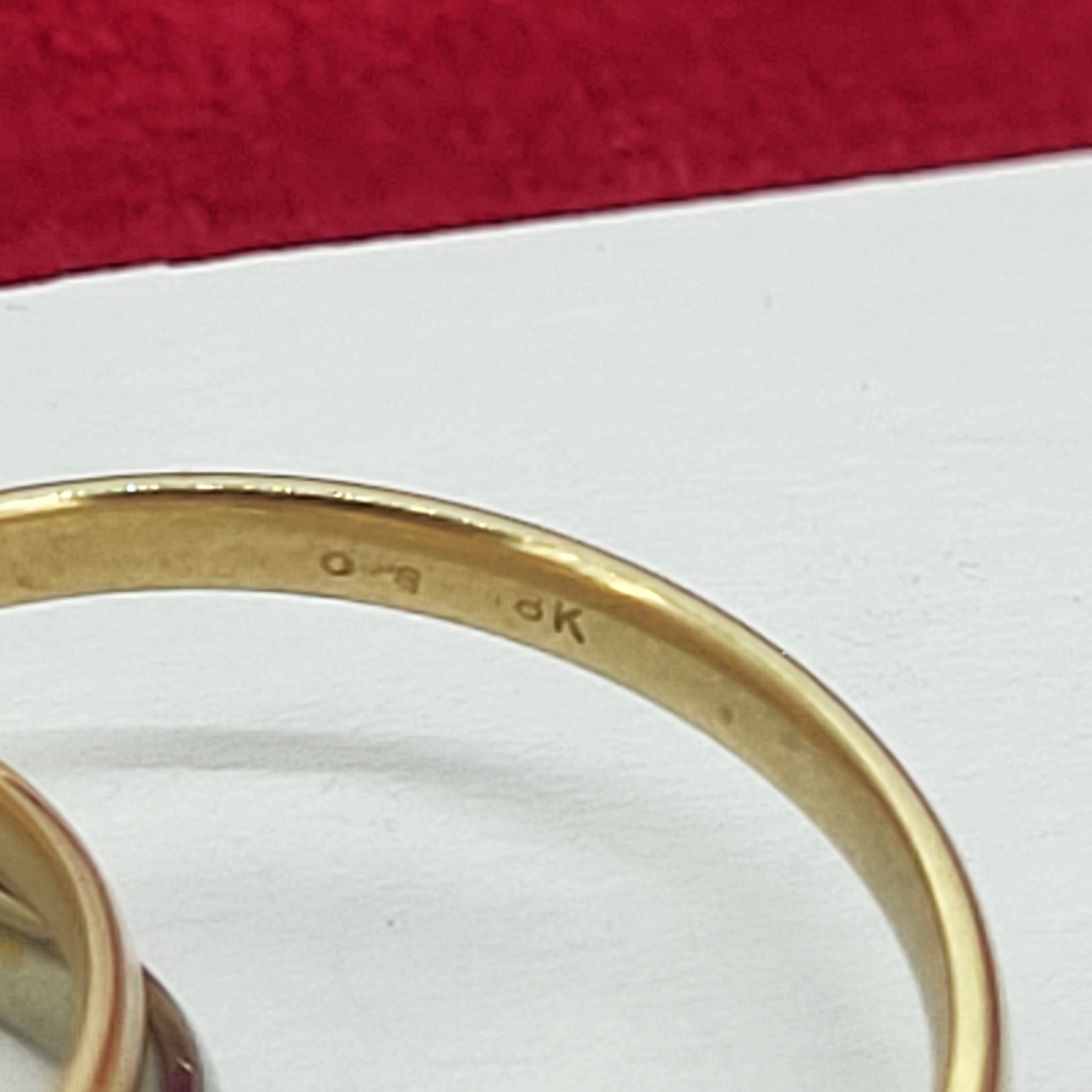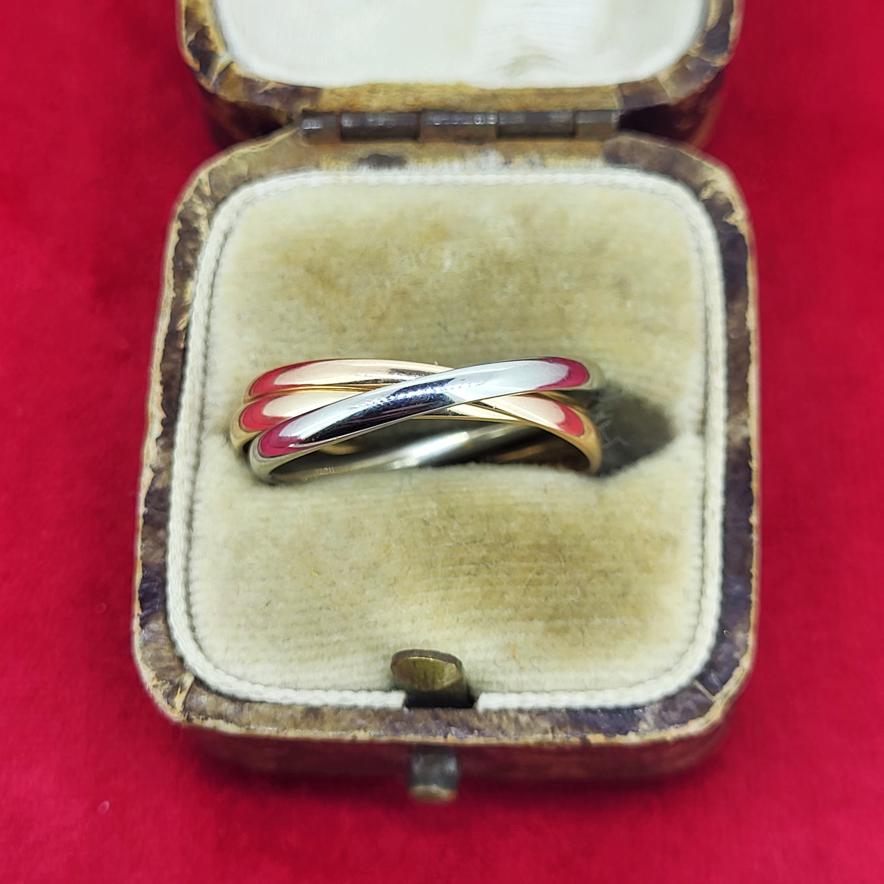 A lovely Three Colour Russian Wedding Ring crafted from 18ct Gold.