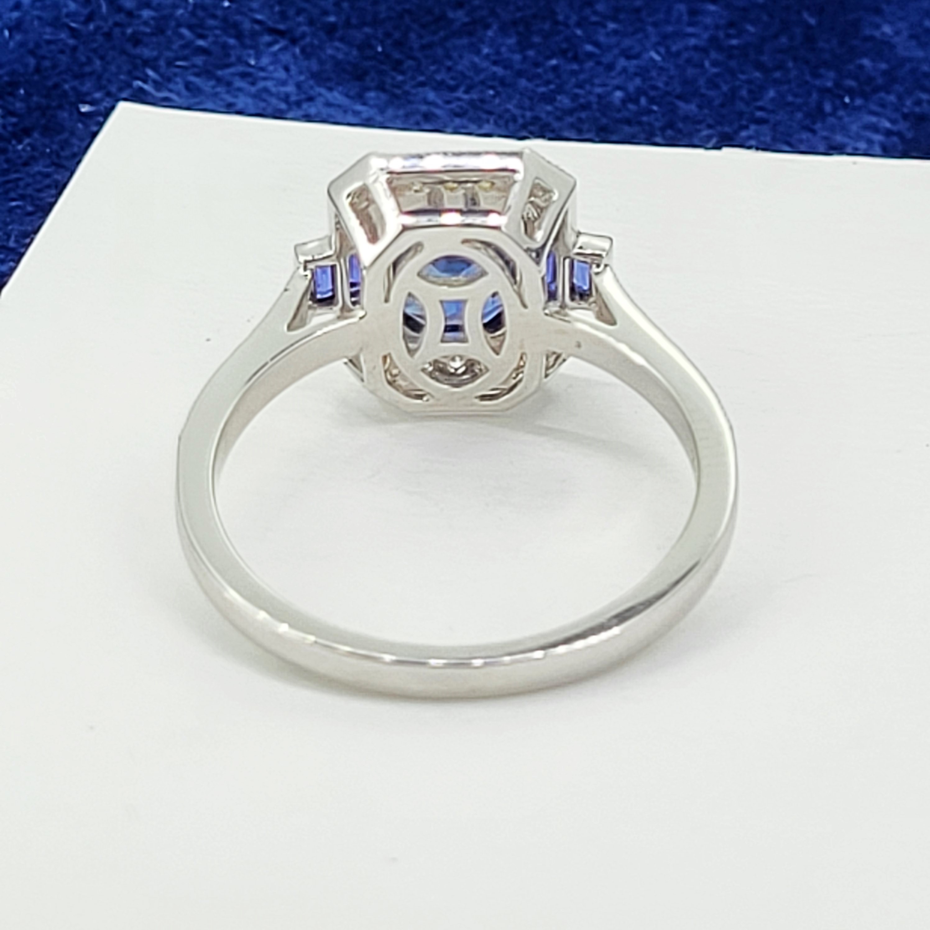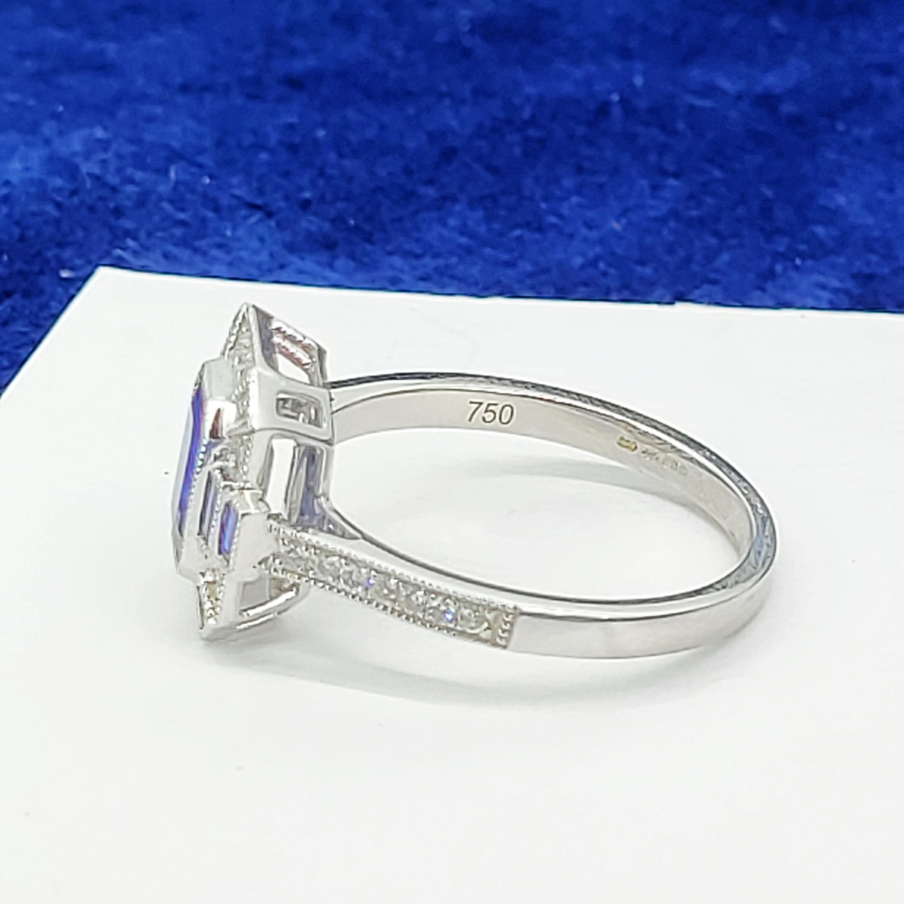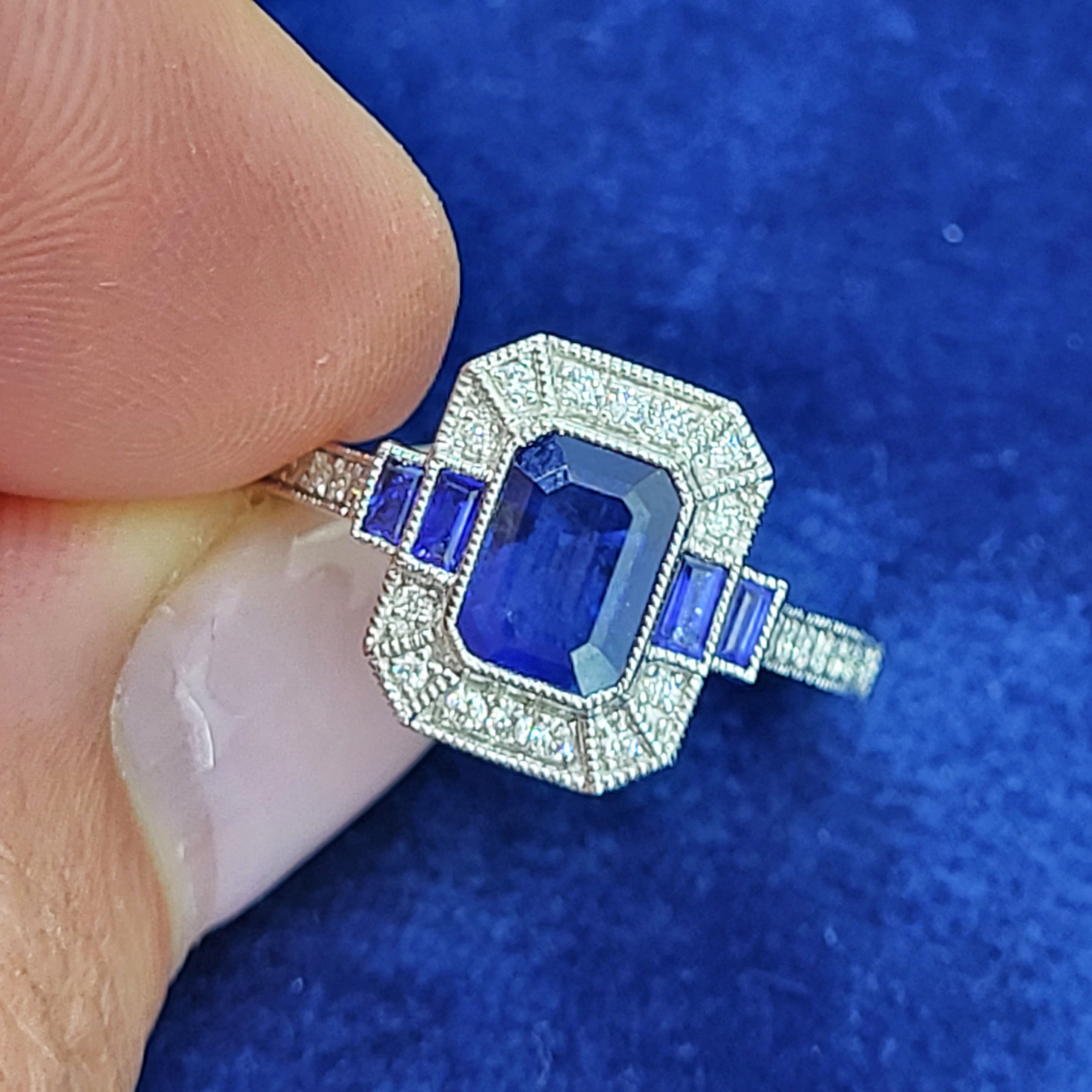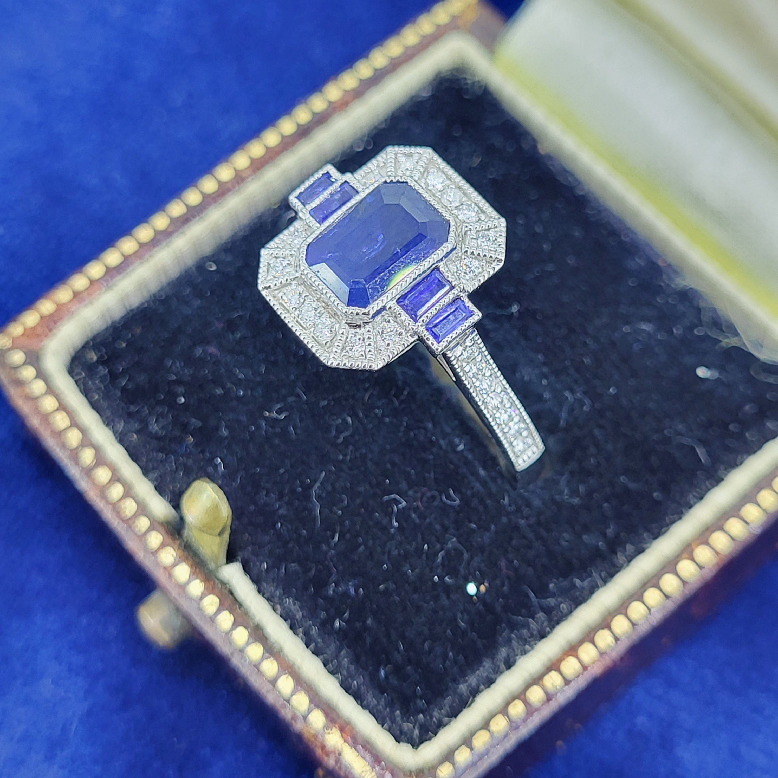 A striking Sapphire and Diamond Art Deco Ring crafted from 18ct White Gold.