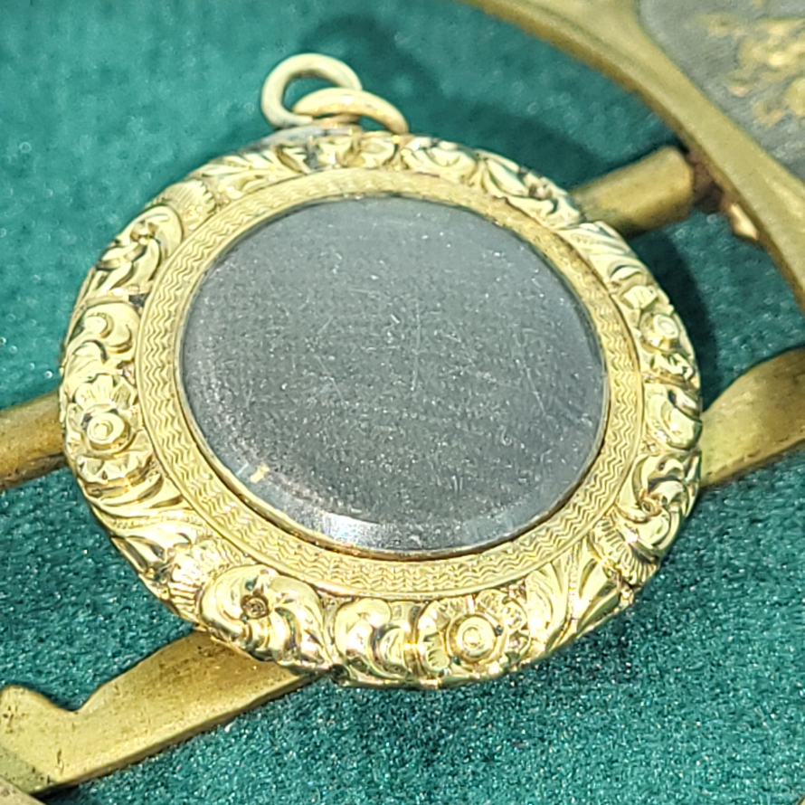 It is beautifully preserved with a hair locked pendant reverse (empty). The outer edge of the pendant and bail is made from pinchbeck.