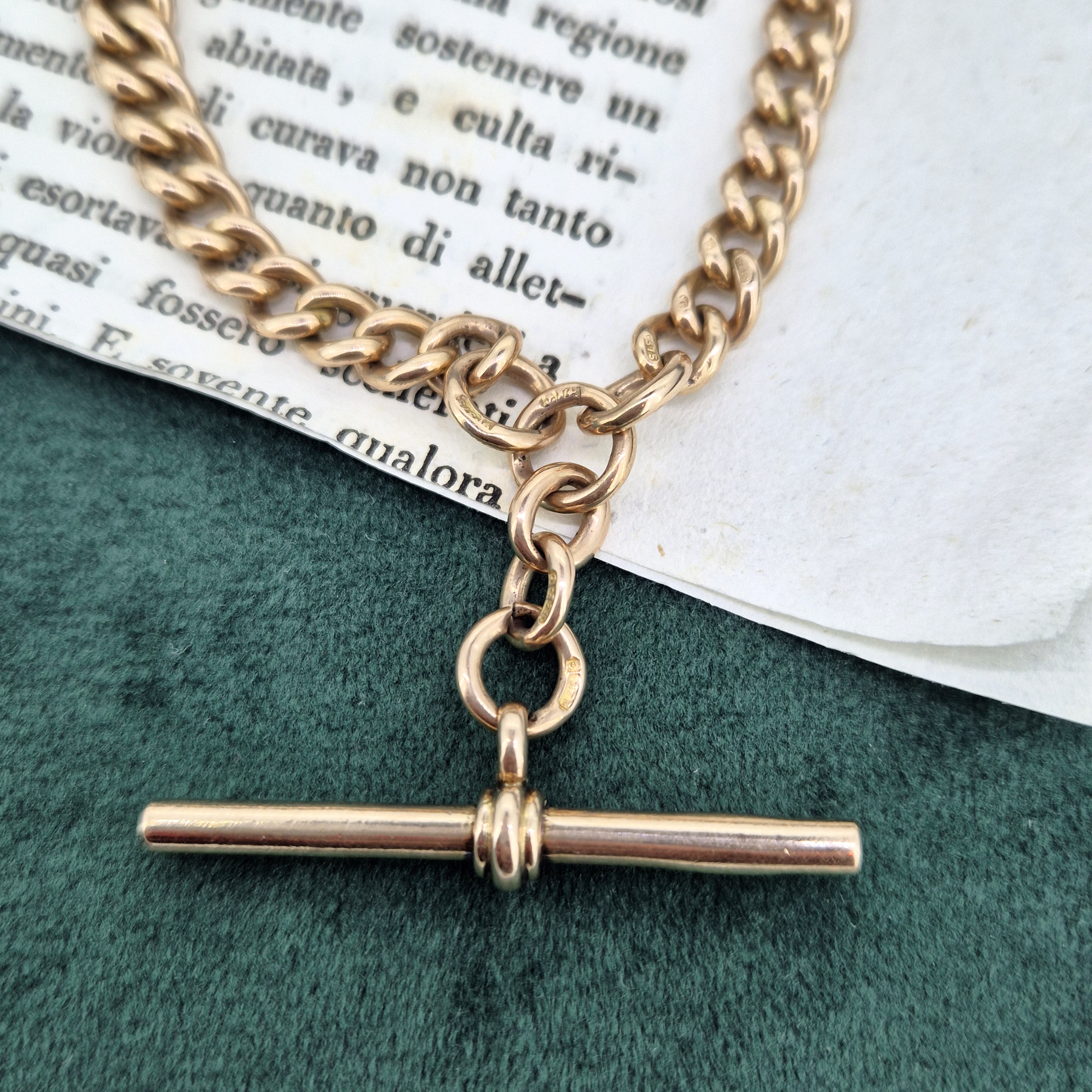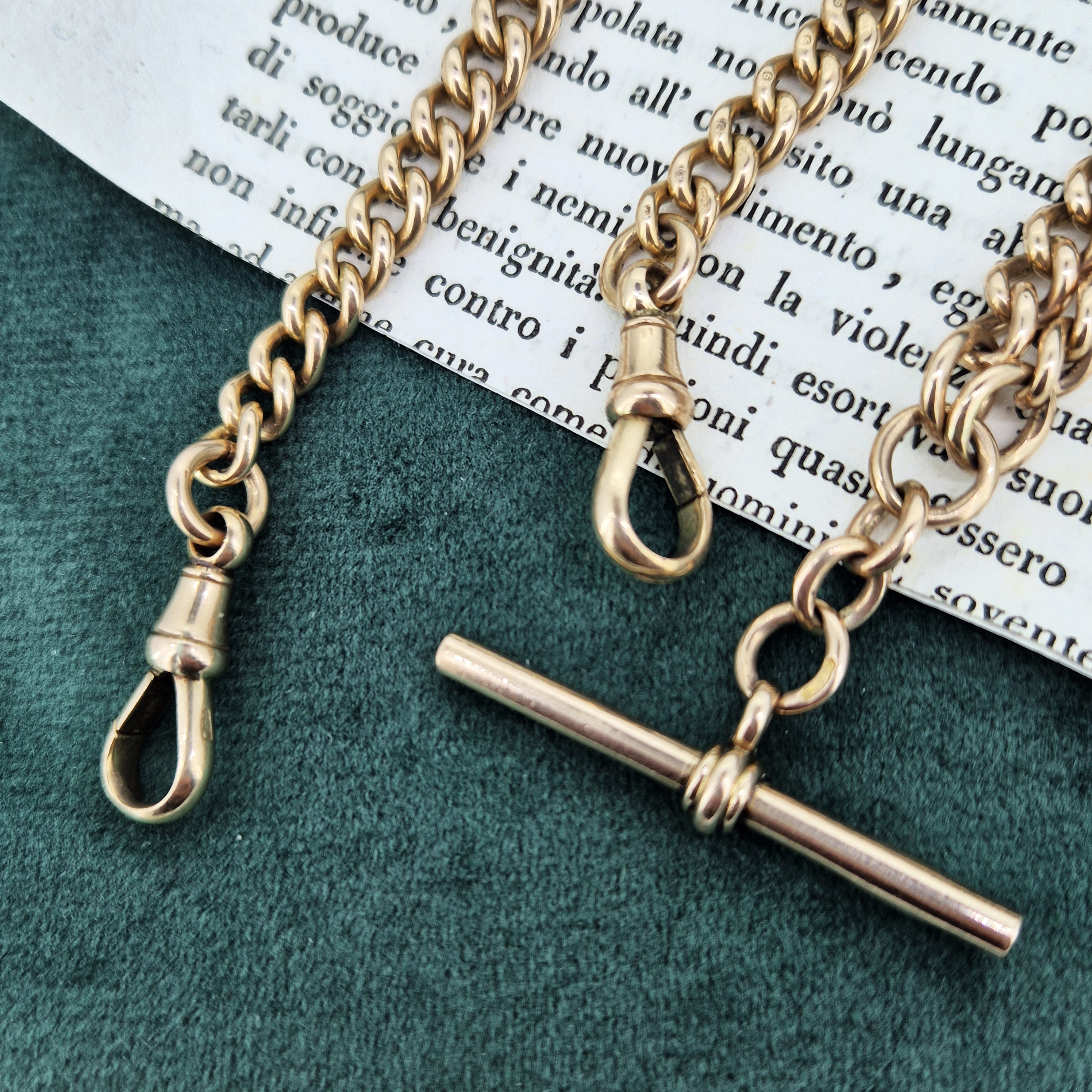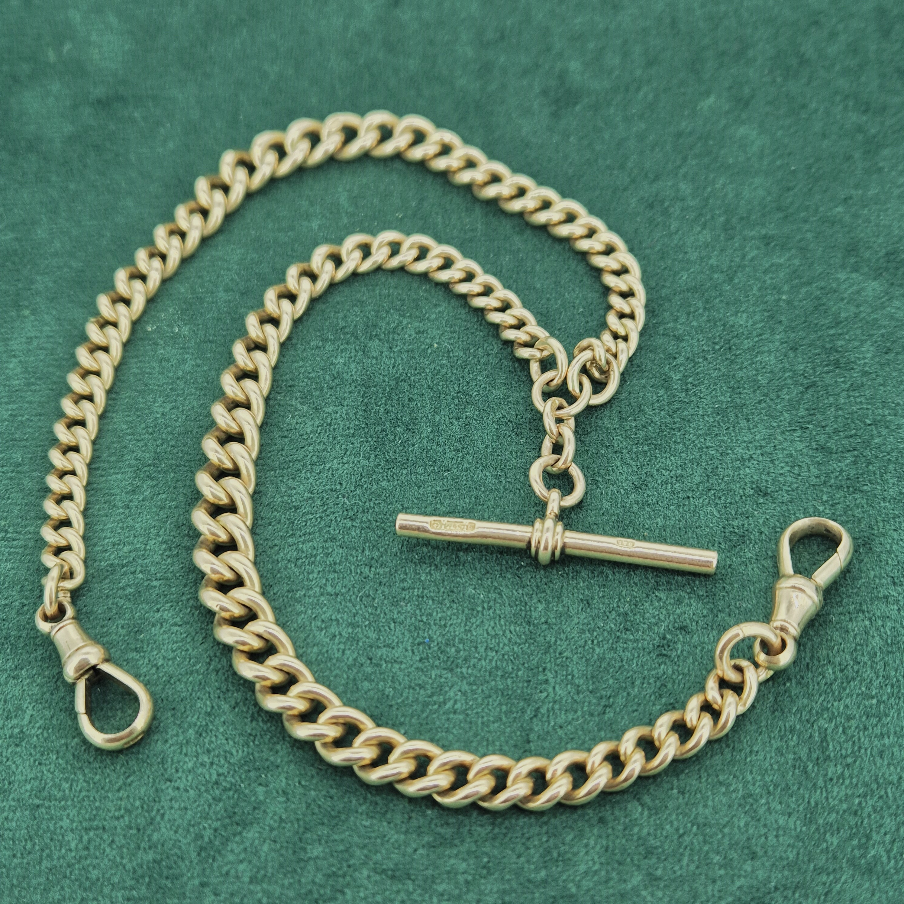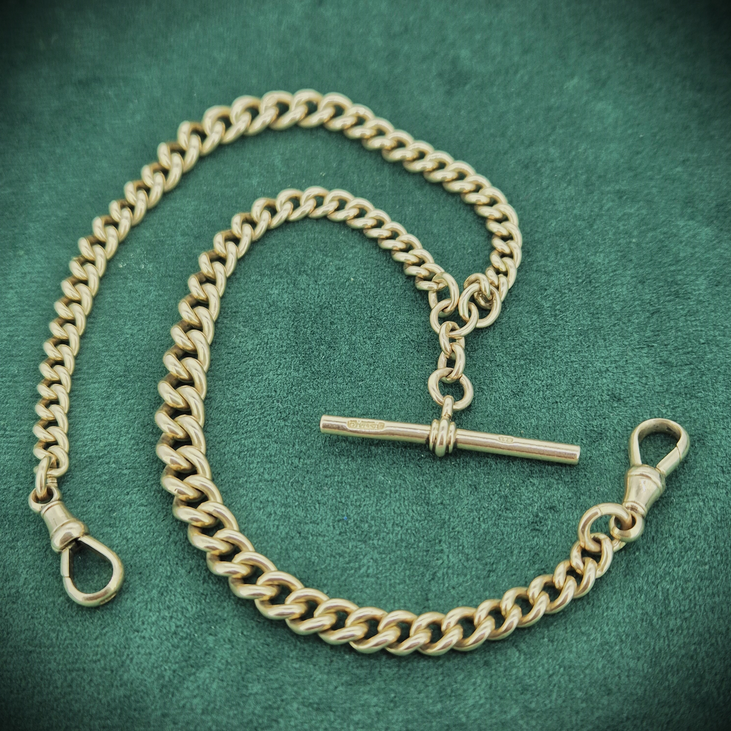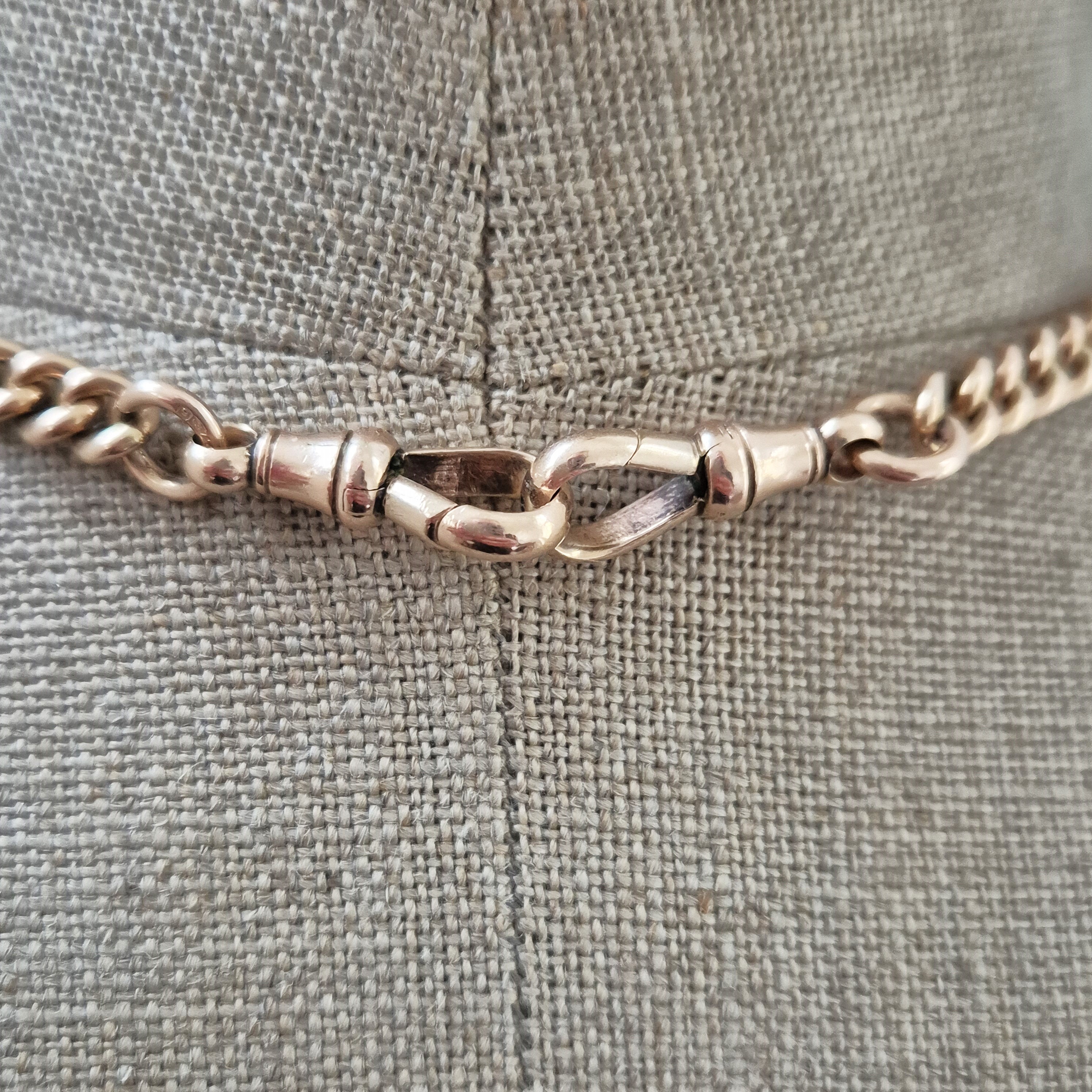 Weighing 55.6 grams, this Albert is super heavy and feels wonderfully luxurious. The links are secured by a Swivel at each end, so you can be rest assured the chain is secure. These Swivels are also stamped. It measures 16 inches in length.