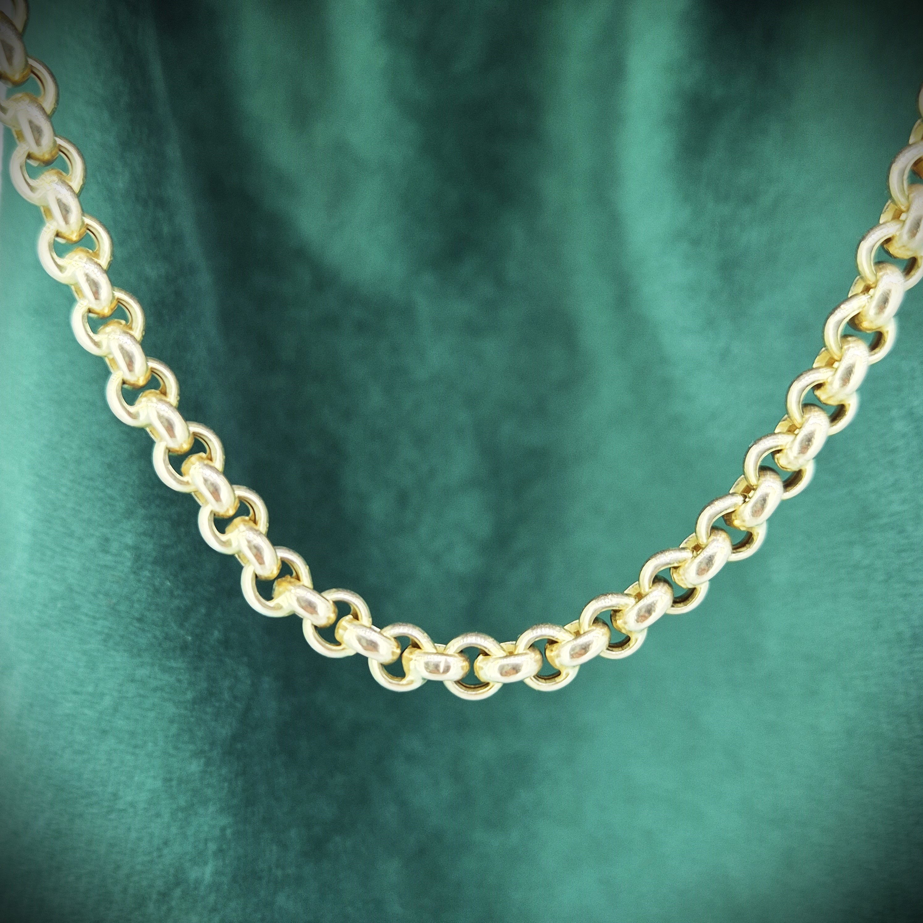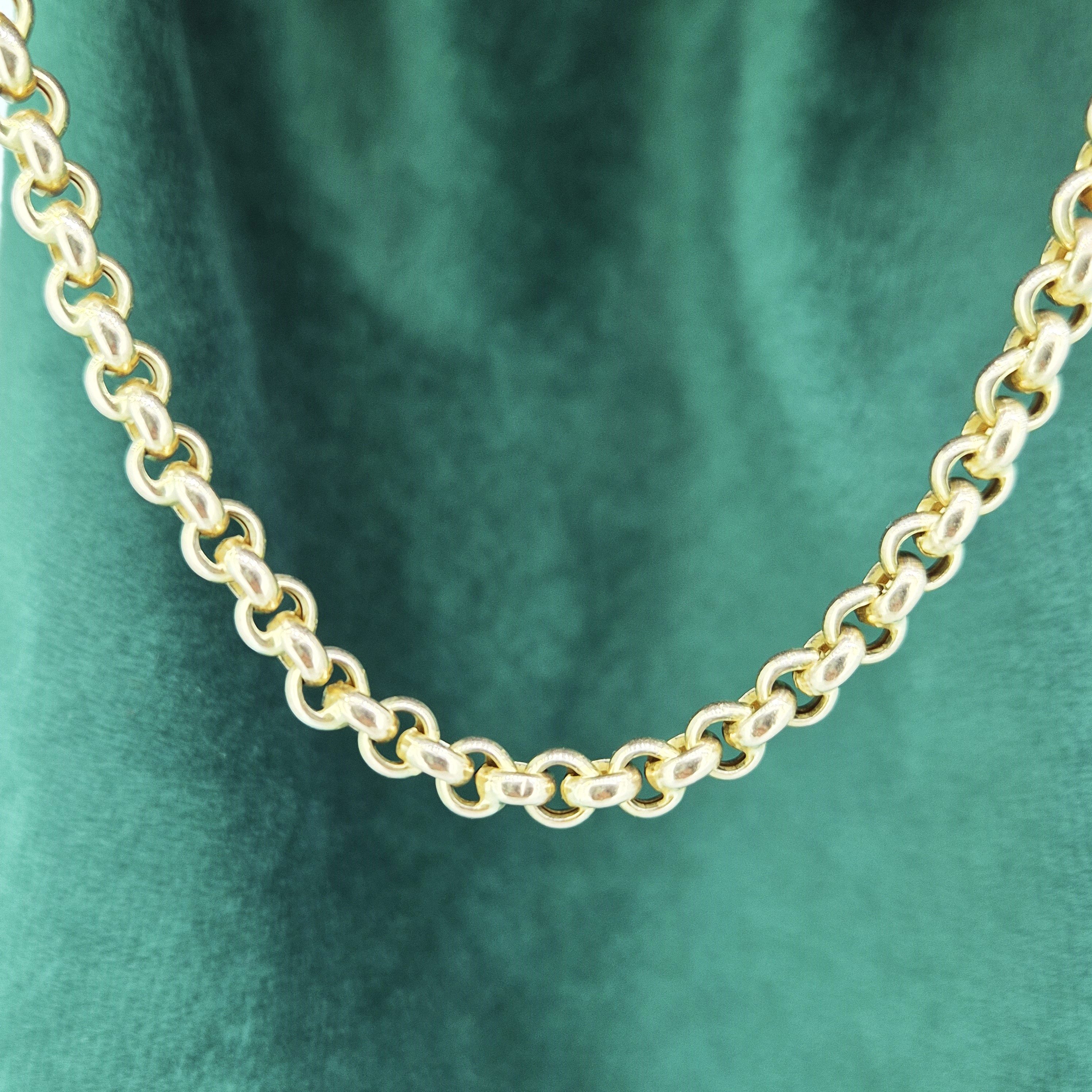 The circular links measure 4.5mm in width and are all uniformed. The necklace can be worn as it is, or it can have pendants attached. Measuring 28 inches in length, this Belcher is super long and can also be layered up with other necklaces.