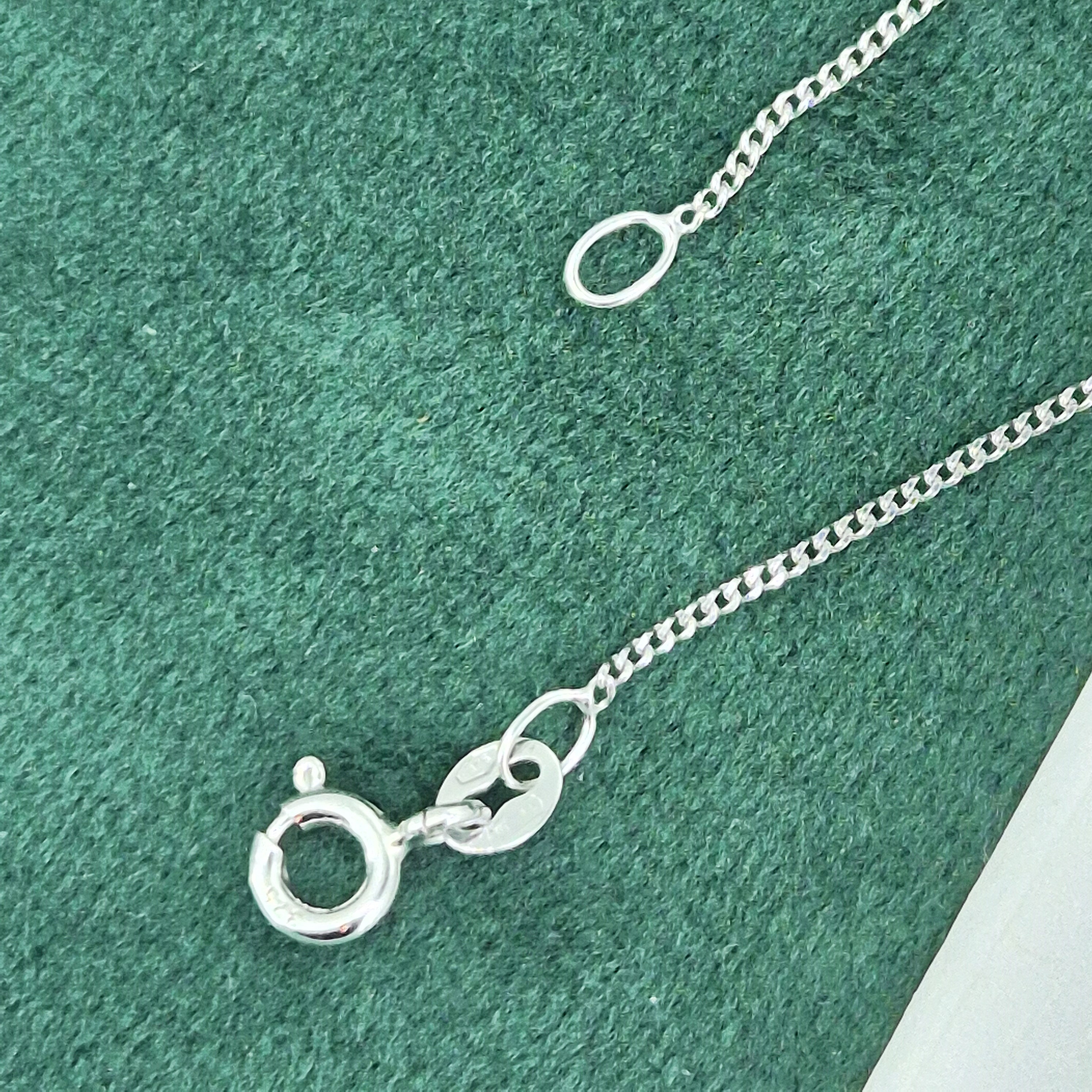 It is presented here on an 18ct White Gold Curb Chain measuring 18 inches.