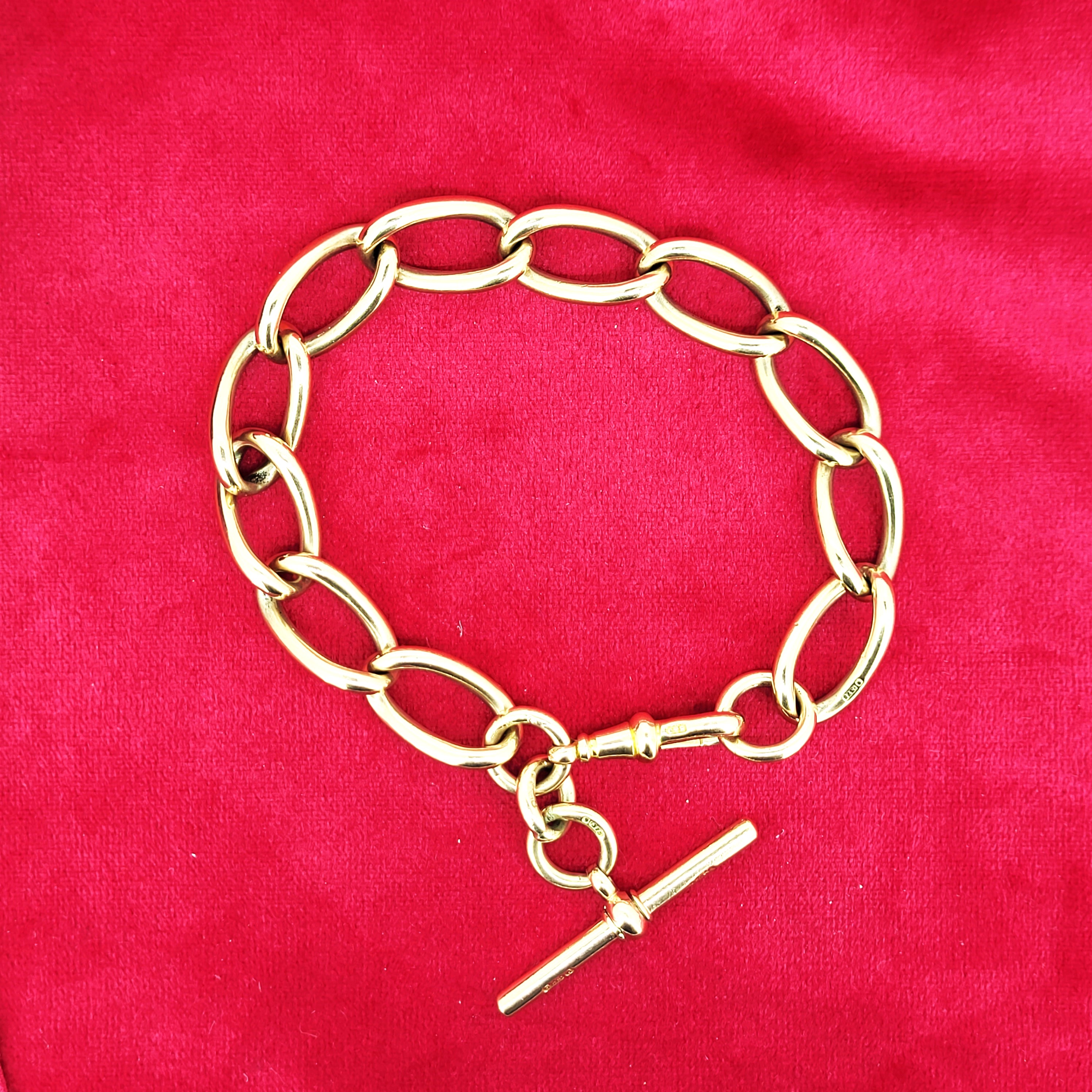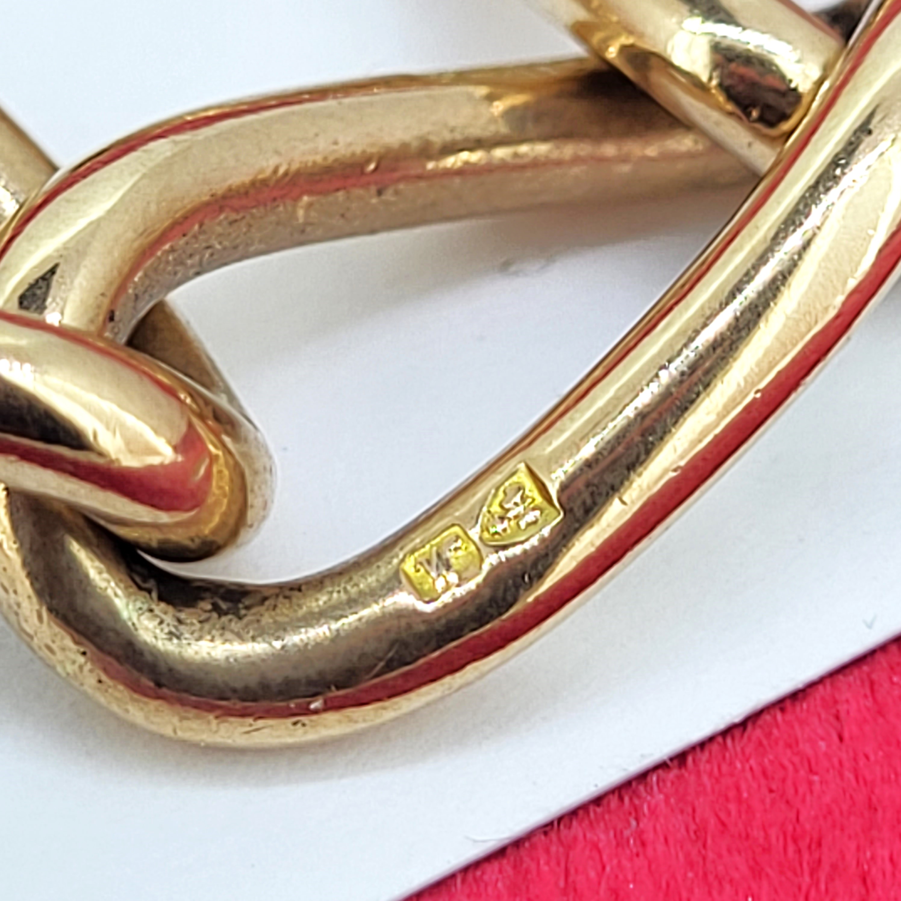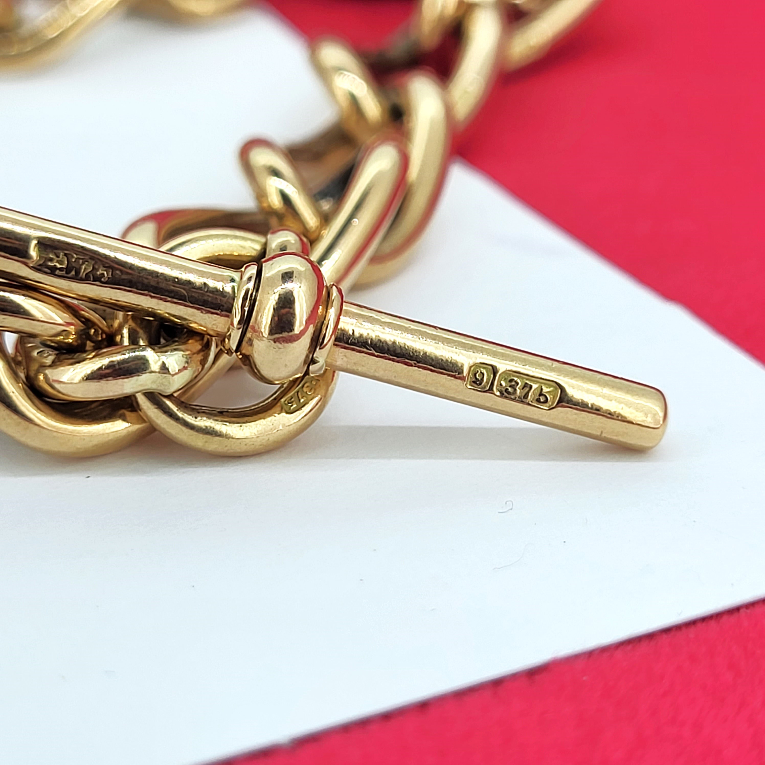 Gorgeous and weighty and crafted from a luscious, rich 9ct Yellow Gold.The bracelet features open traditional curb links with a slight twist that are all individually hallmarked. They measures 11mm in width and 20mm in length.