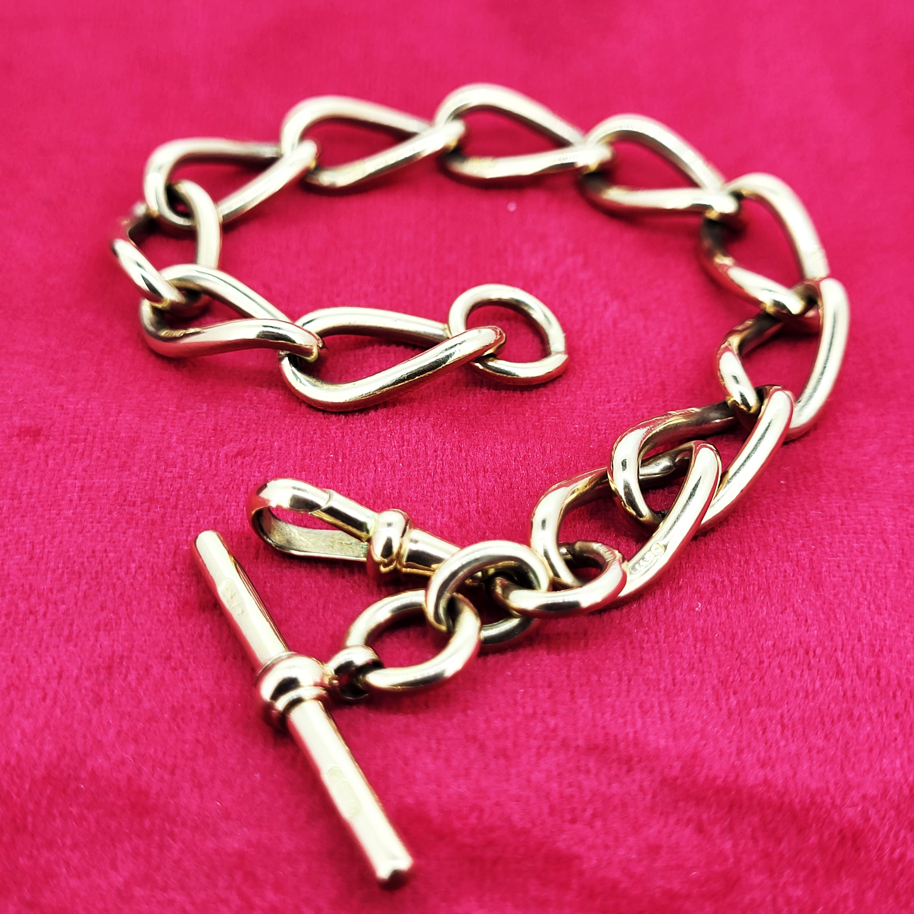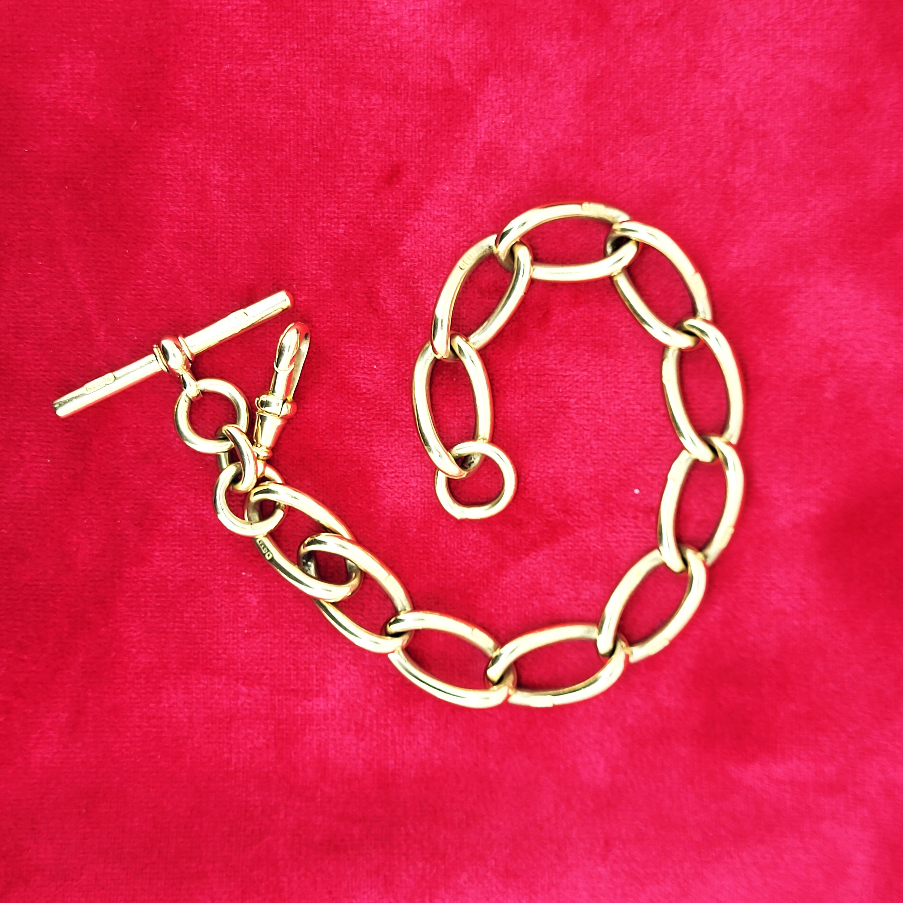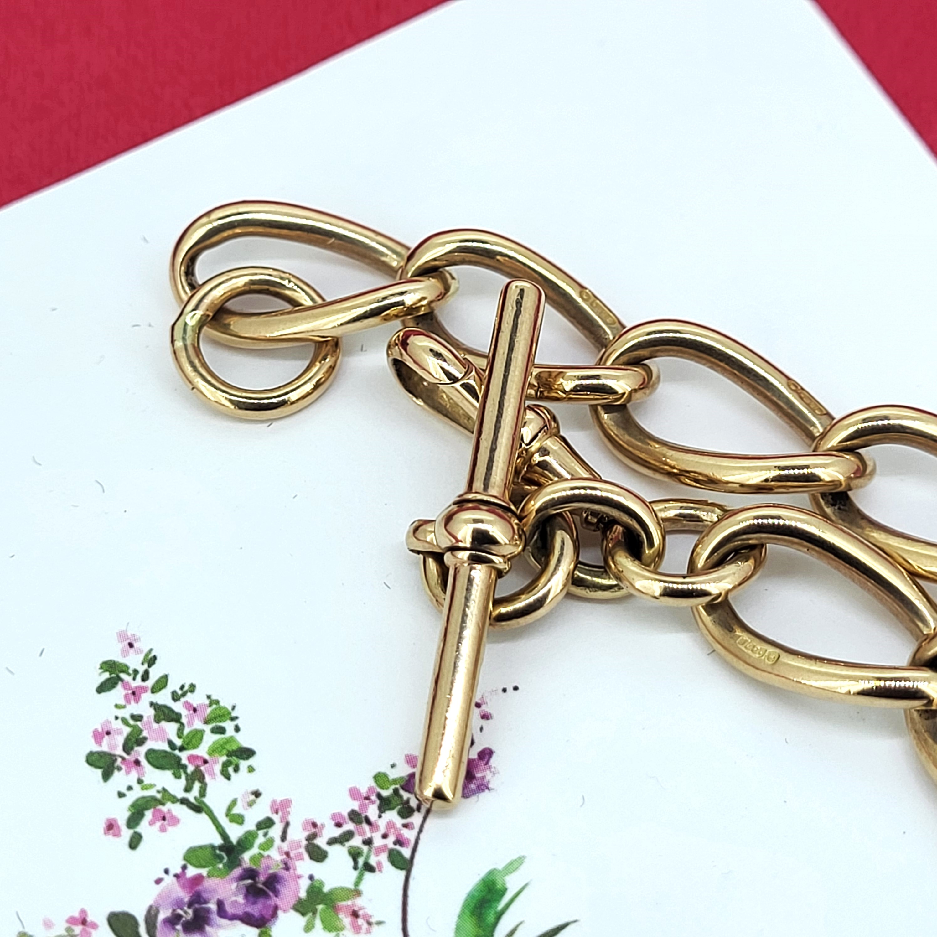 Gorgeous and weighty and crafted from a luscious, rich 9ct Yellow Gold.The bracelet features open traditional curb links with a slight twist that are all individually hallmarked. They measures 11mm in width and 20mm in length.