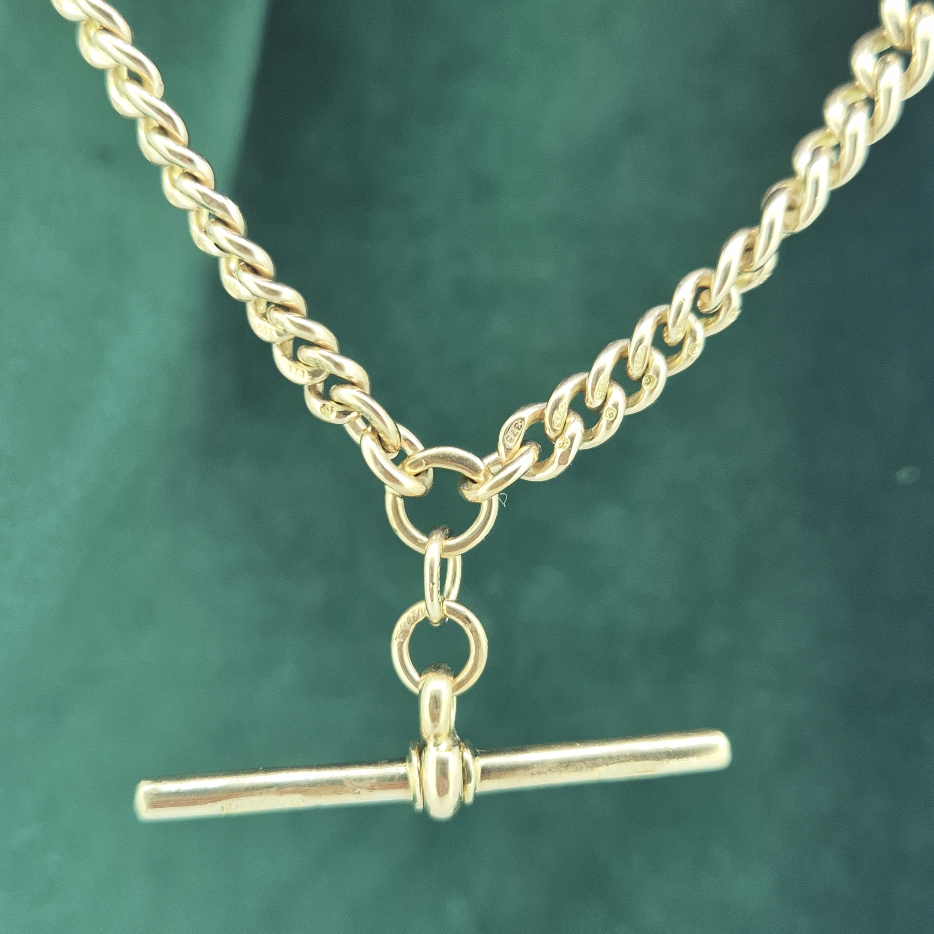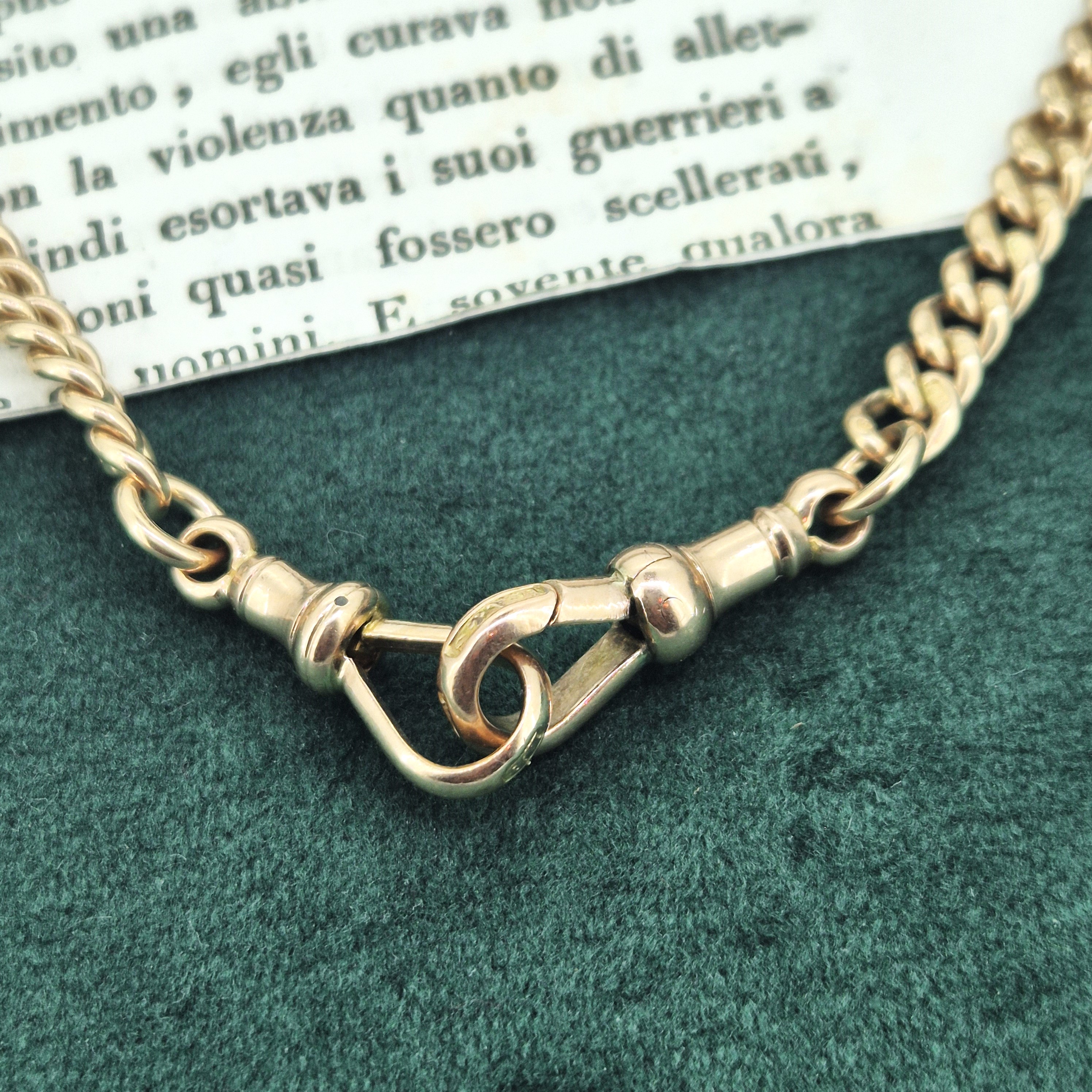 This Albert Chain is gorgeous and it's rare to find one in Yellow Gold. It weighs an impressive 46.3 grams and measures 16 inches.