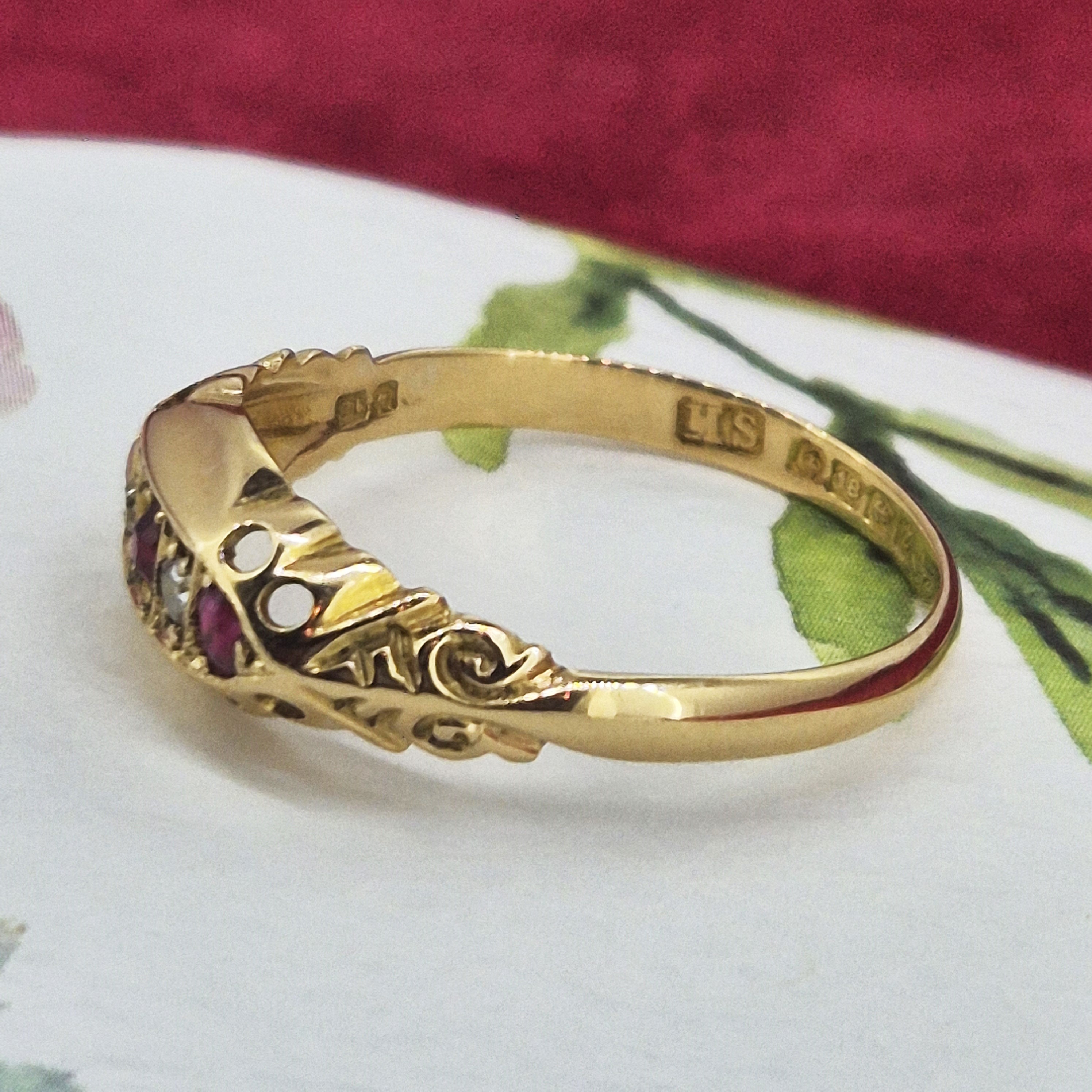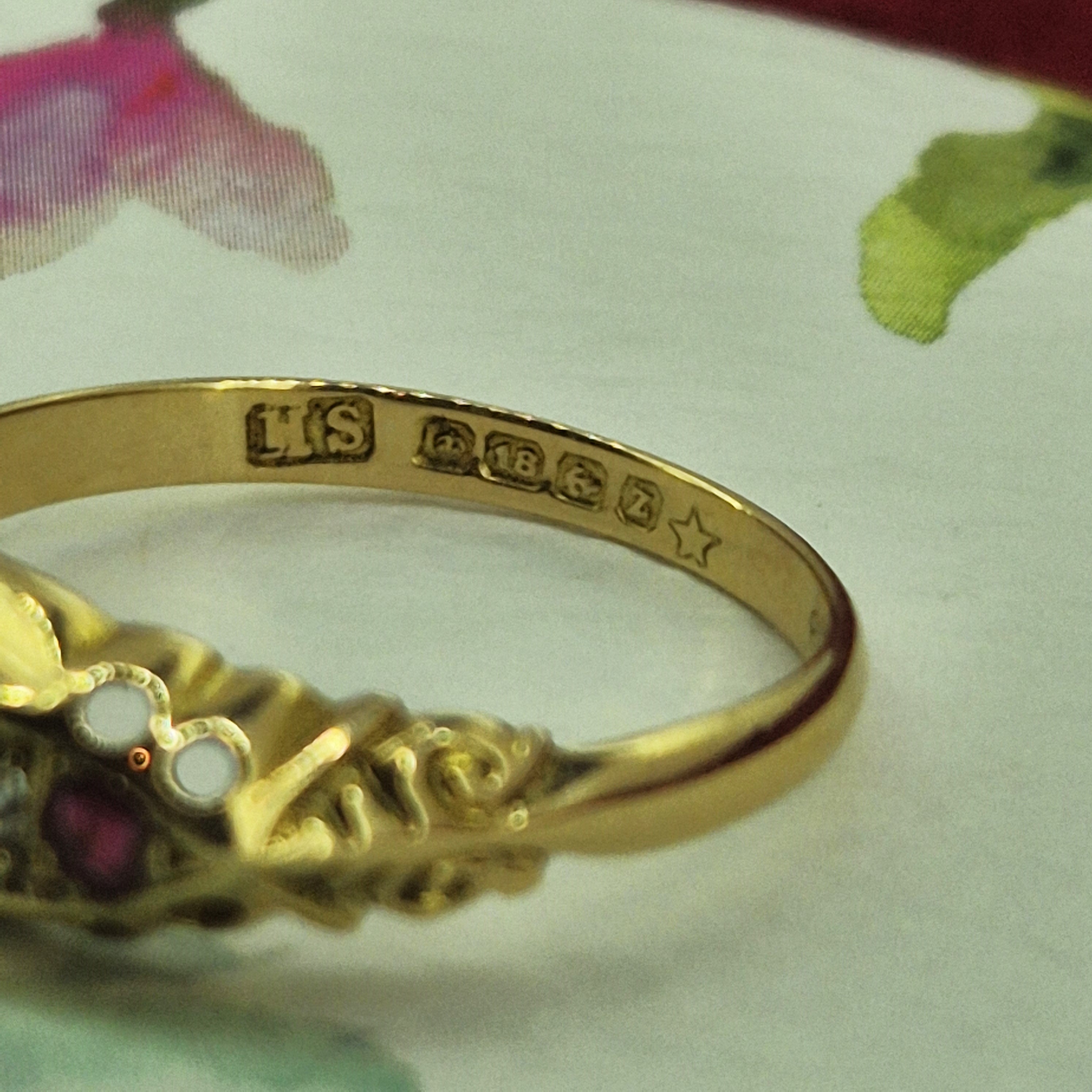 The ring was hallmarked in Birmingham in 1924 so it has just celebrated it's 100th birthday! It's in wonderful condition for its age and looks beautiful on the finger.