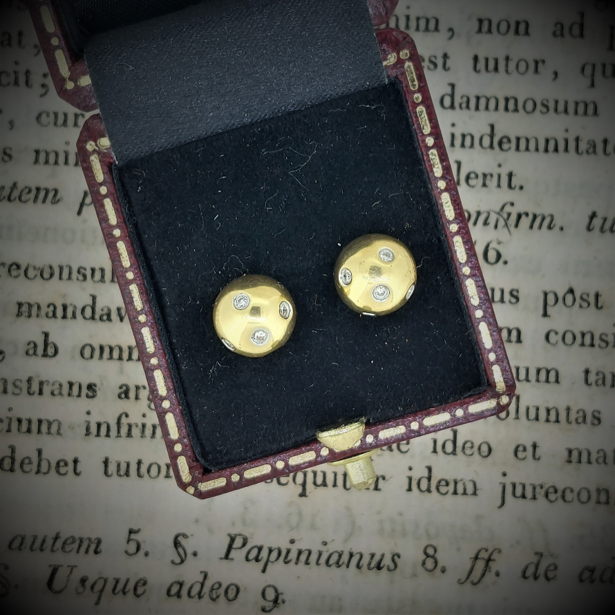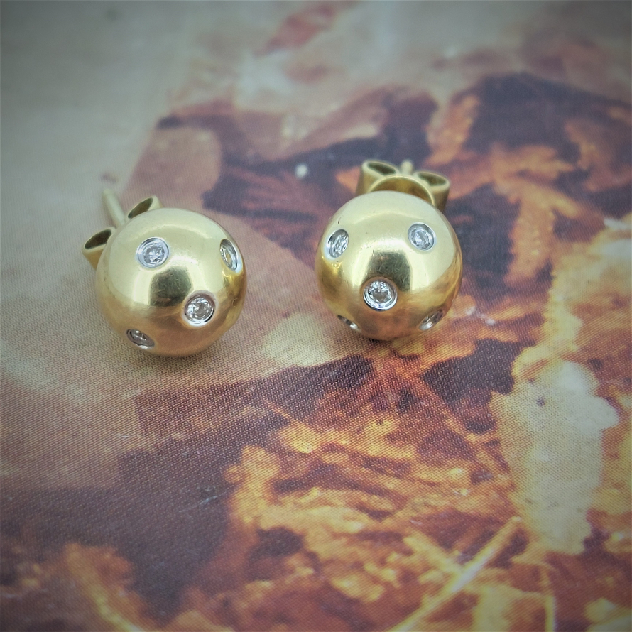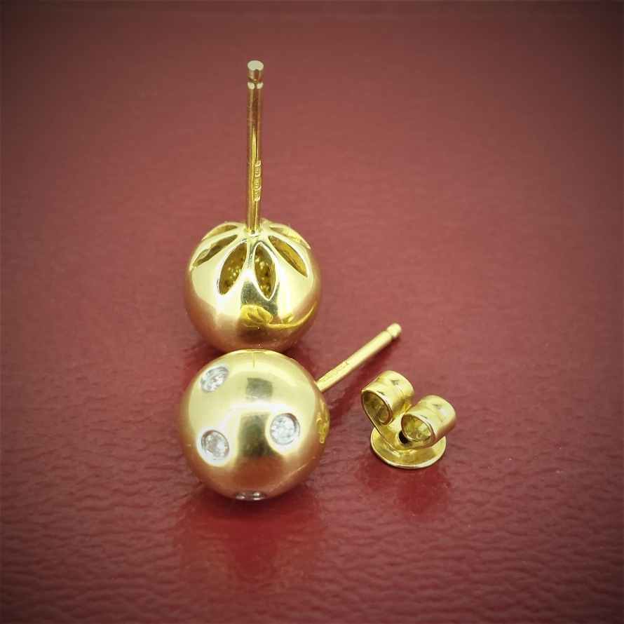 The classic ball stud in 18ct yellow gold. Set evenly with round brilliant cut diamonds weighing a total of 0.15ct. The everyday difference!