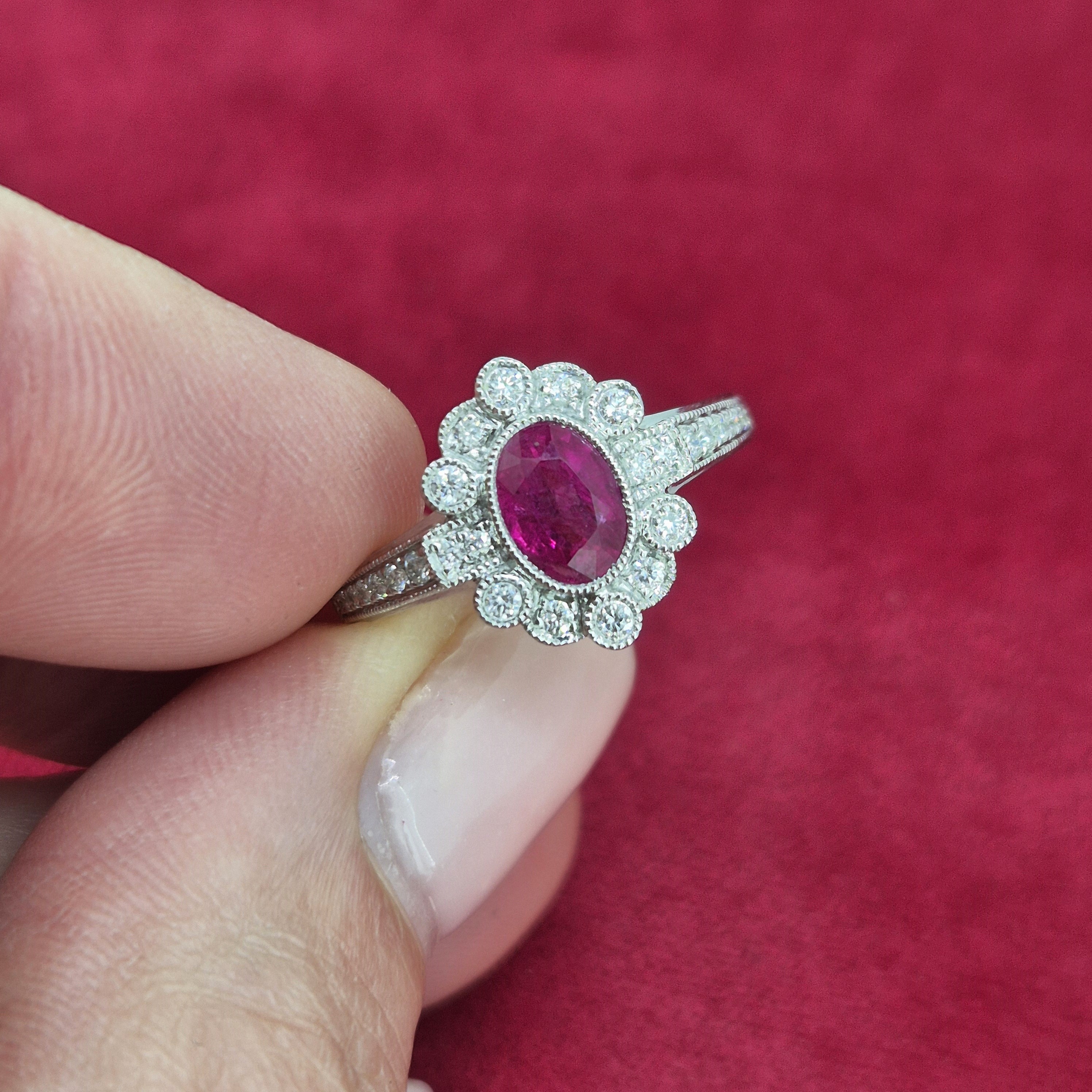 A stunning Ruby and Diamond Cluster crafted from 18ct White Gold.