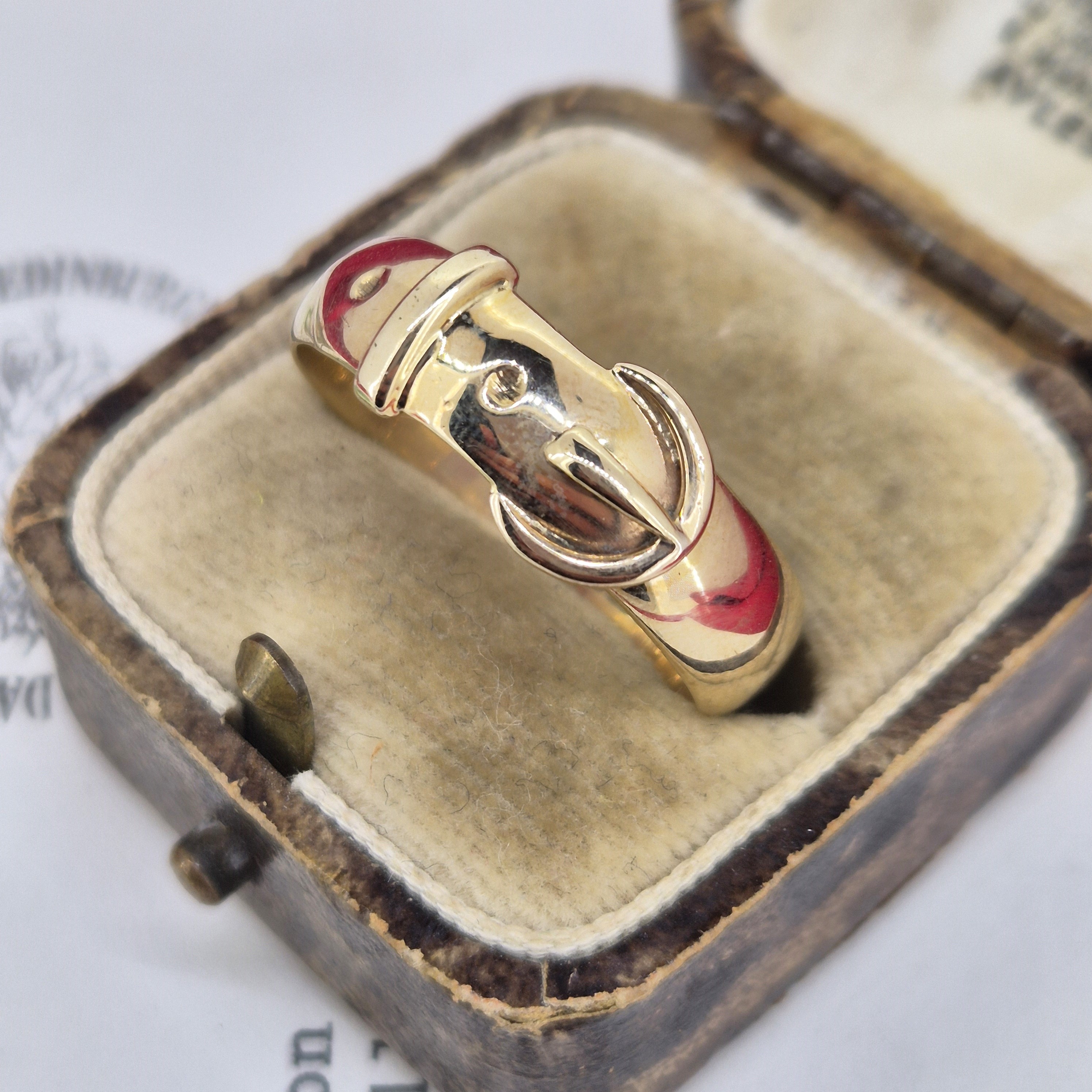 A lovely Buckle Ring crafted from 9ct Yellow Gold.