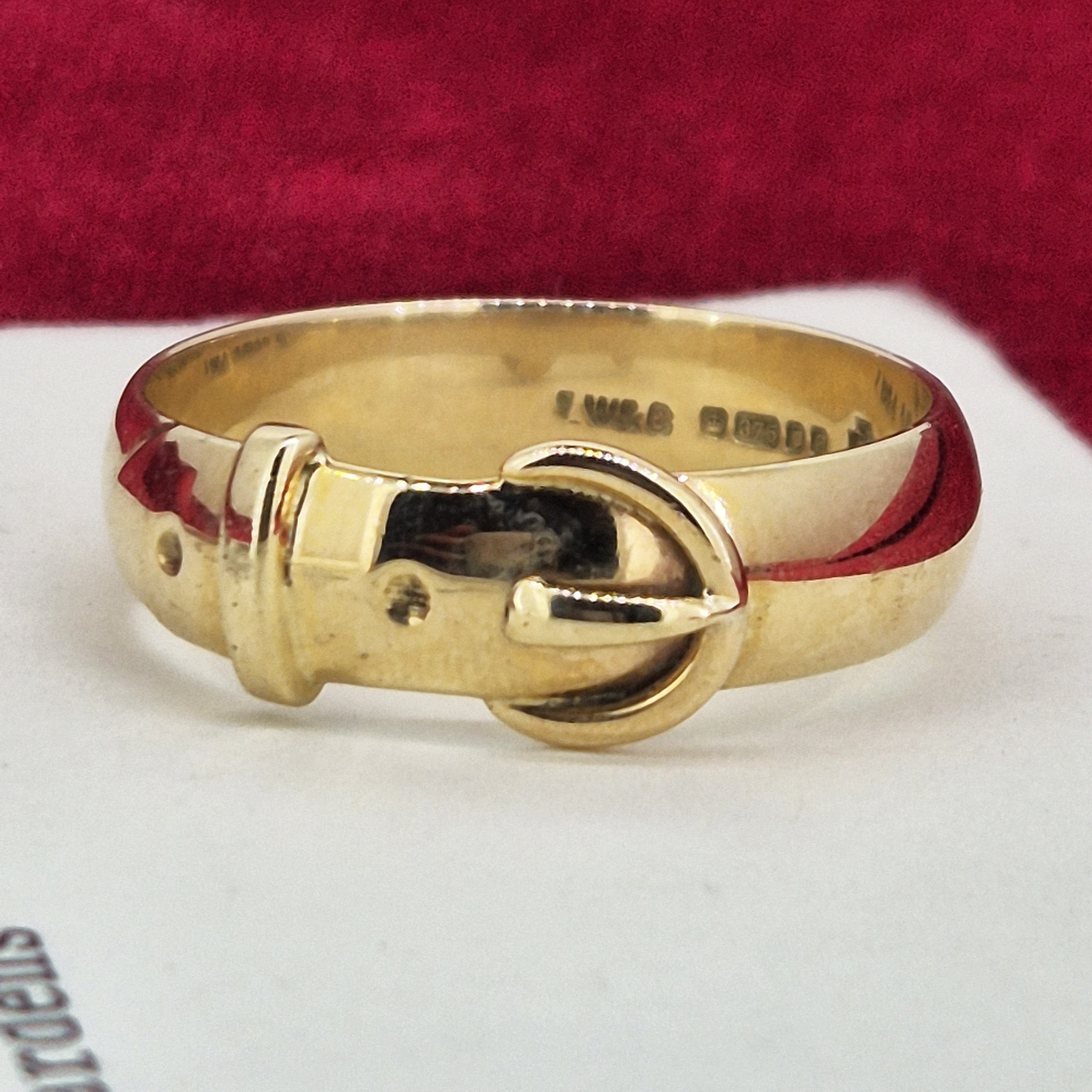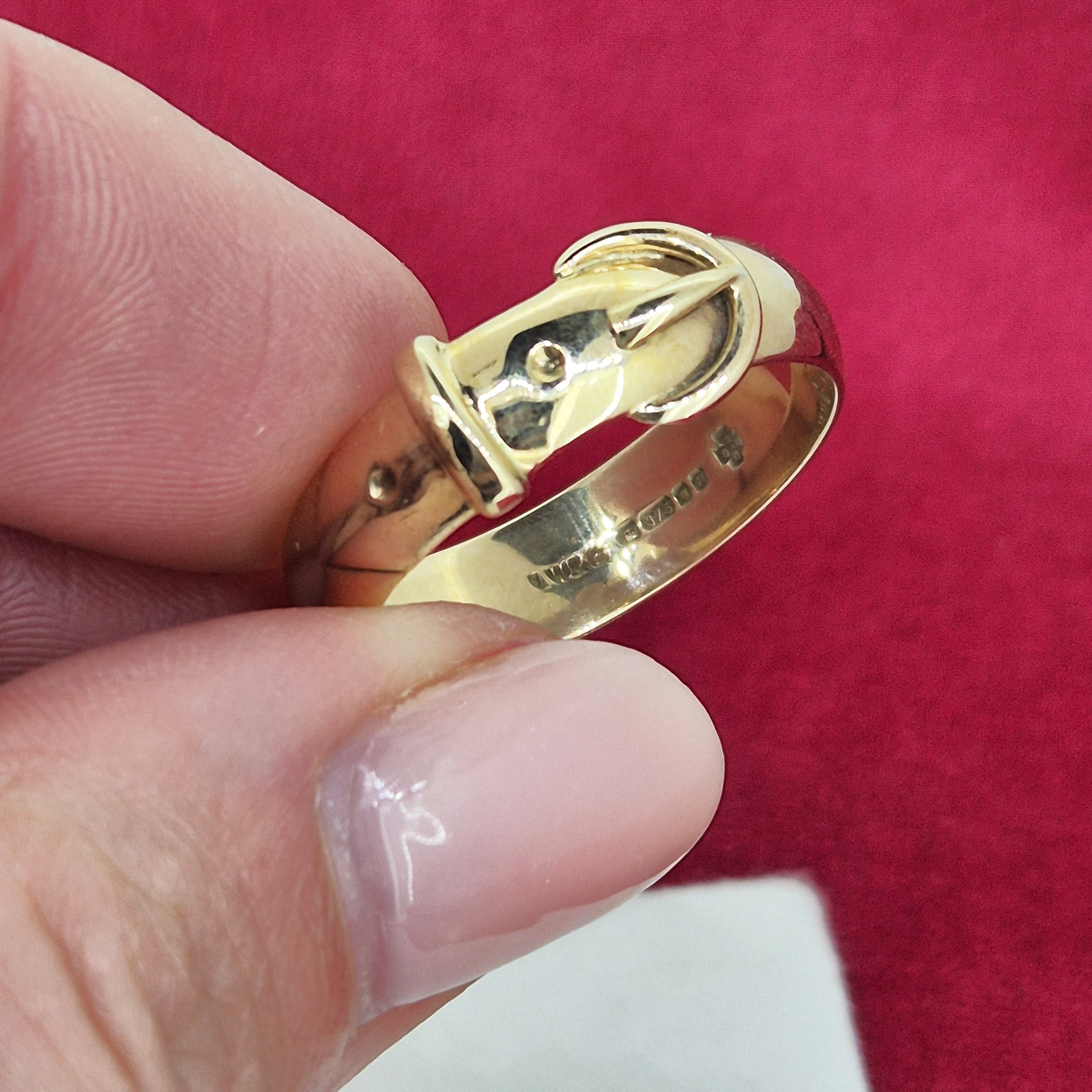 Buckle rings originated in the Victorian Era and have been a popular choice for centuries. This one measures 6mm in width and weighs 6.3 grams.It was hallmarked in London in 2000 and features the special commemorative Millennium hallmark for that year.