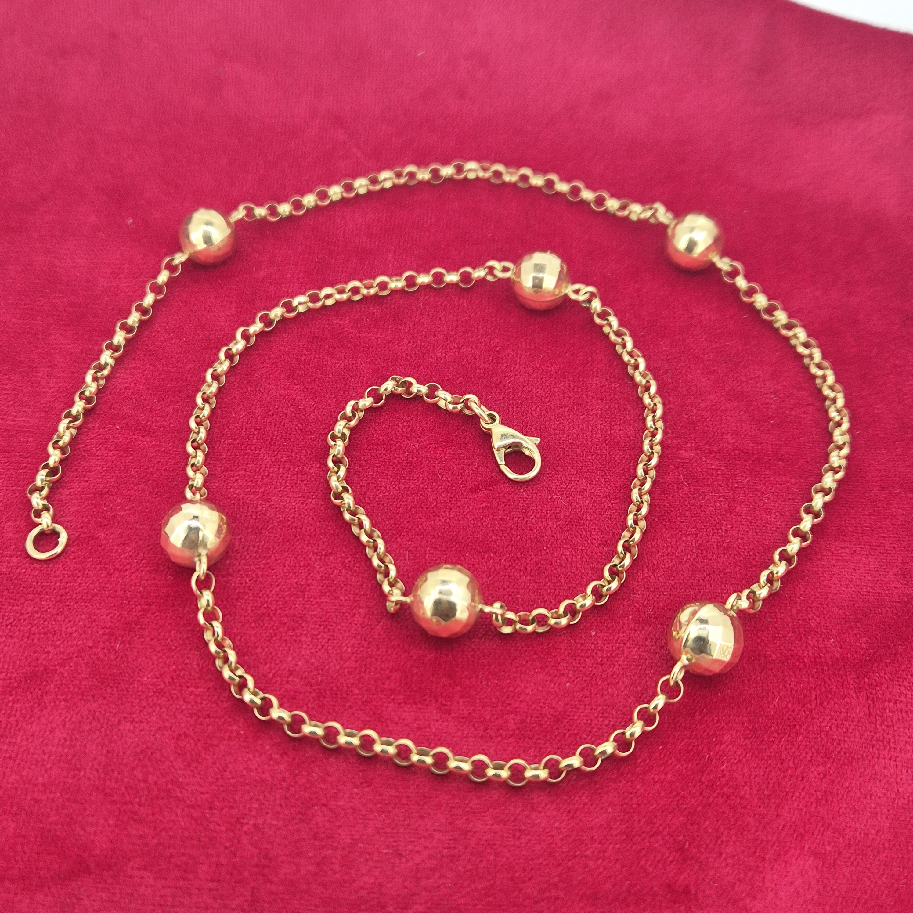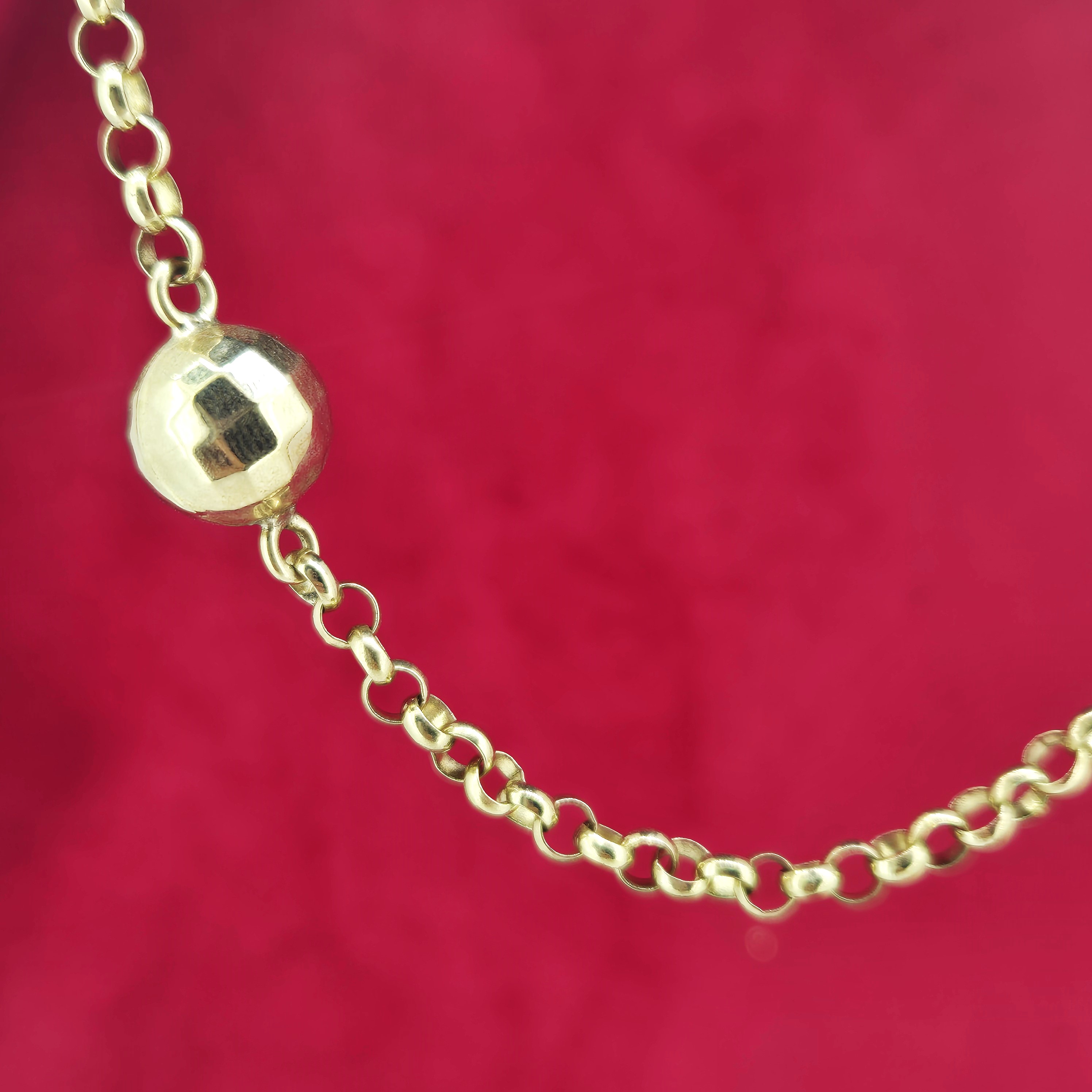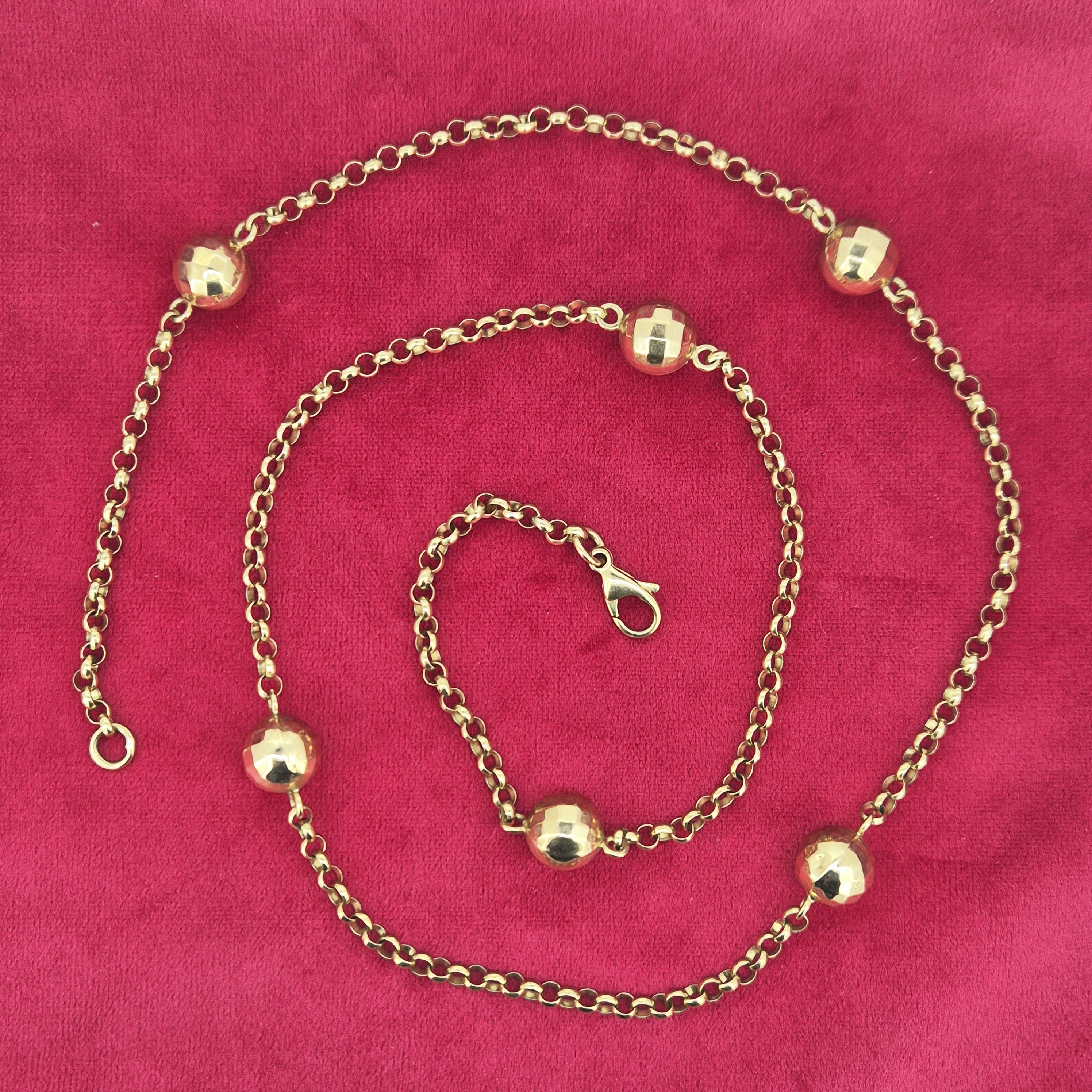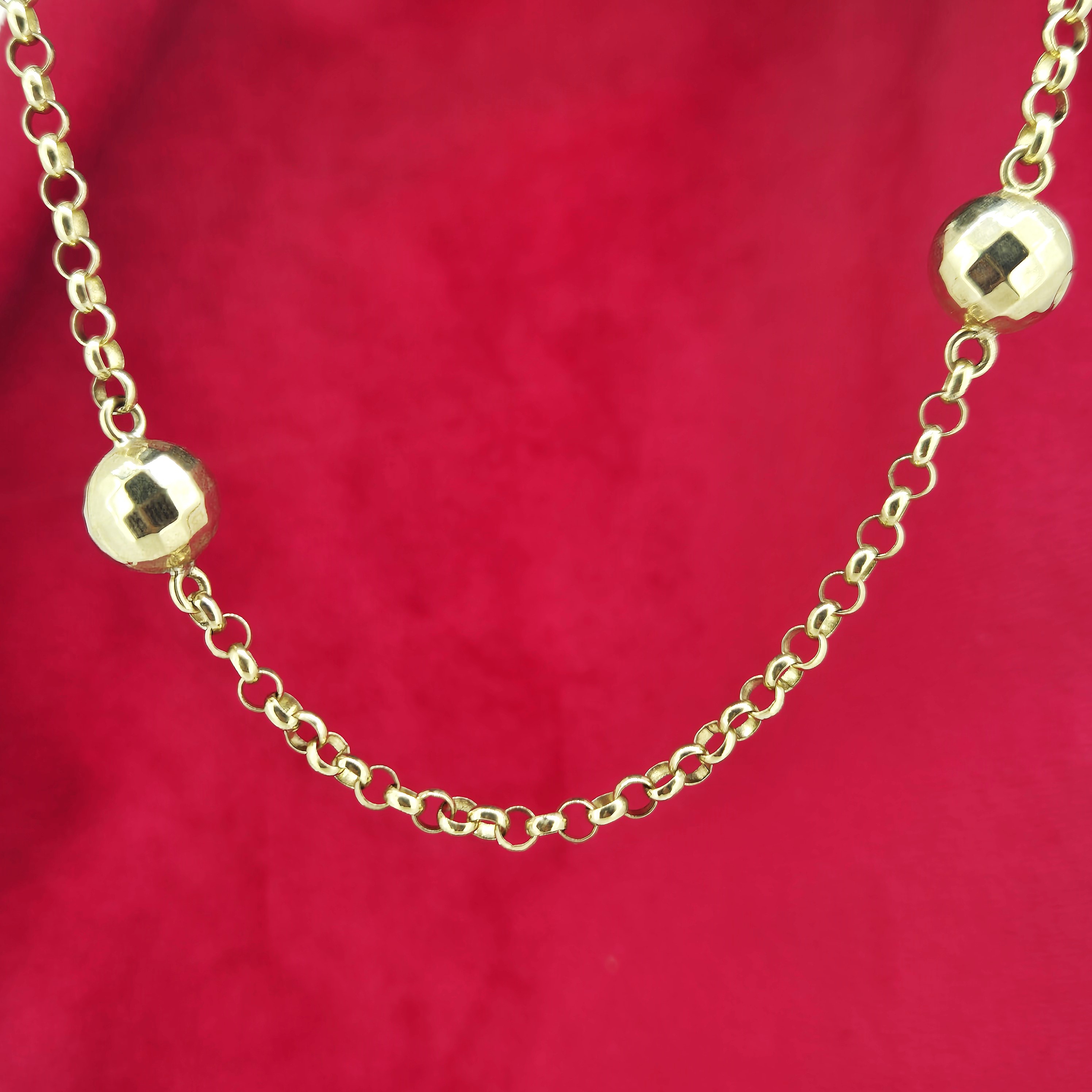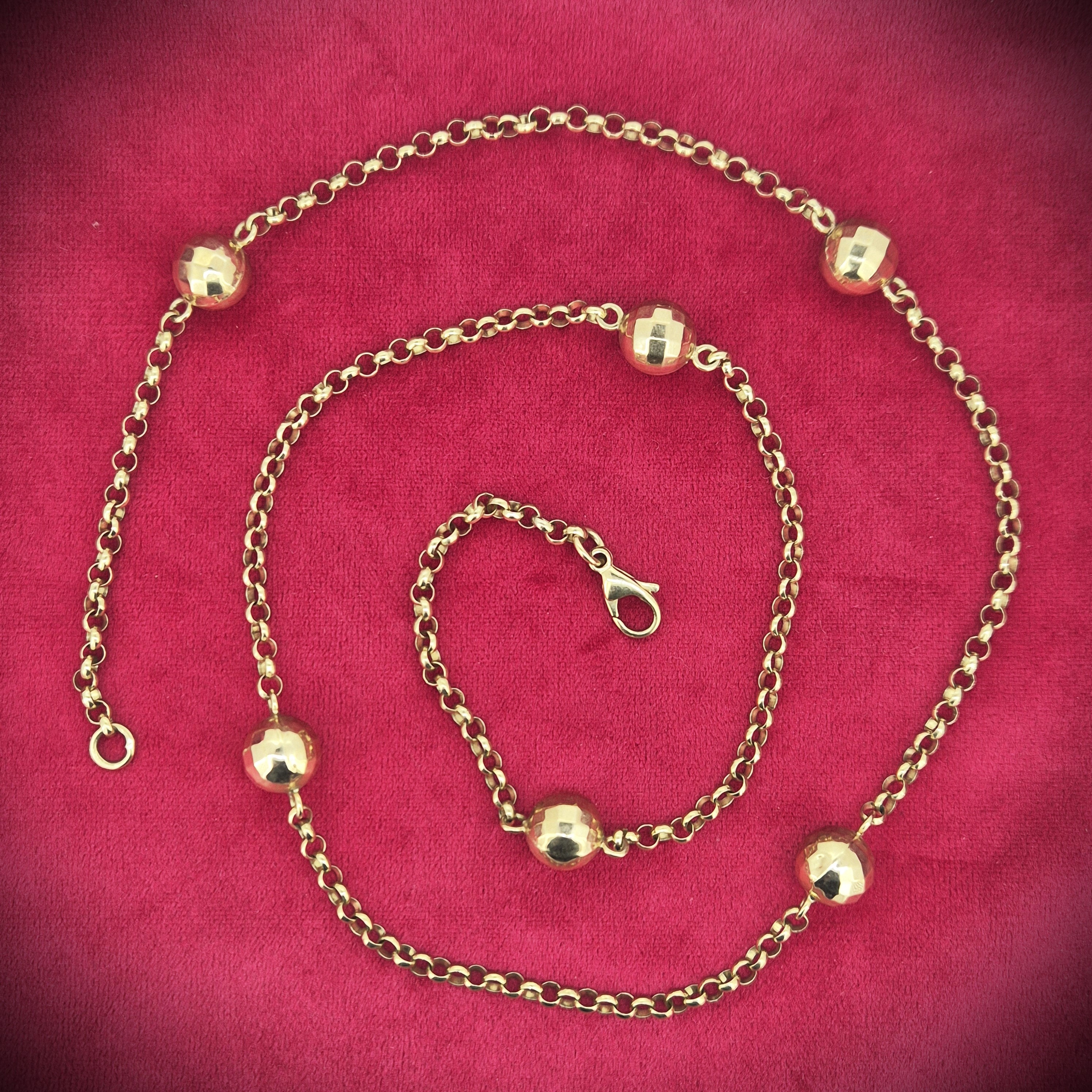 The necklace features Traditional Belcher links that measure 3mm in width which are separated by six Faceted Ball links that measure 10mm each.