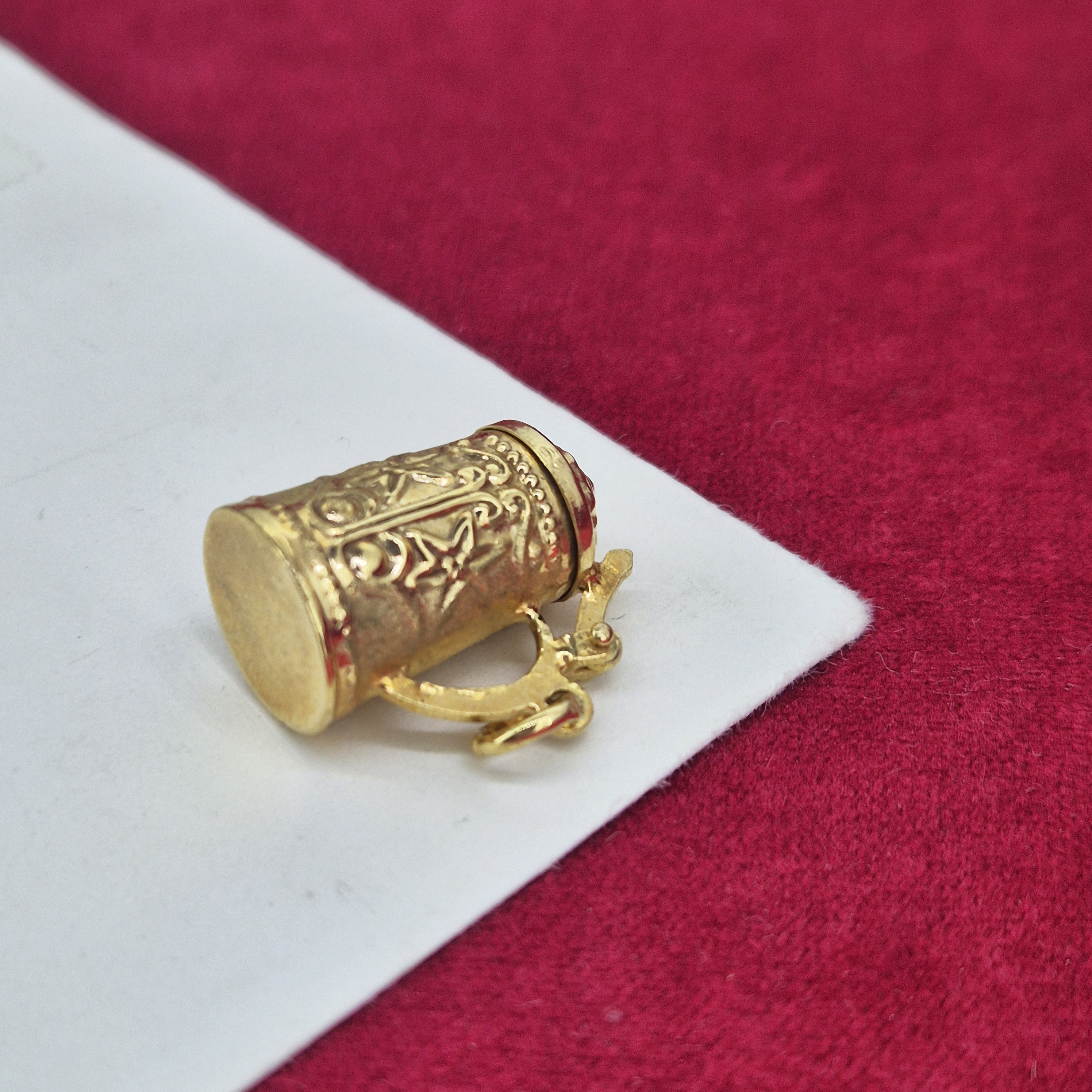 A German Tankard Charm crafted from 8ct Yellow Gold.