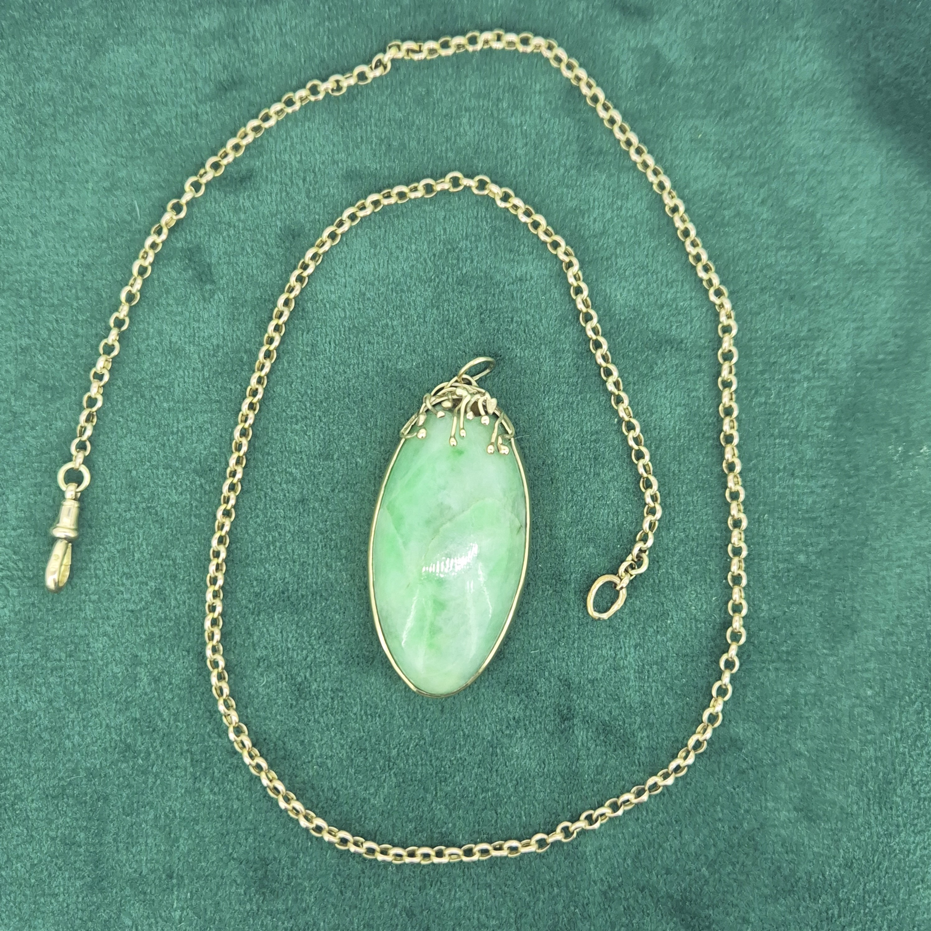 The Large Oval piece of Jade is gorgeous and is set into a solid Gold mount that surrounds the piece. The Jade measures 40mm by 25mm.