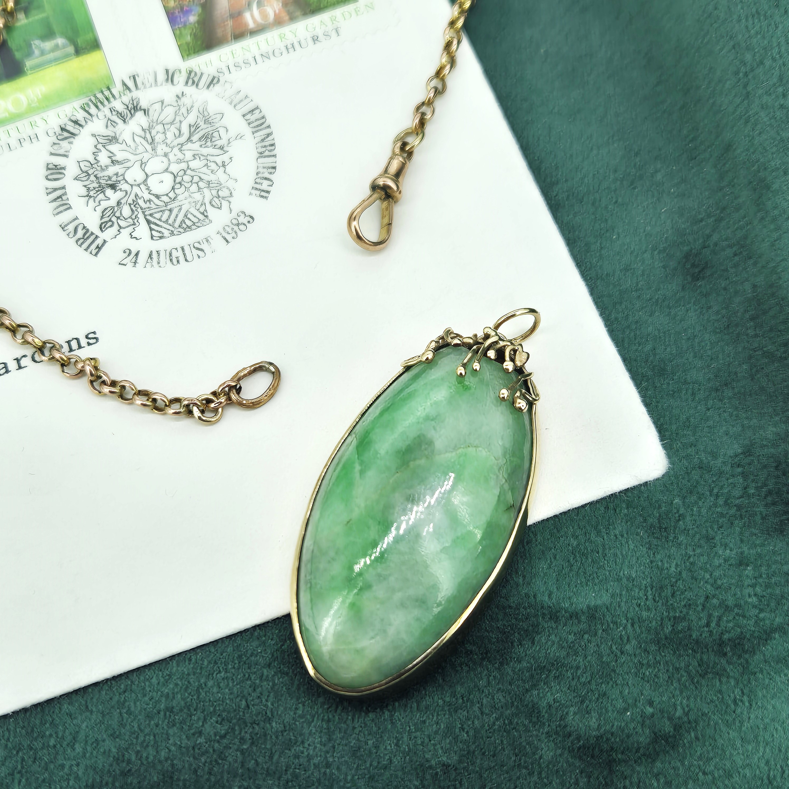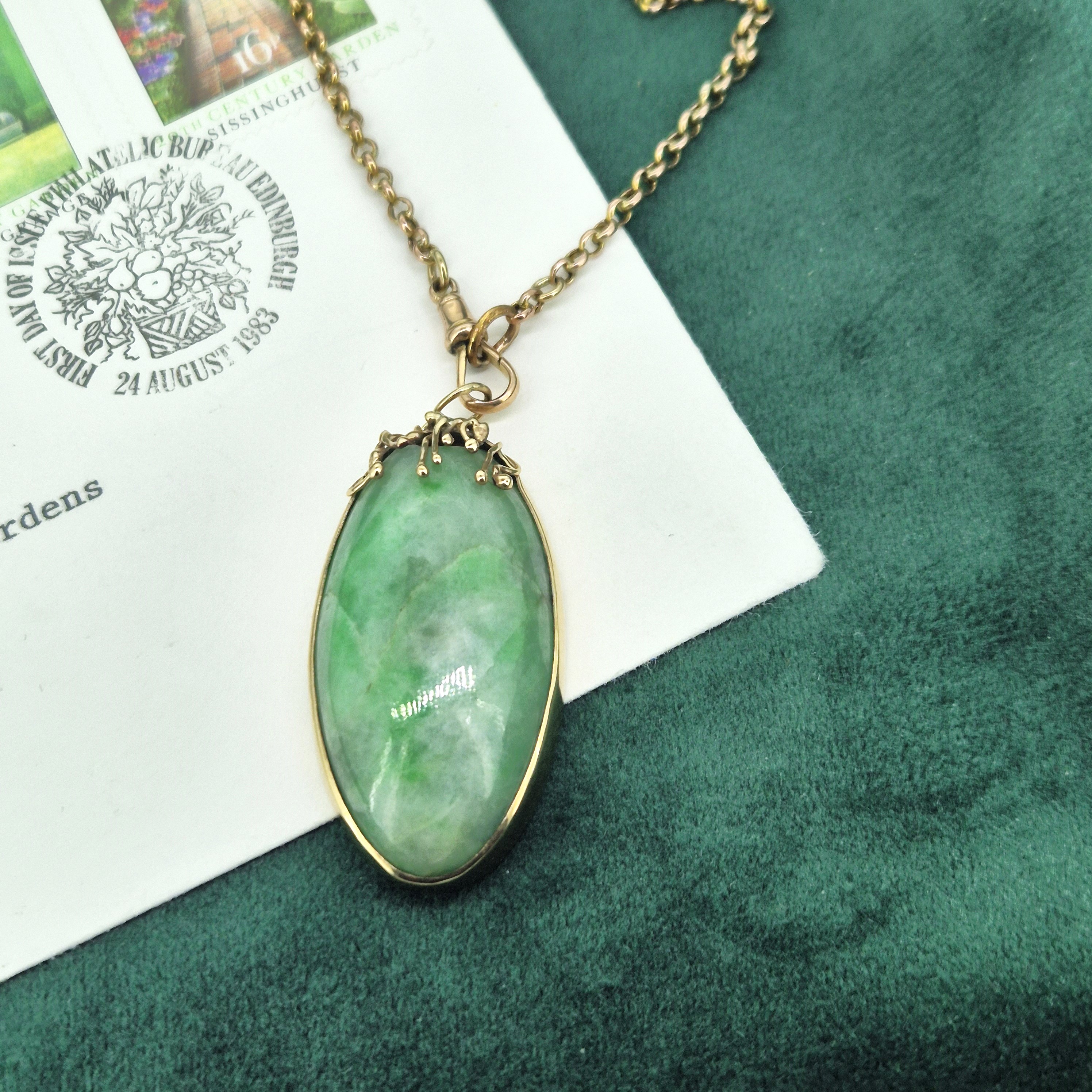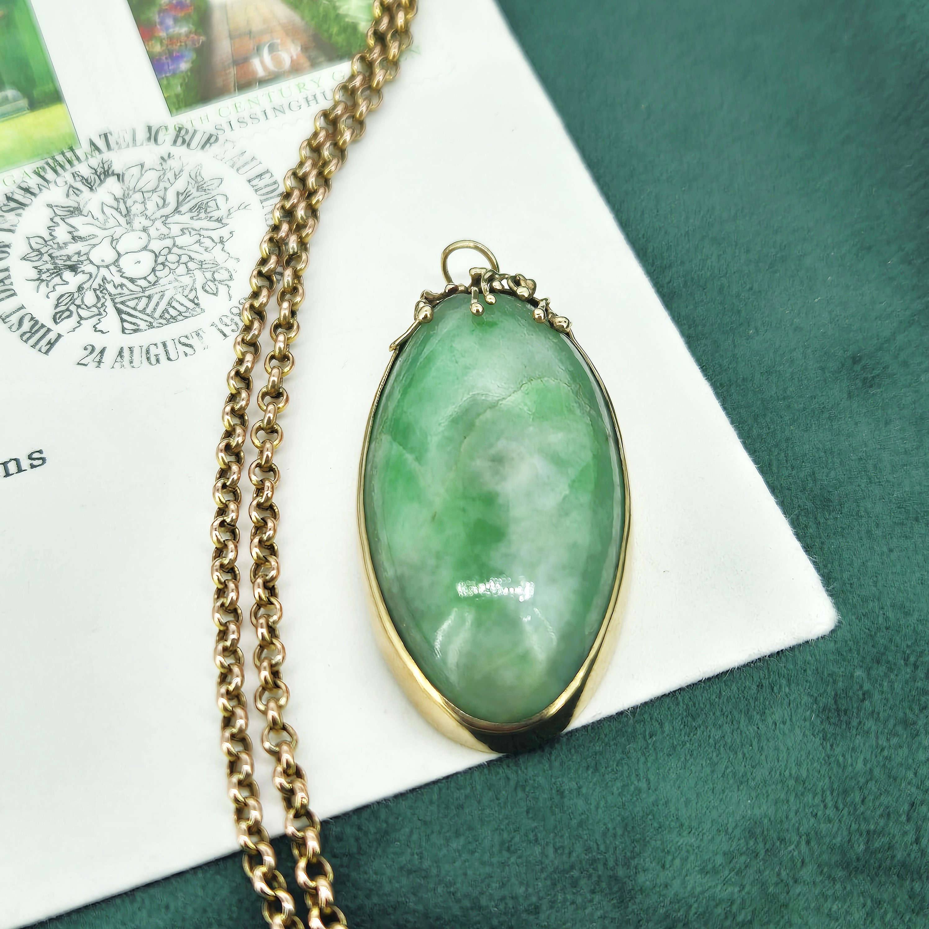 The pendant hangs on an antique belcher chain with a gorgeous miniature swivel. The Belcher that measures 19 inches in length and has 2.5mm links. The chain can be worn independently of the jade pendant.