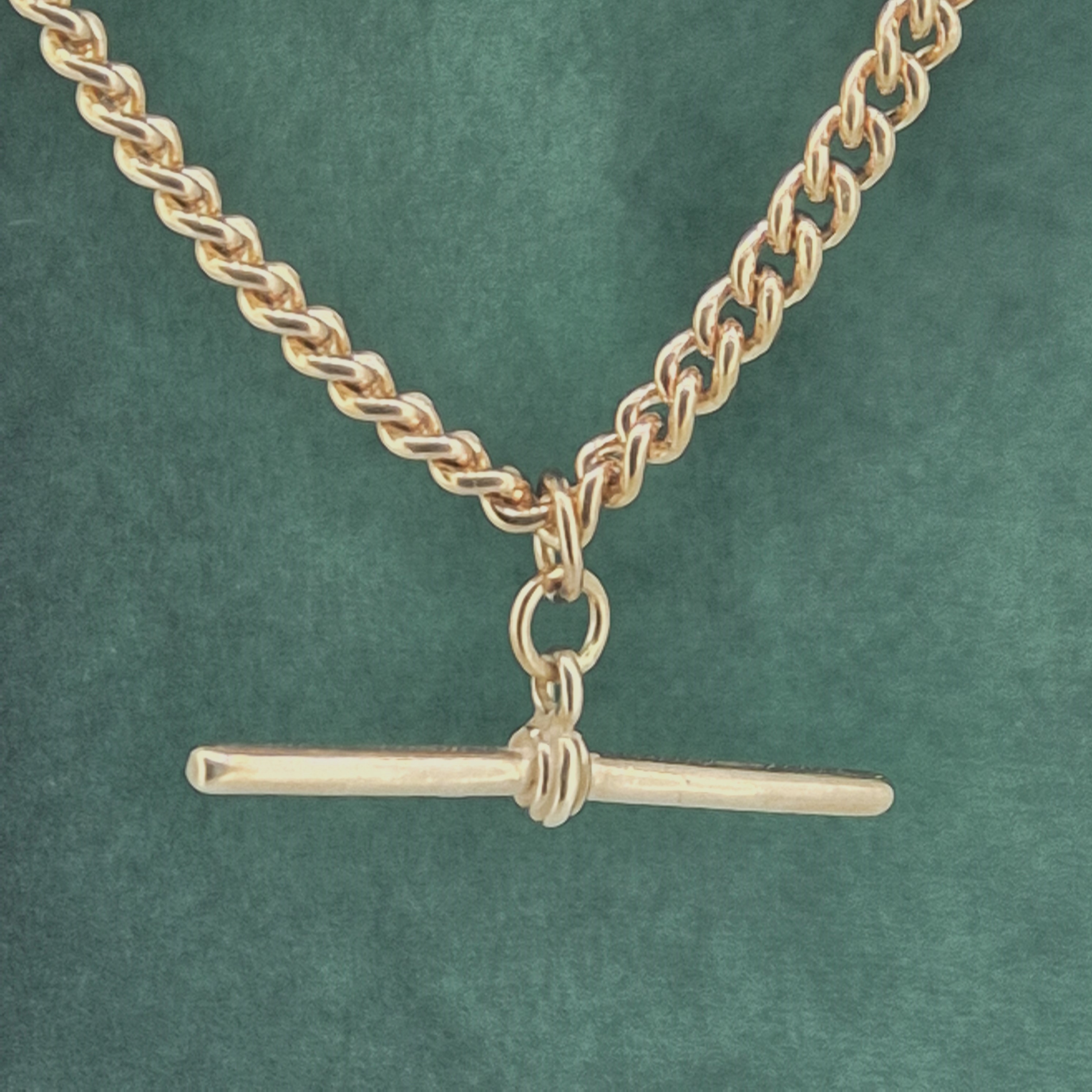 The chain features Traditional Curb links that measure 4mm in width. It is fitted with a rolling T-Bar in the centre that measures 38mm in length.