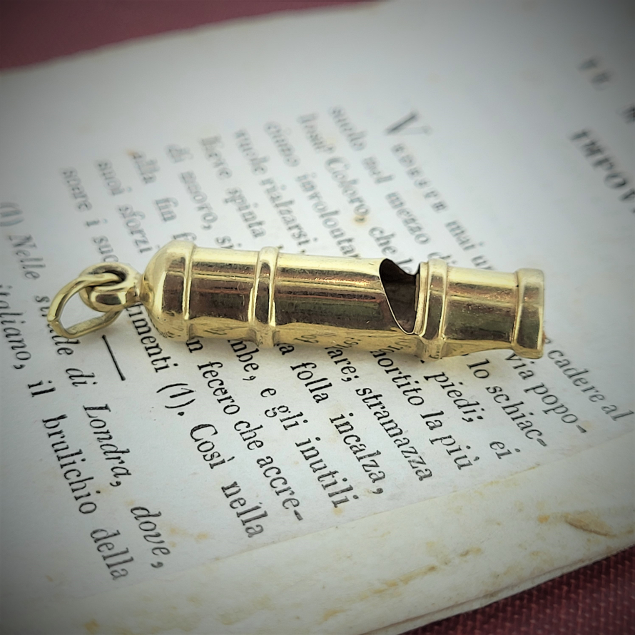 A wonderfully preserved 9ct gold working whistle dating back to the early 1990s. This can be worn as a charm or on a necklace (puppy training, perhaps?!). It's terribly cute.