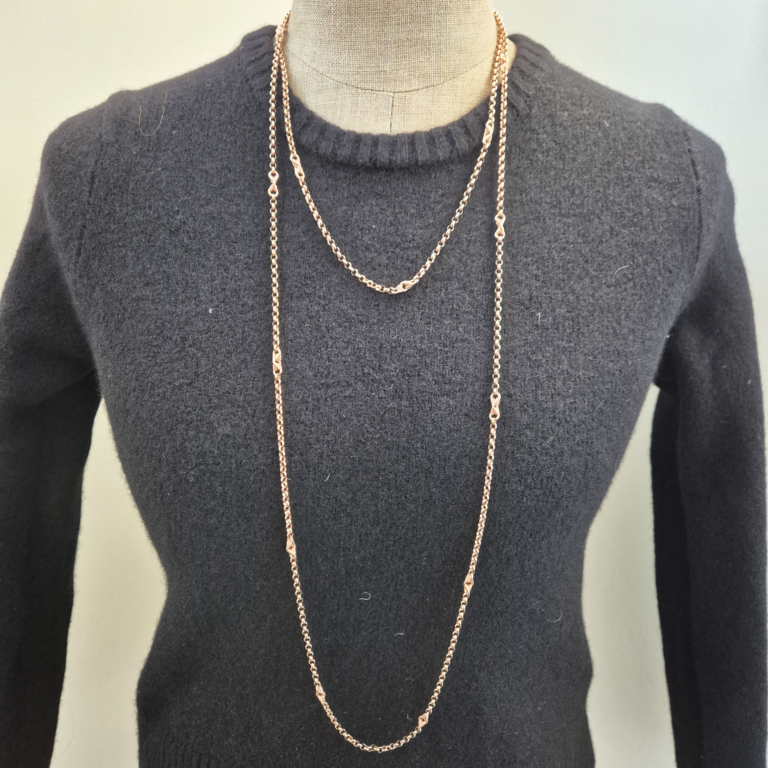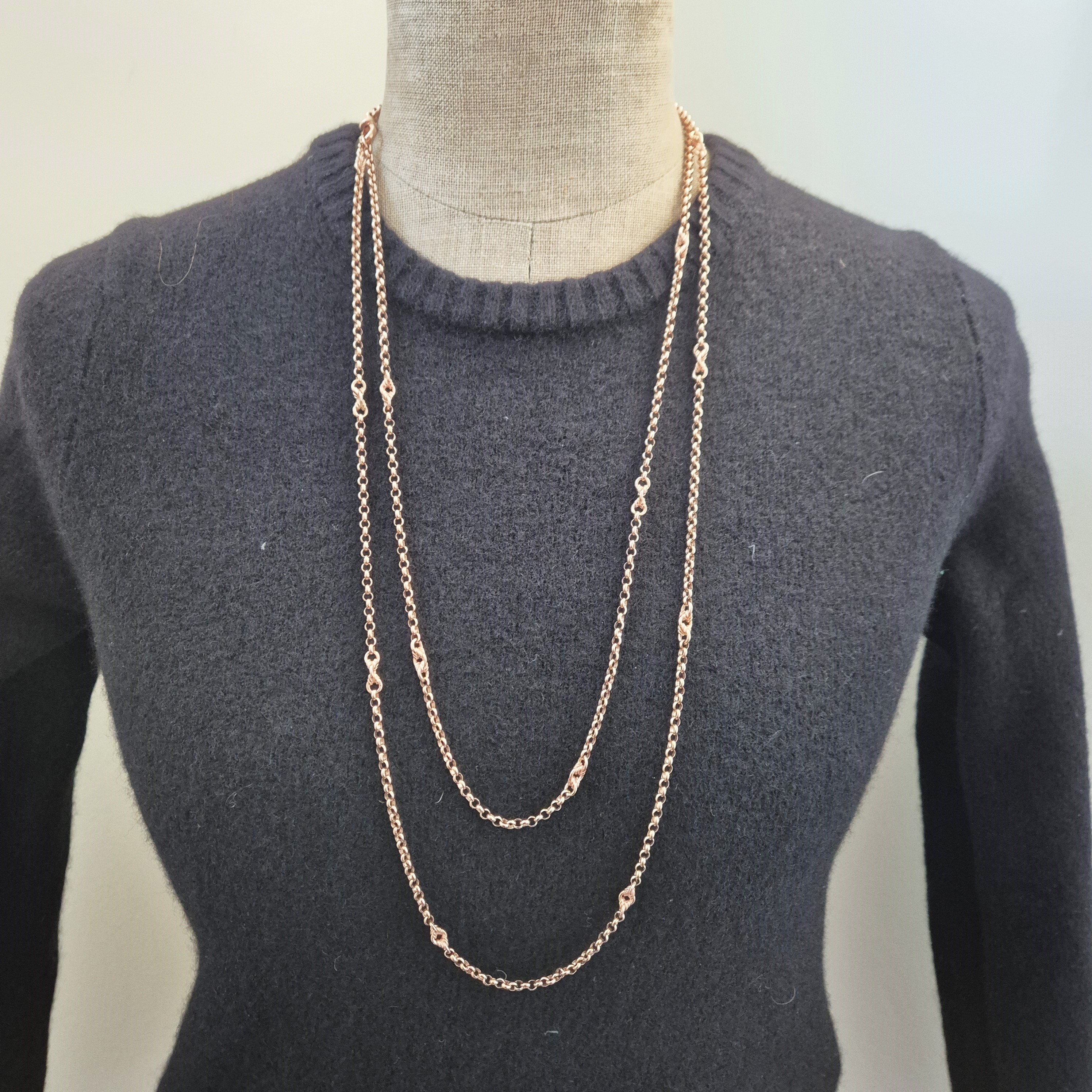 Measuring 60 inches in length, this chain can be wrapped around two or three times creating a two or three strand look.