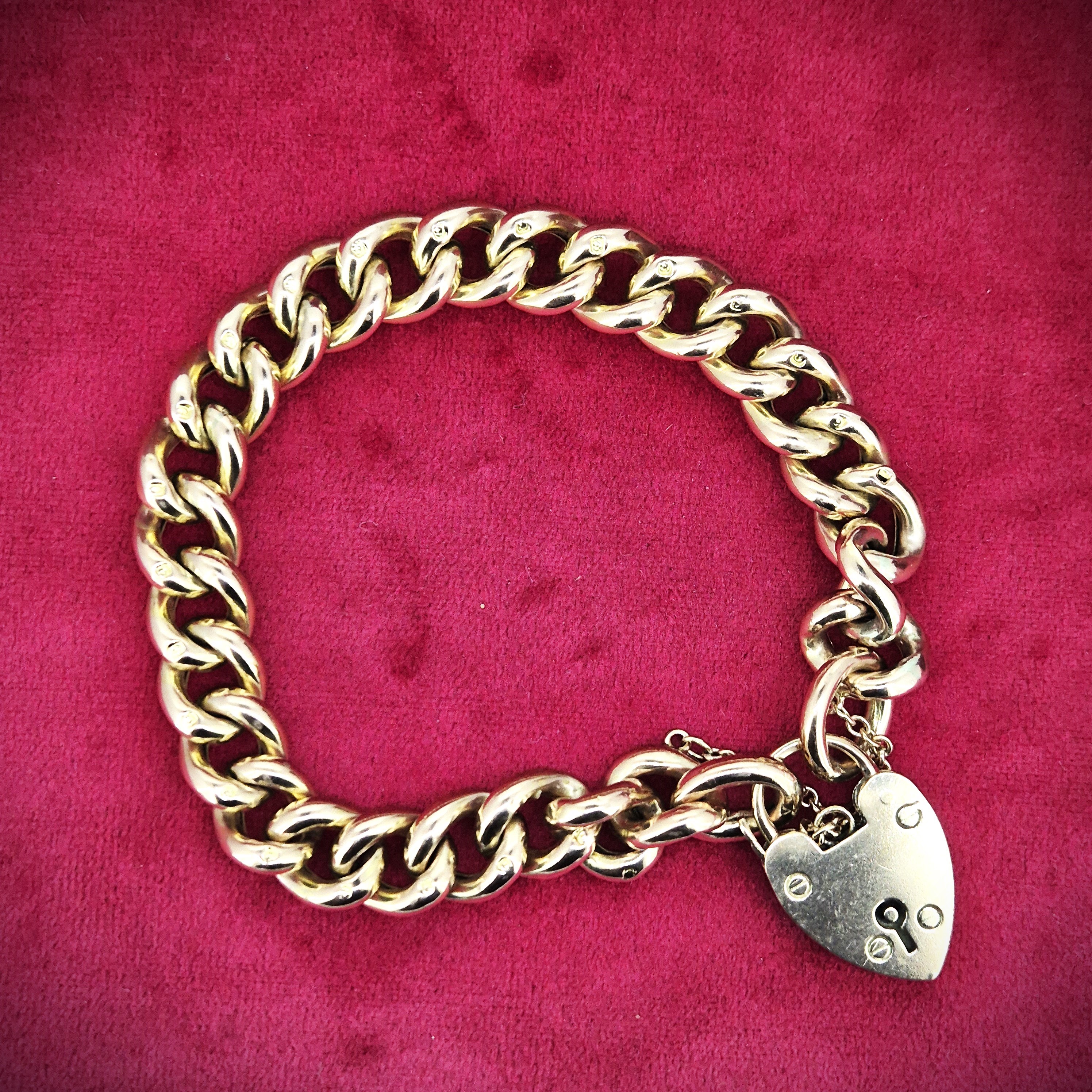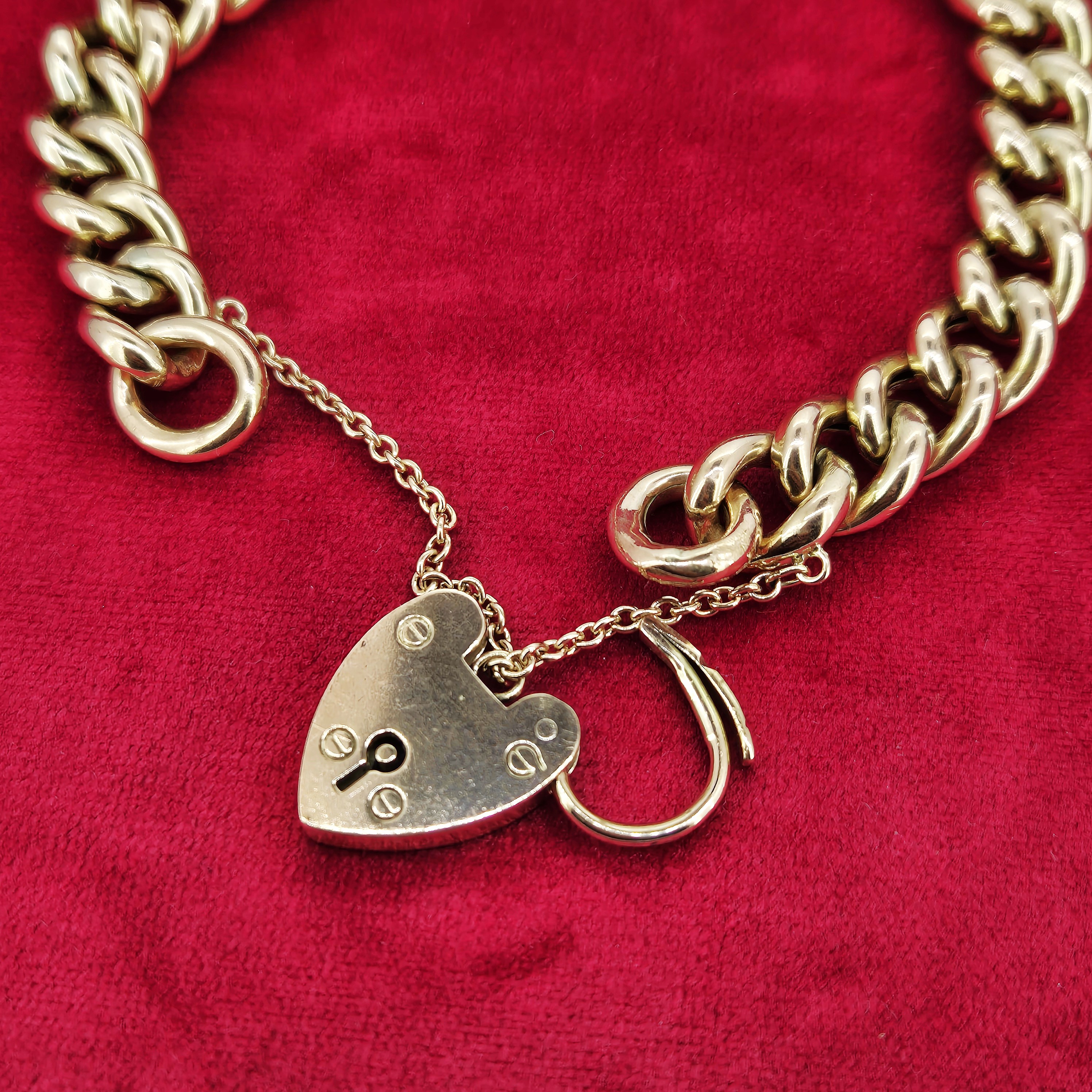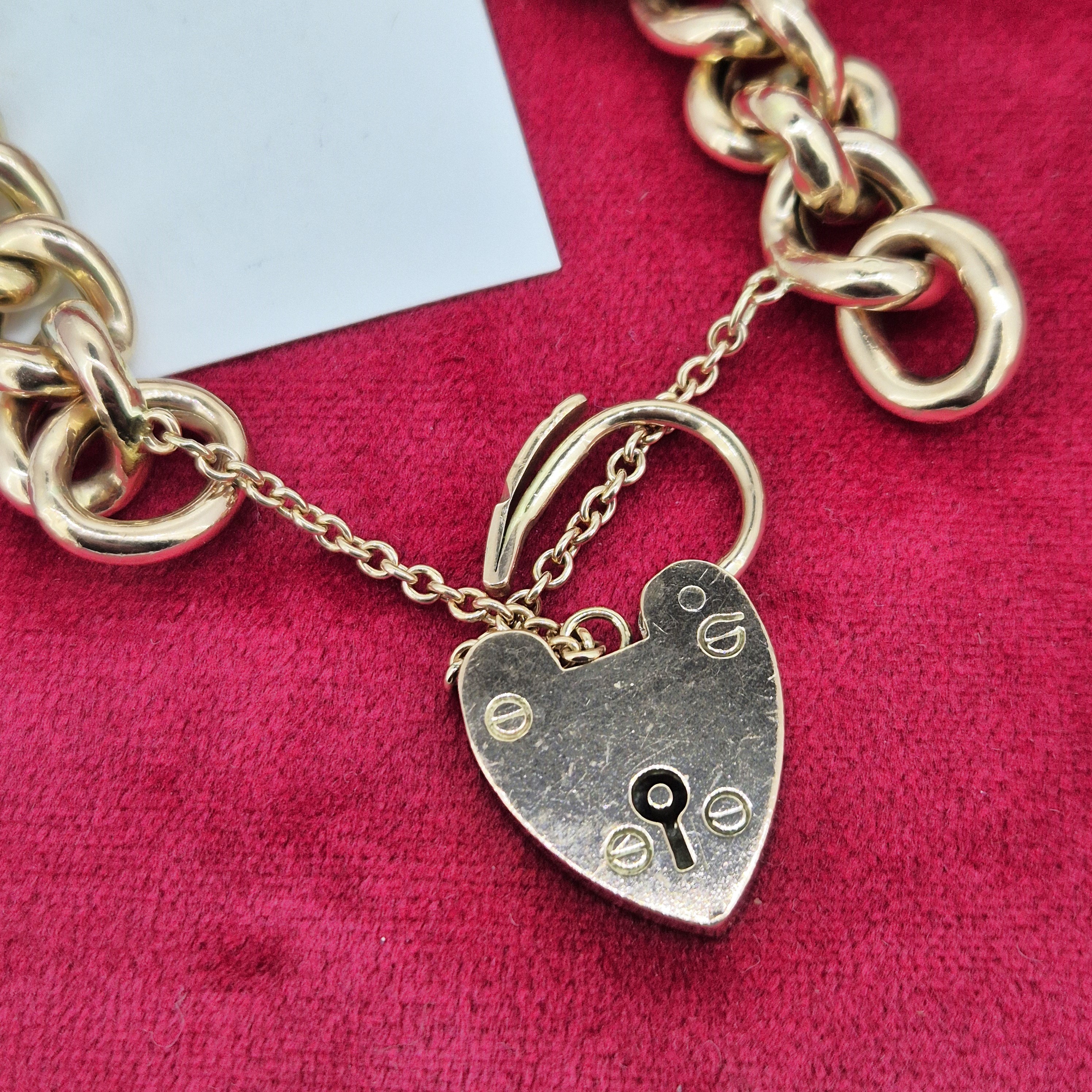 The Bracelet weighs 17.7 grams, would fit a 17cm wrist and is secured by a plain heart padlock and safety chain.