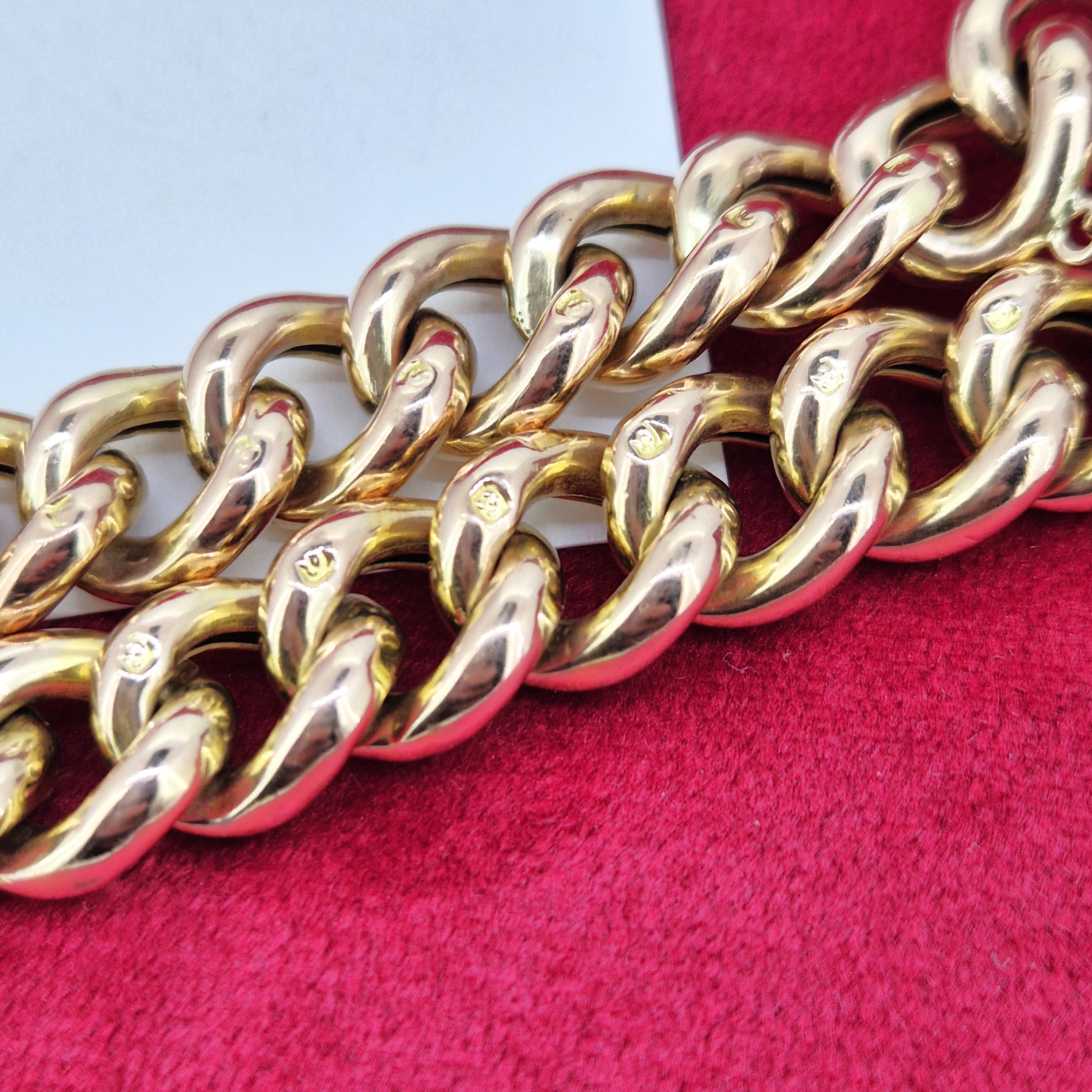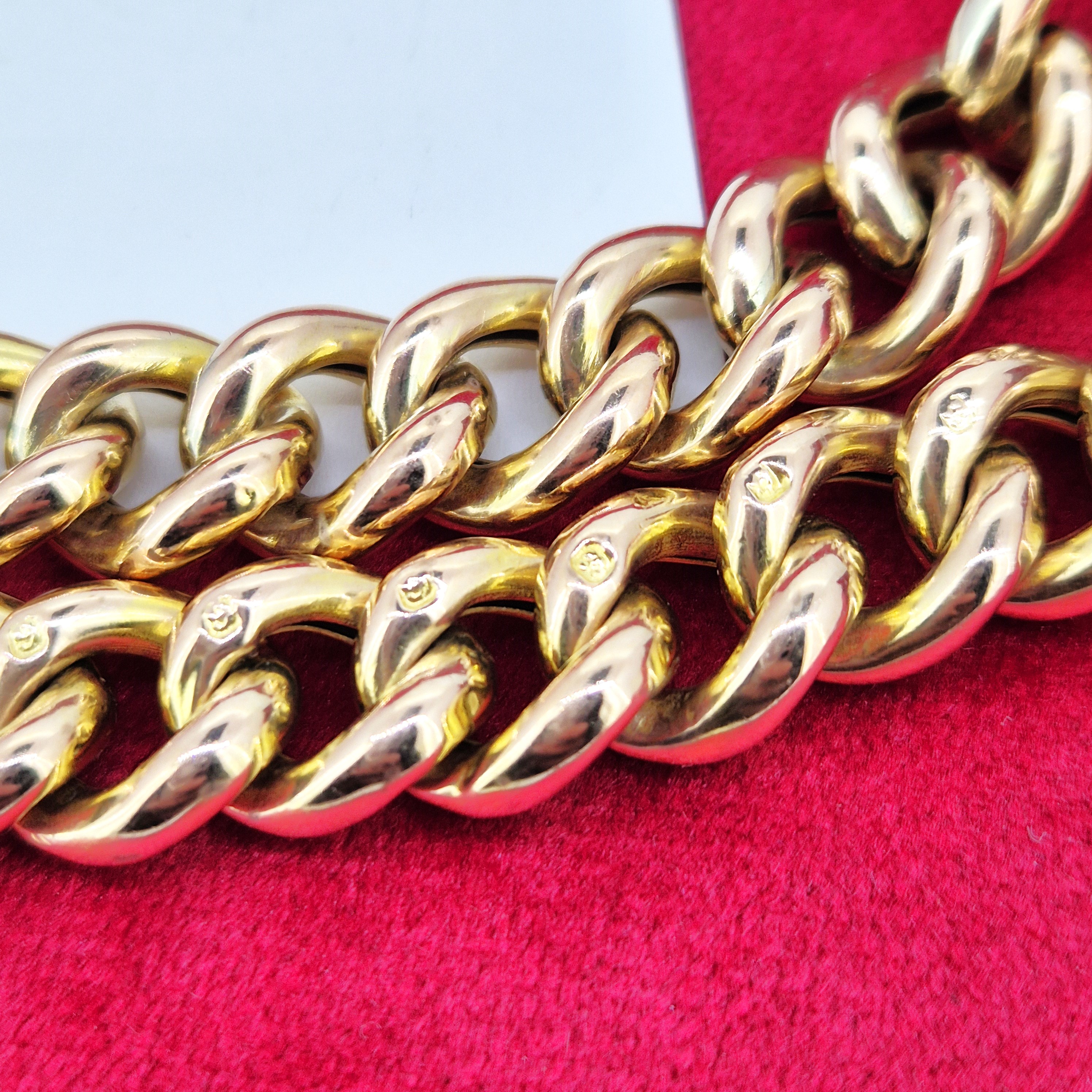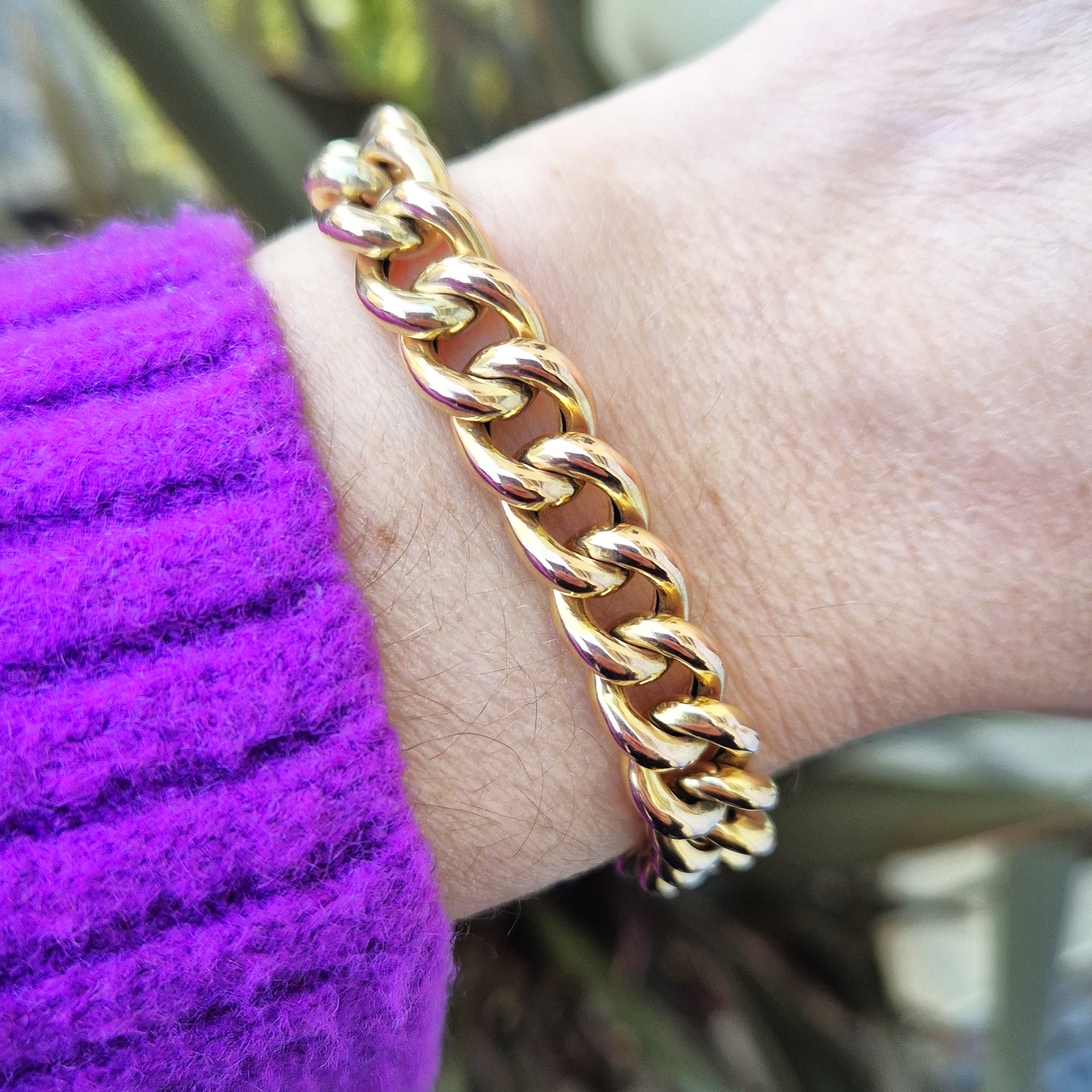 The bracelet features plain, 10mm links that are all individually stamped. It's rare to find a Charm Bracelet in Yellow Gold so this is a wonderful find!