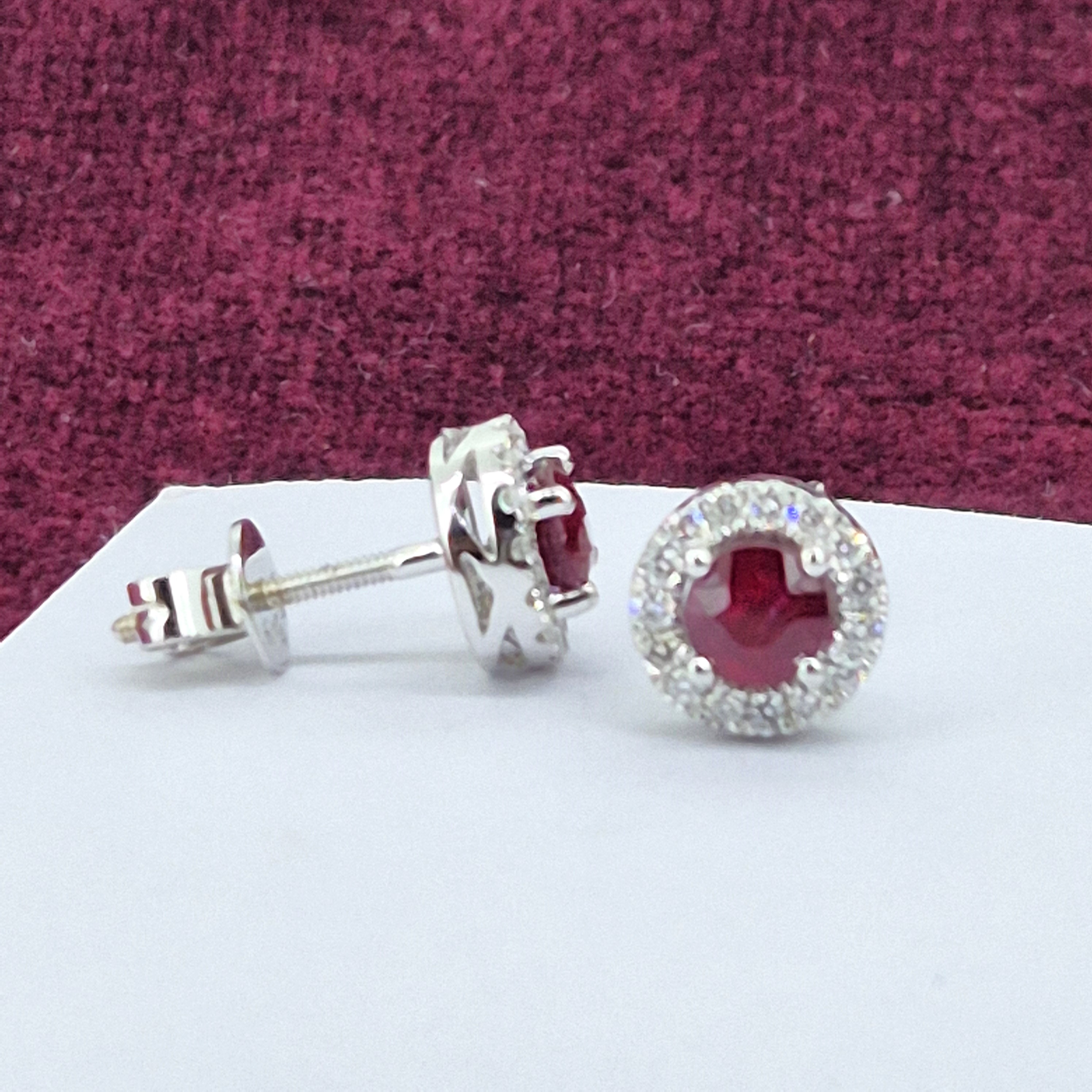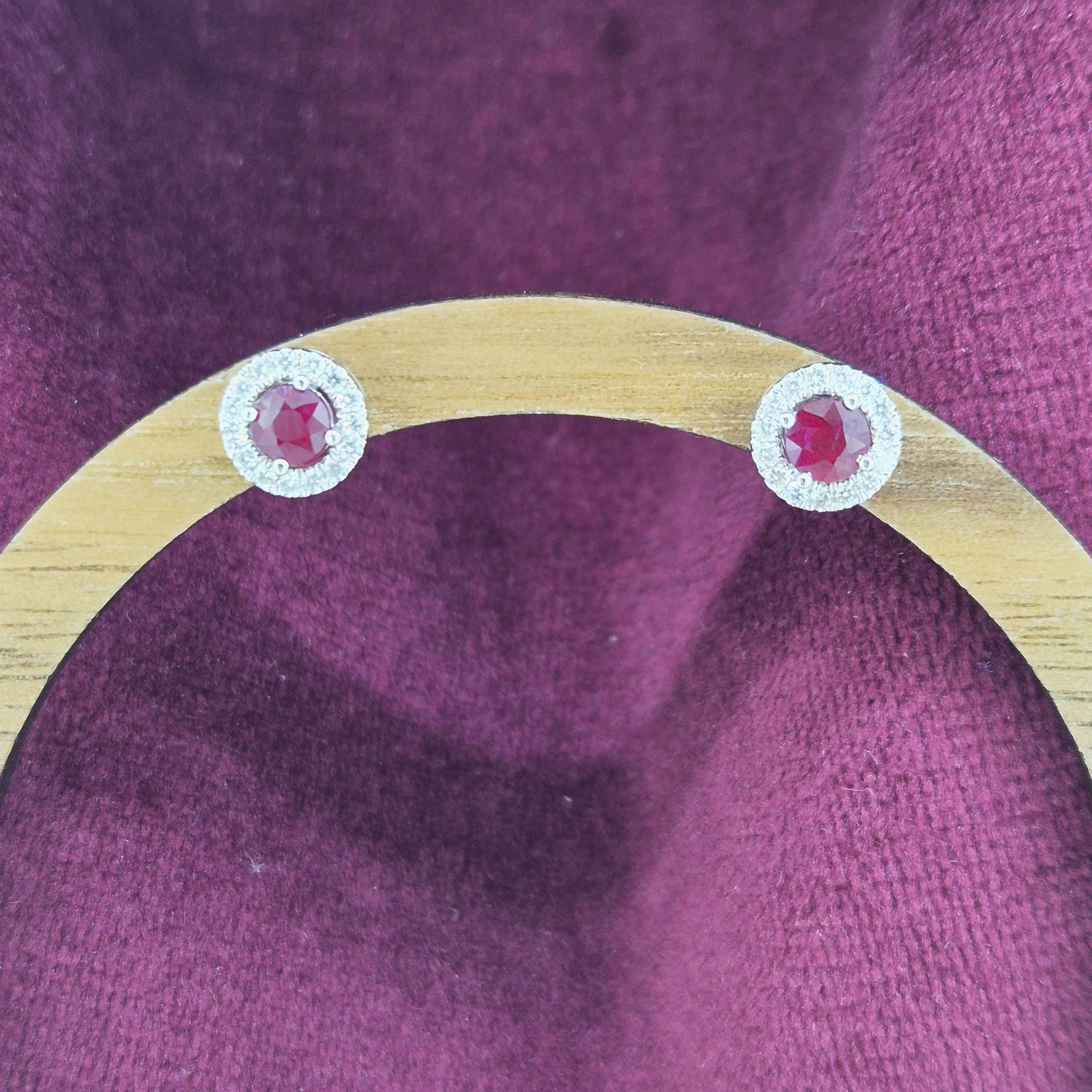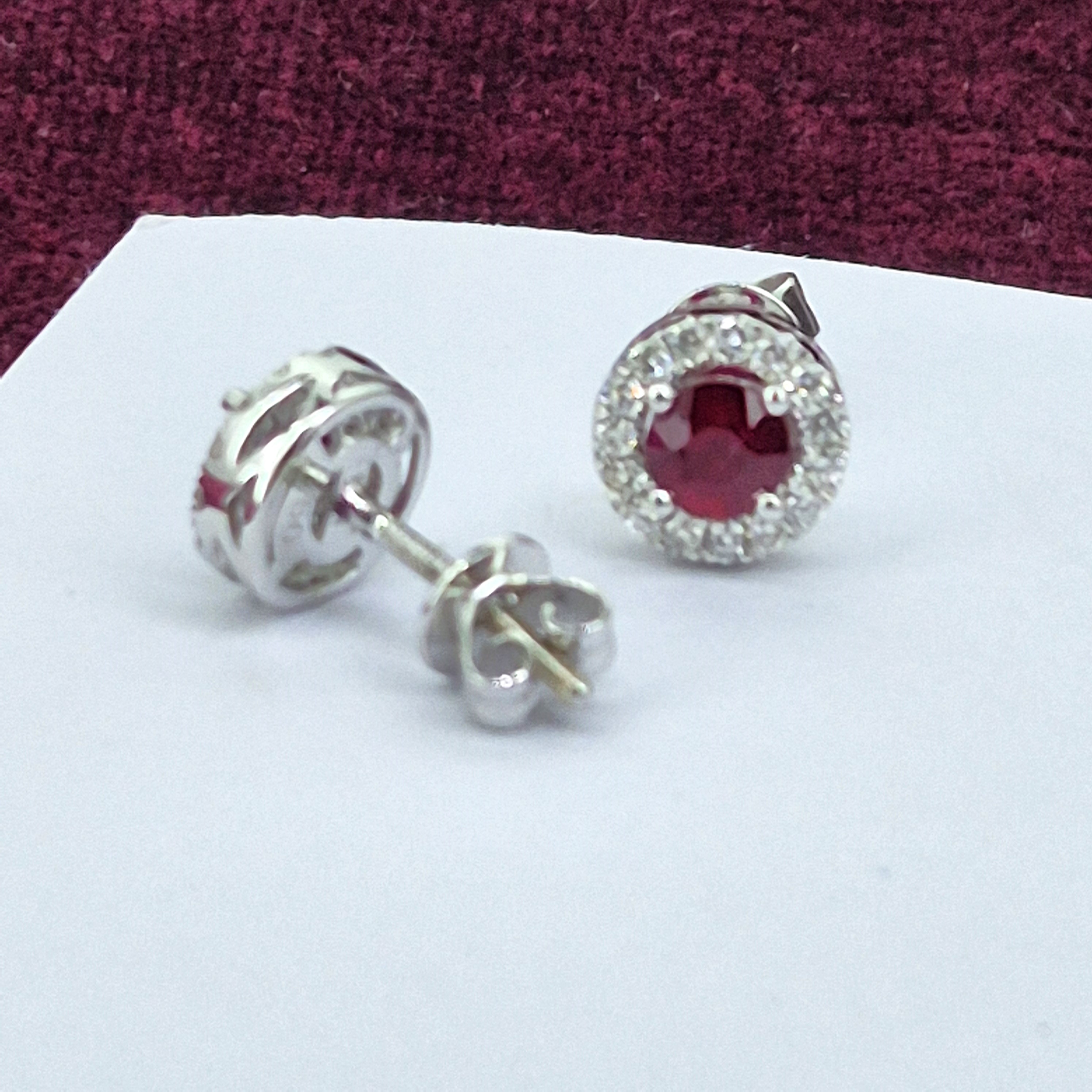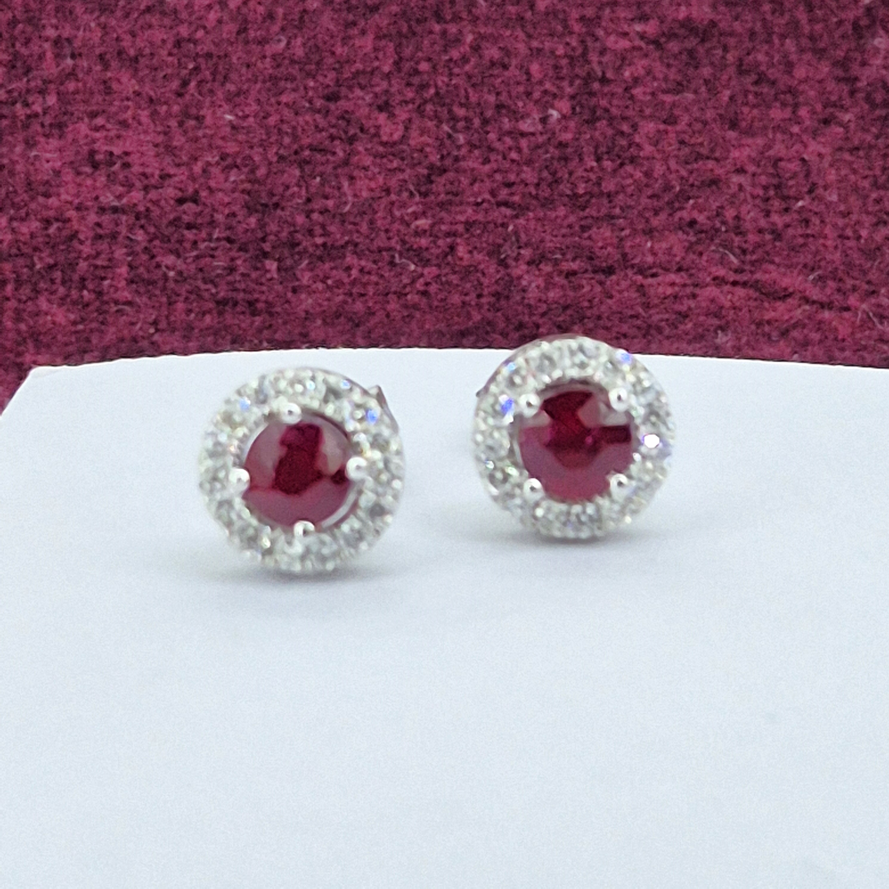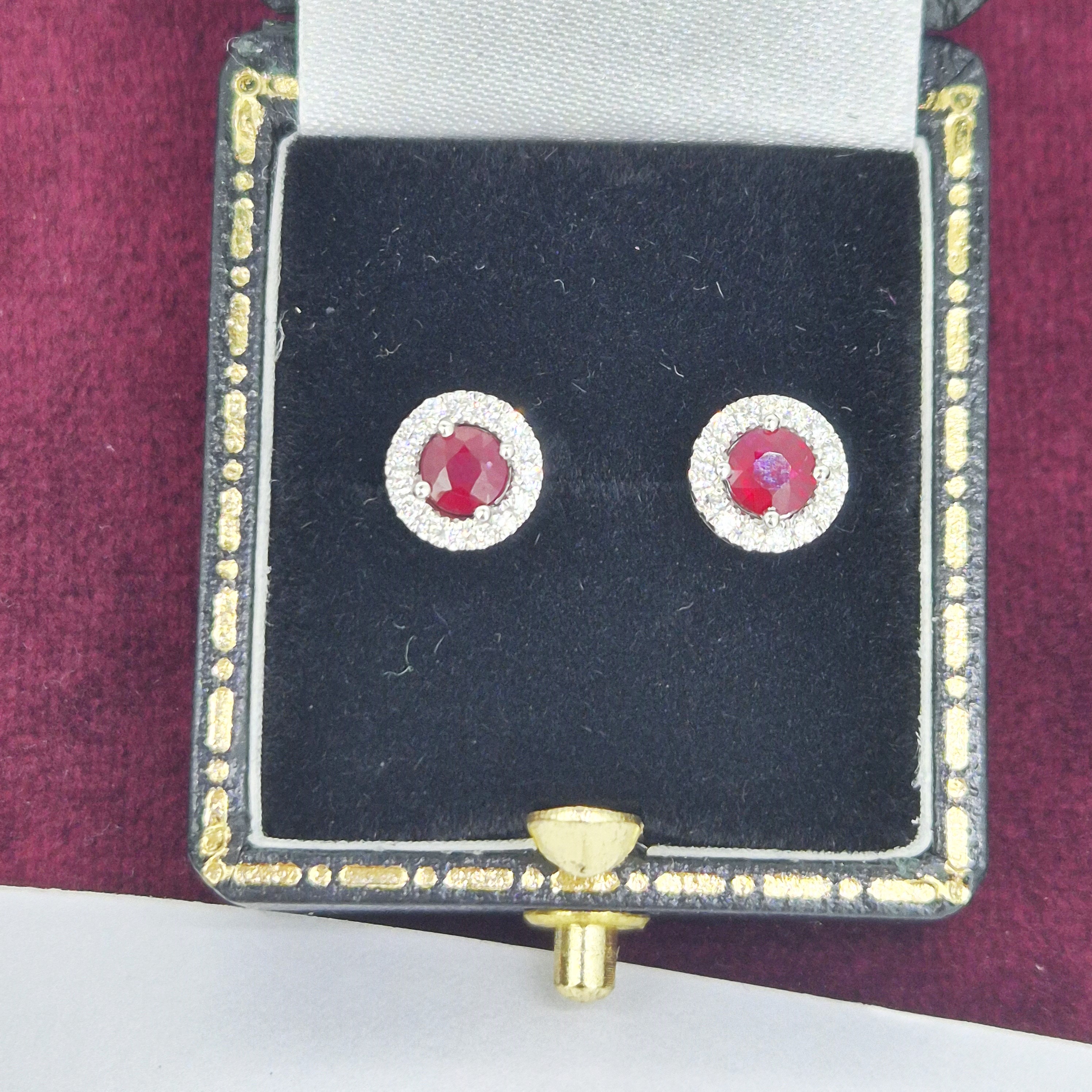 A pair of gorgeous Ruby and Diamond Halo Stud Earrings crafted from 18ct White Gold.