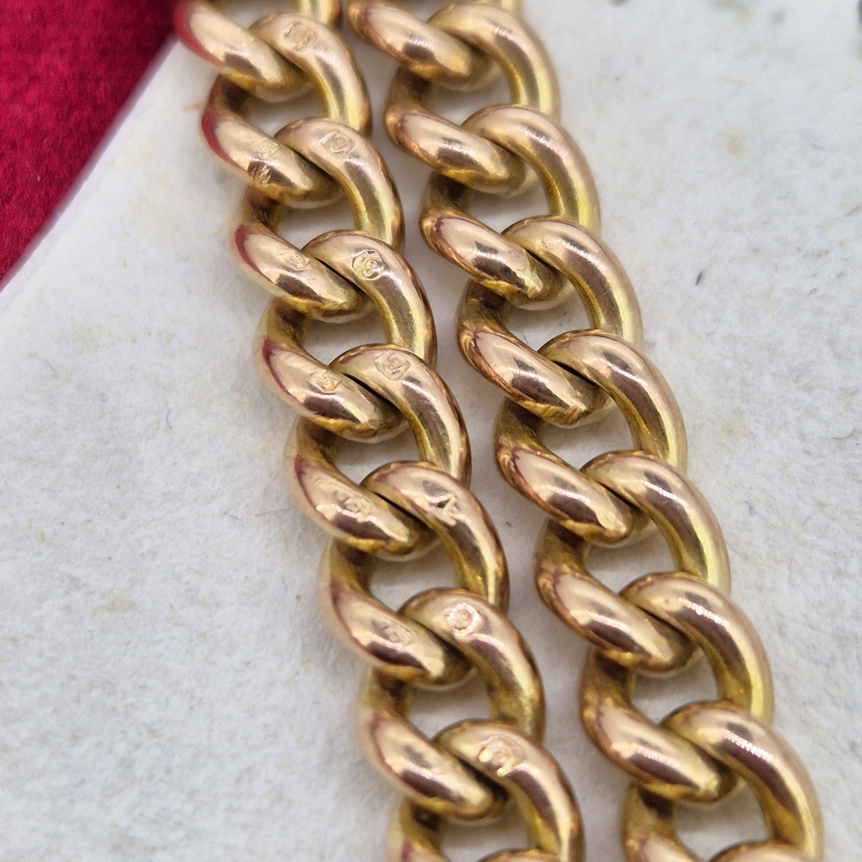 A rare and unique Antique Albert Chain crafted from 9ct Yellow Gold. Uniform links and an extra few inches ion length make this necklace one of the highly sought after variety.