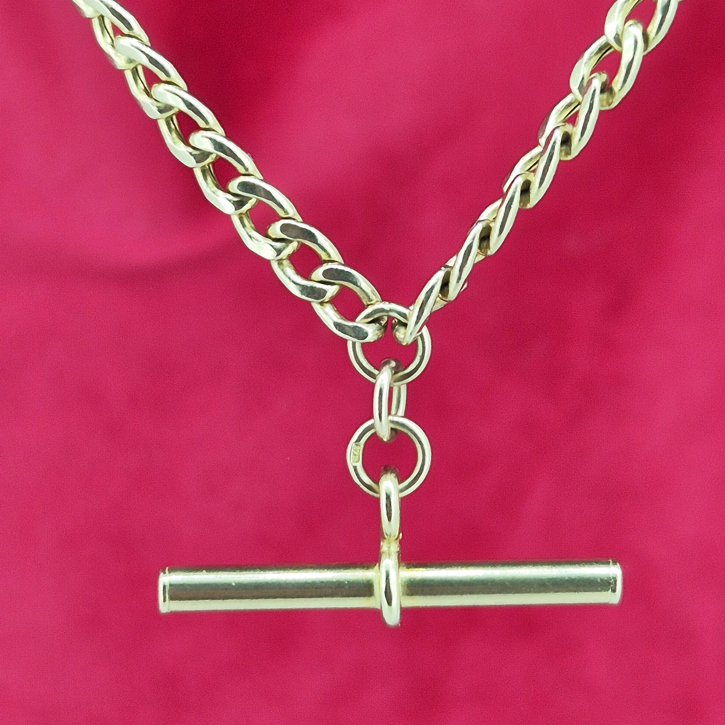 The chain features Traditional Flat Curb links that measure 3.5mm in width. It is fitted with a T-Bar in the centre that measures 25mm in length.
